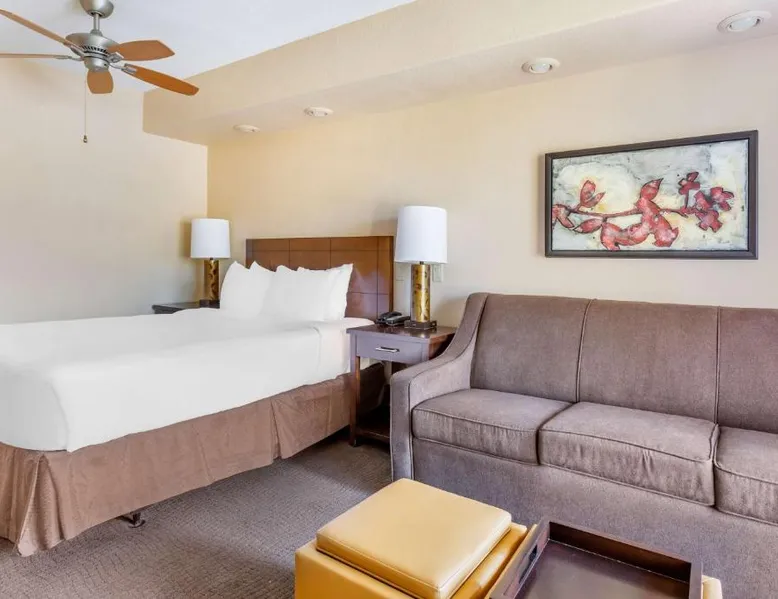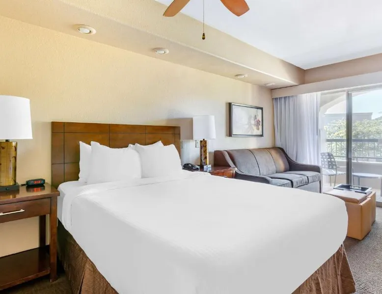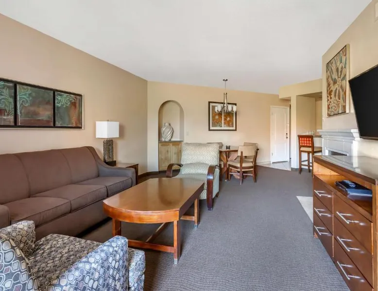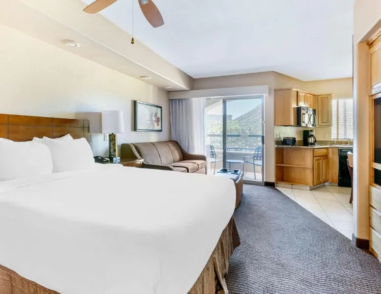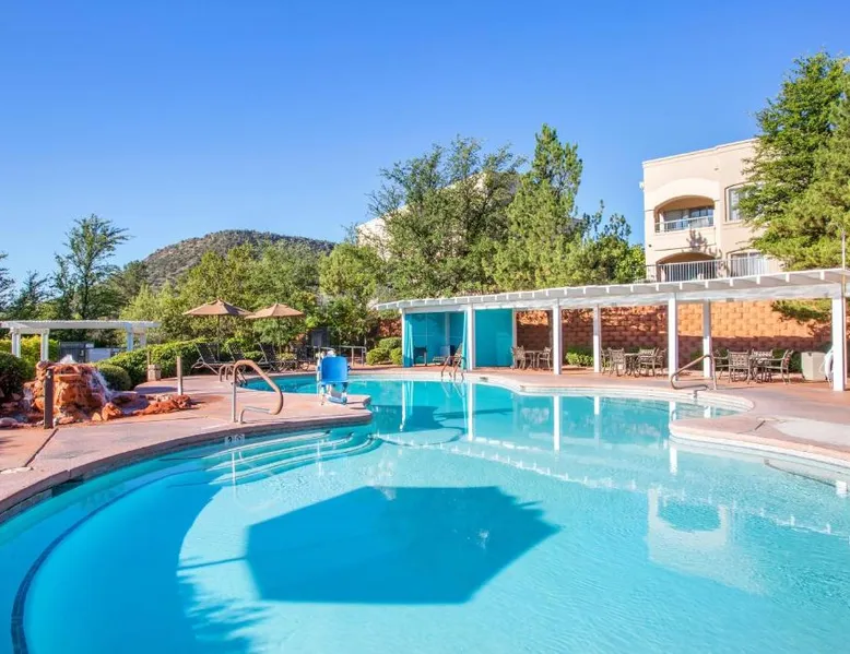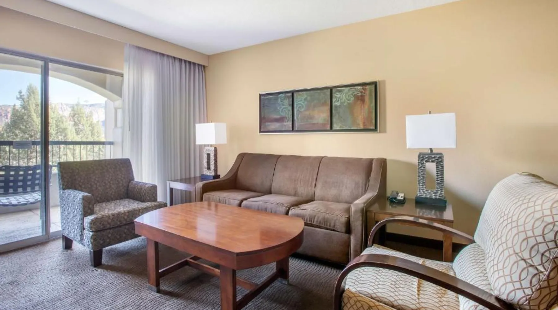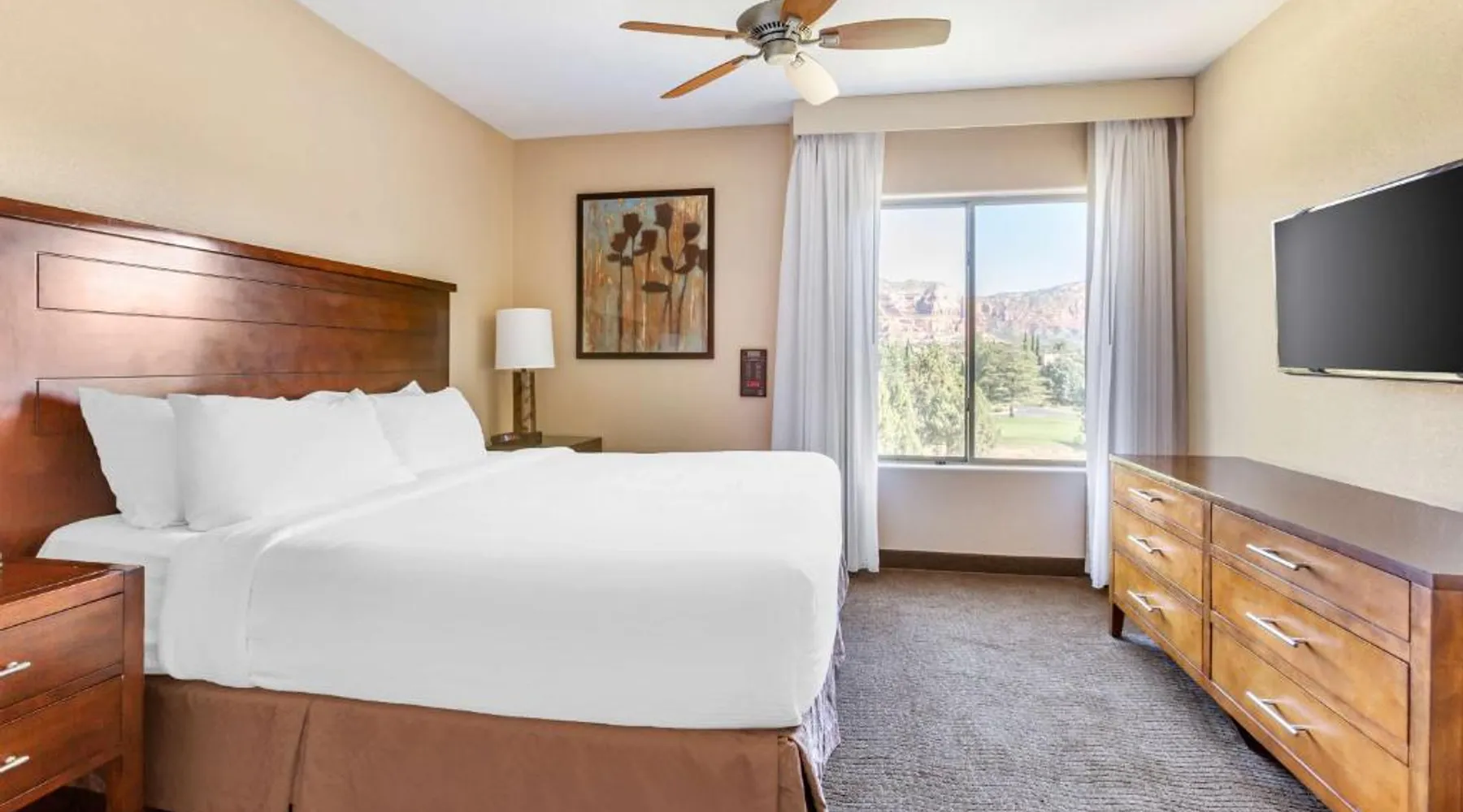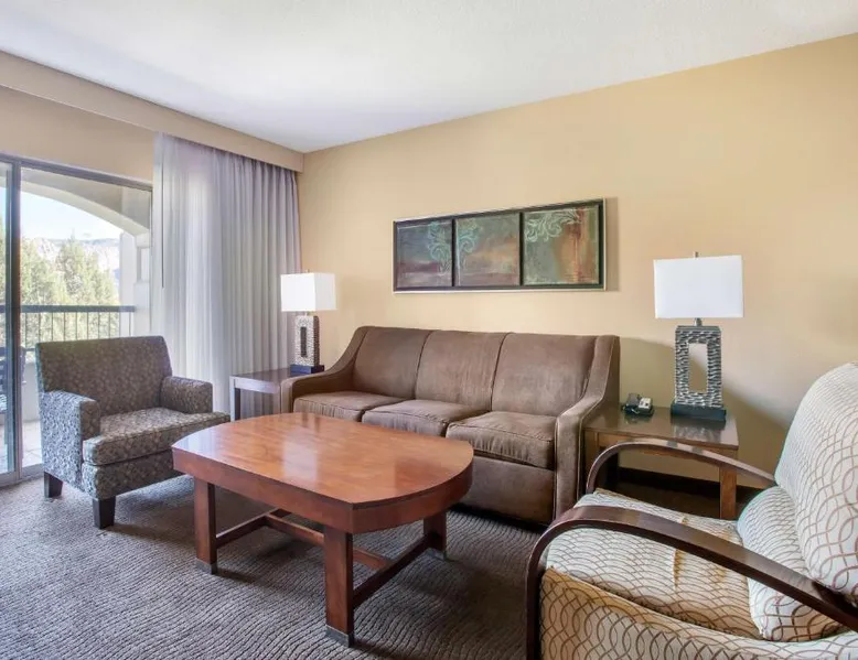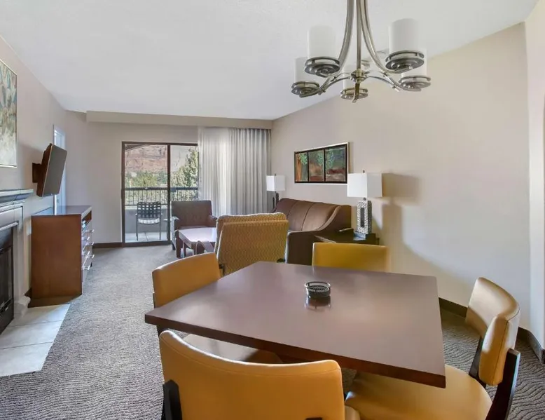 Located among the stunning red rock formations of Sedona, Arizona, this hotel features an on-site top-rated golf course along with spacious accommodations, moments from area attractions and activities. Hilton Vacation Club Ridge on Sedona provides guests with a variety of on-site amenities and facilities. With in-room fully equipped kitchens, outdoor barbecue facilities and a modern fitness center, every stay is sure to be enjoyable. Guests can also enjoy contemporary accommodations featuring private balconies or terraces. The area surrounding the Hilton Vacation Club Ridge on Sedona is filled with a variety of leisure activities. Guests can enjoy scenic hiking trails through Oak Creek Canyon or a hot-air balloon ride over the desert. A number of shopping centers and restaurants are also easily accessible from the hotel. The well-fitted kitchen features a stovetop, a refrigerator, a dishwasher and kitchenware. A seating area with a flat-screen TV, air conditioning and a balcony are featured in this spacious suite. The unit offers 4 beds.