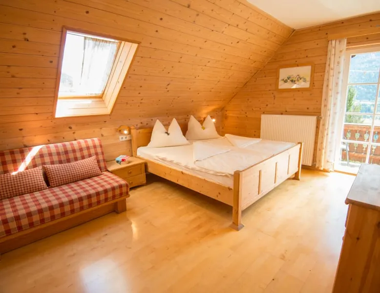 Explore nature, hike through the countryside, experience culture, discover new traditions, breathe, energise, find yourself. Children will feel safe and free in the natural adventure playground far away from any noise or traffic. Our organic farm is home to cows, calves, sheep, horses, chickens, rabbits, cats and a pony. Bathing pool, hiking trails, baby equipment, fresh bread roll service., For 2– 5 persons, approx. 50 m², two bedrooms, balcony, kitchen, bathroom. Large family room with pull-o