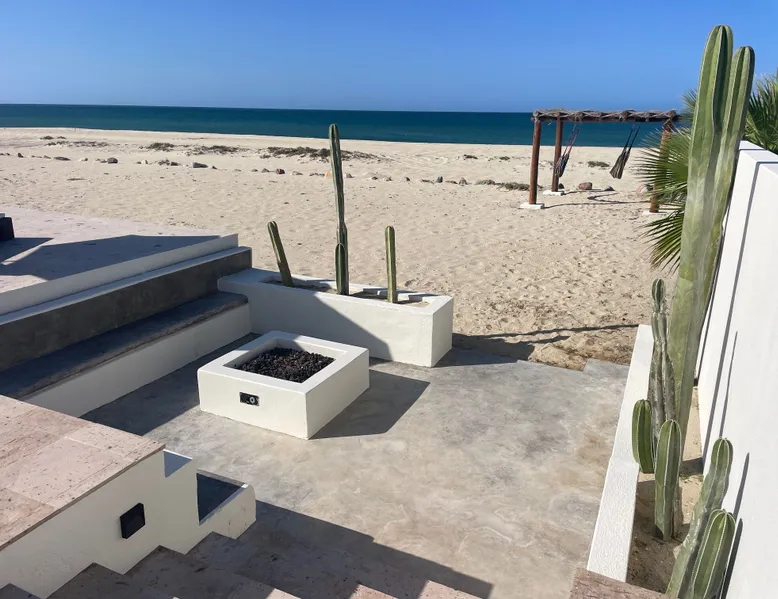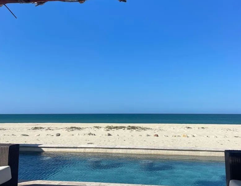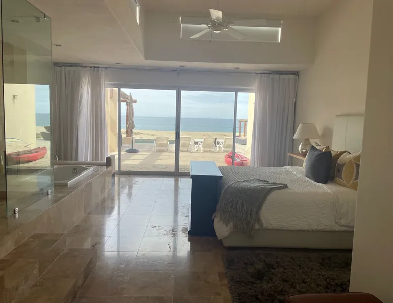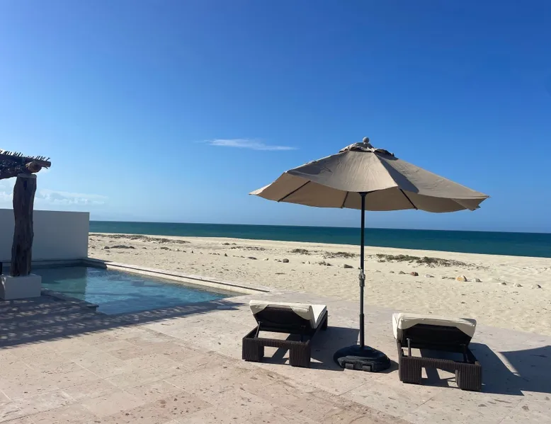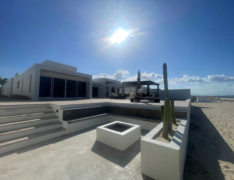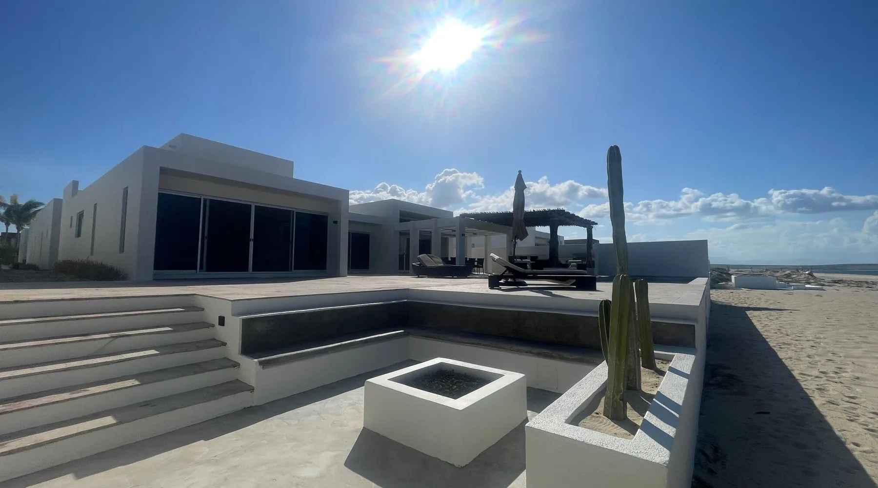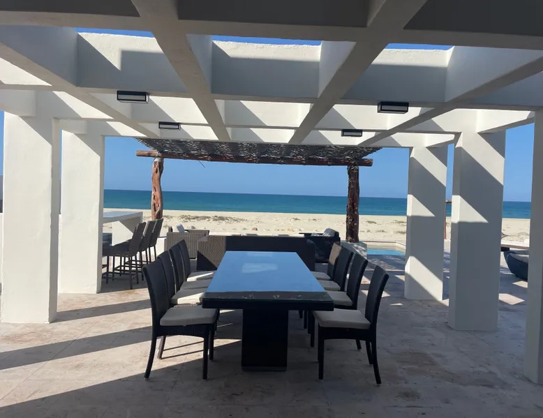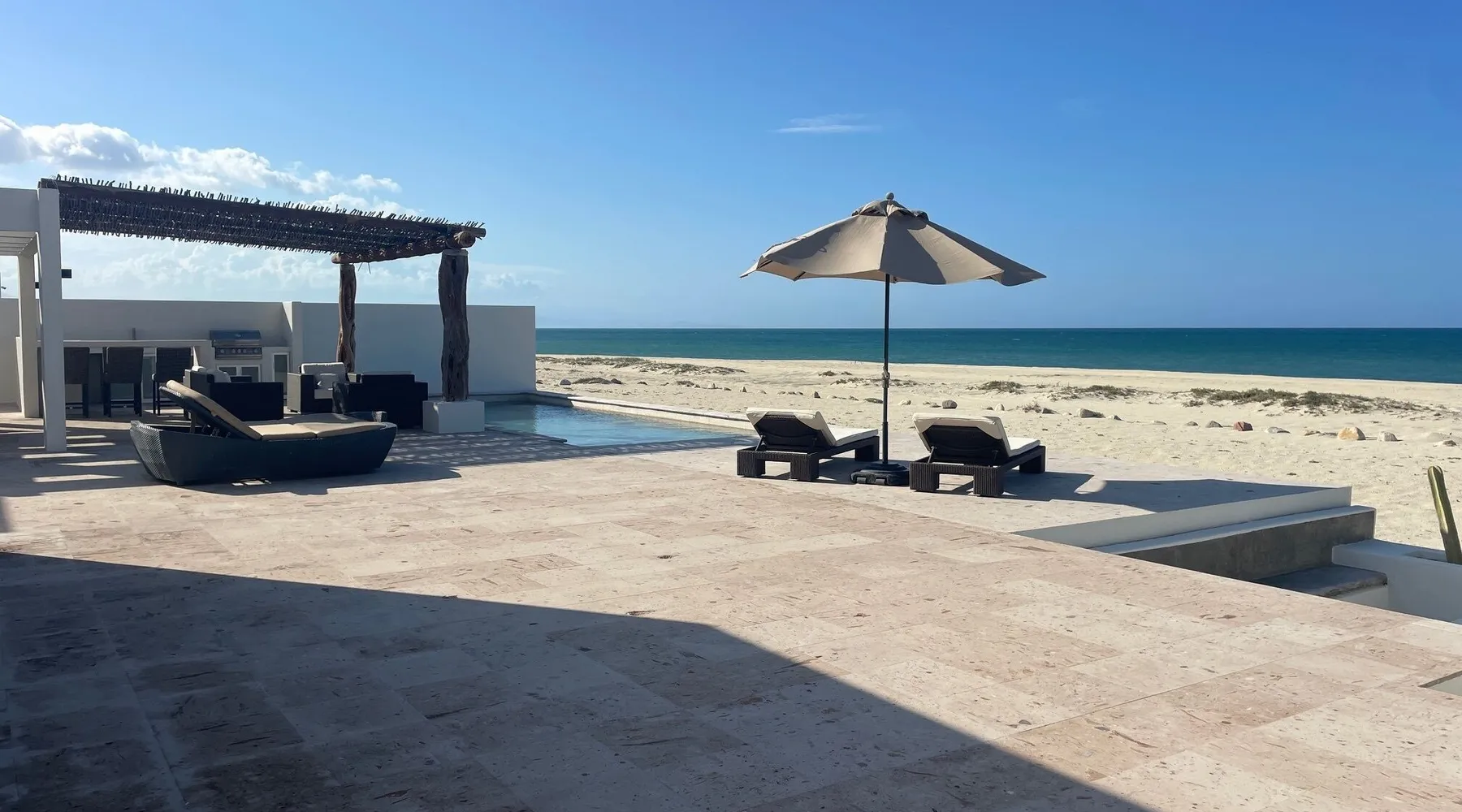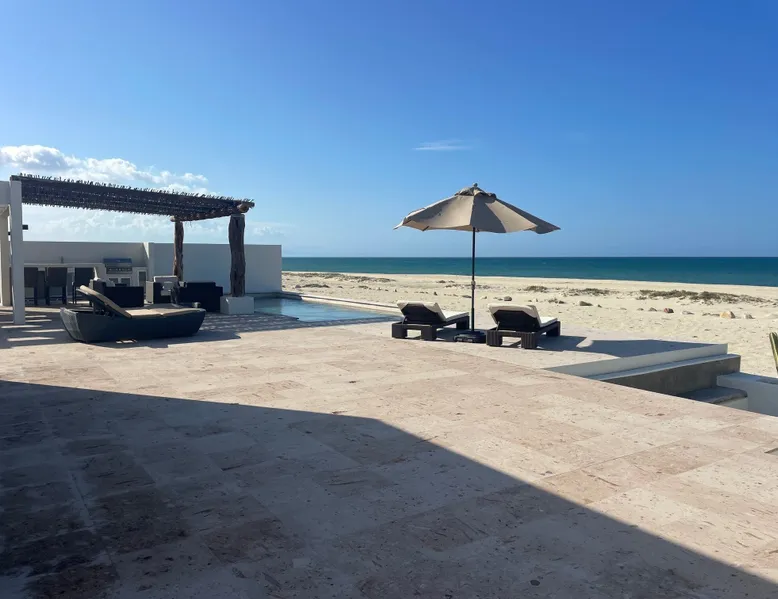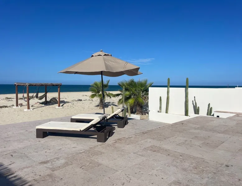 Walk out of your own private villa and right onto the serene white sands of the East Cape; enjoy your morning coffee next to the warm calm waters of the Sea of Cortez, or watch the waves from your personal patio. This house is designed with space and privacy in mind; each suite has its own bathroom, ample closet-space, and all bedrooms open onto the house’s beautiful private courtyard! The two master suites face the beachfront—wake up to one of the most coveted views in the world. Wide open living spaces make it a perfect home to entertain or enjoy your large group. This modern, open-concept space features a large kitchen, dining, and living area that opens right onto the patio. With five-bedrooms, five and a half bathrooms, and several outdoor lounge and dining areas, this nearly 5000 square foot home will provide the perfect setting for your vacation. We also provide several outdoor amenities: enjoy the property’s tennis court and miniature soccer field! For those of you who love the water, we encourage you to use our paddle board and . We also recommend relaxing in our covered hammock area after a day in the sun! The area also offers fishing charters and diving excursions. There are world-class restaurants in the nearby Four Seasons Resort, and authentic local eateries that our on-site staff can recommend for you! This property features a gated and private driveway, as well as ample parking; it’s also located in a gated community with full-time security!