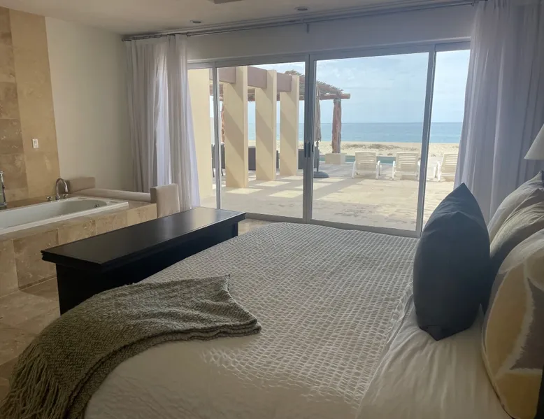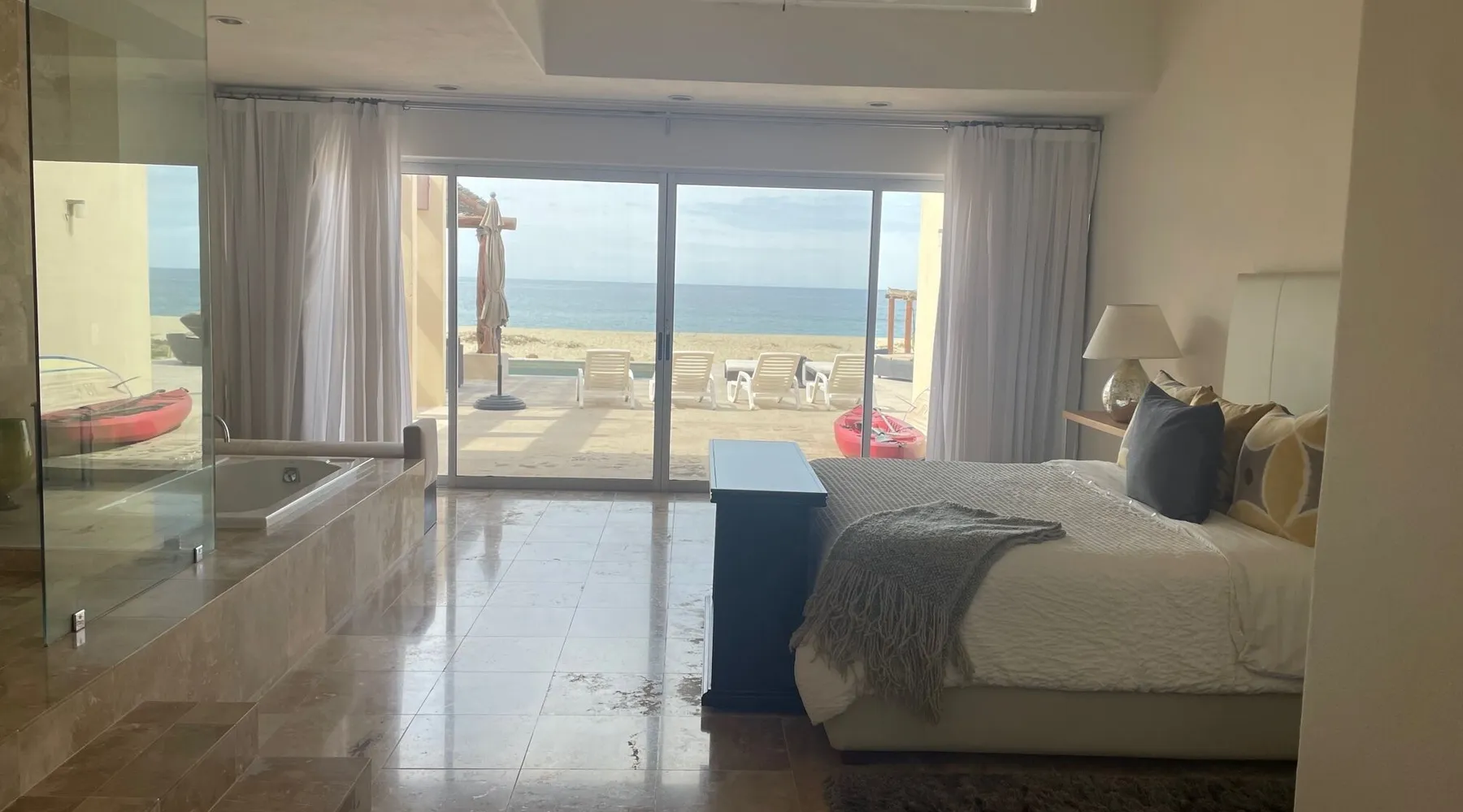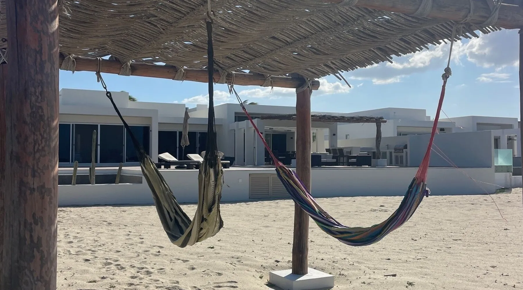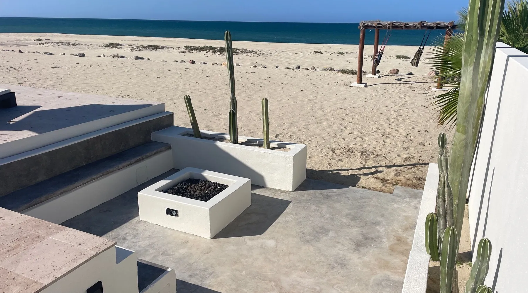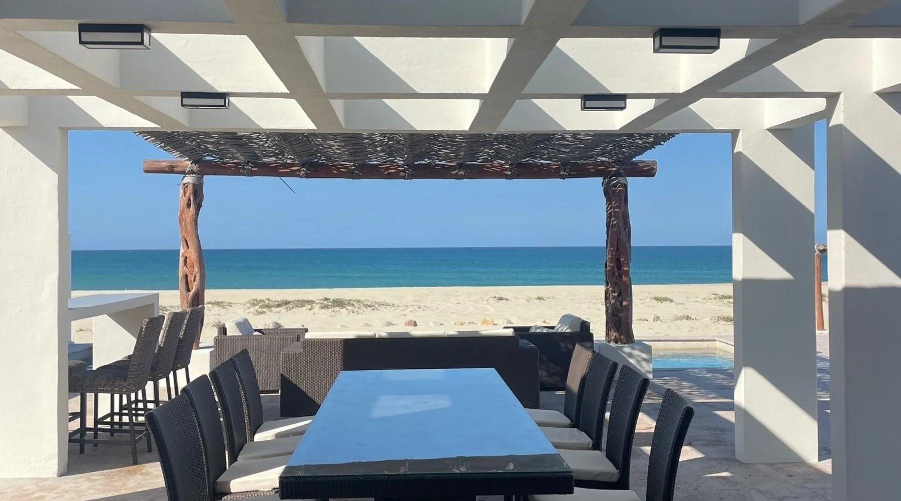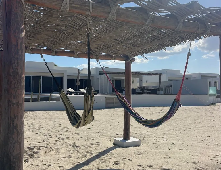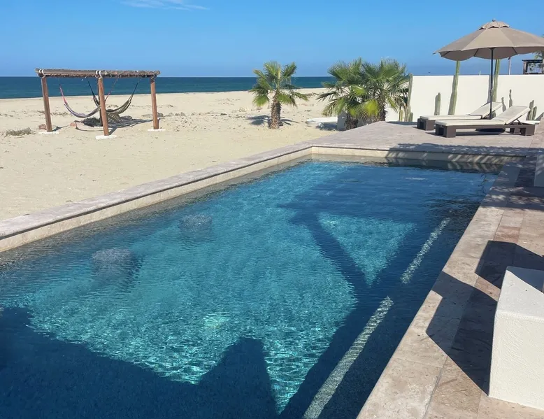 Walk out of your own private villa and right onto the serene white sands of the East Cape; enjoy your morning coffee next to the warm calm waters of the Sea of Cortez, or watch the waves from your personal patio. This house is designed with space and privacy in mind; each suite has its own bathroom, ample closet-space, and all bedrooms open onto the house’s beautiful private courtyard! The two master suites face the beachfront—wake up to one of the most coveted views in the world. Wide open living spaces make it a perfect home to entertain or enjoy your large group. This modern, open-concept space features a large kitchen, dining, and living area that opens right onto the patio. With five-bedrooms, five and a half bathrooms, and several outdoor lounge and dining areas, this nearly 5000 square foot home will provide the perfect setting for your vacation. We also provide several outdoor amenities: enjoy the property’s tennis court and miniature soccer field! For those of you who love the water, we encourage you to use our paddle board and . We also recommend relaxing in our covered hammock area after a day in the sun! The area also offers fishing charters and diving excursions. There are world-class restaurants in the nearby Four Seasons Resort, and authentic local eateries that our on-site staff can recommend for you! This property features a gated and private driveway, as well as ample parking; it’s also located in a gated community with full-time security!