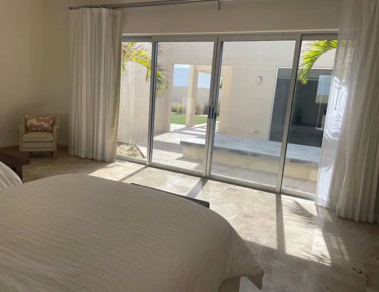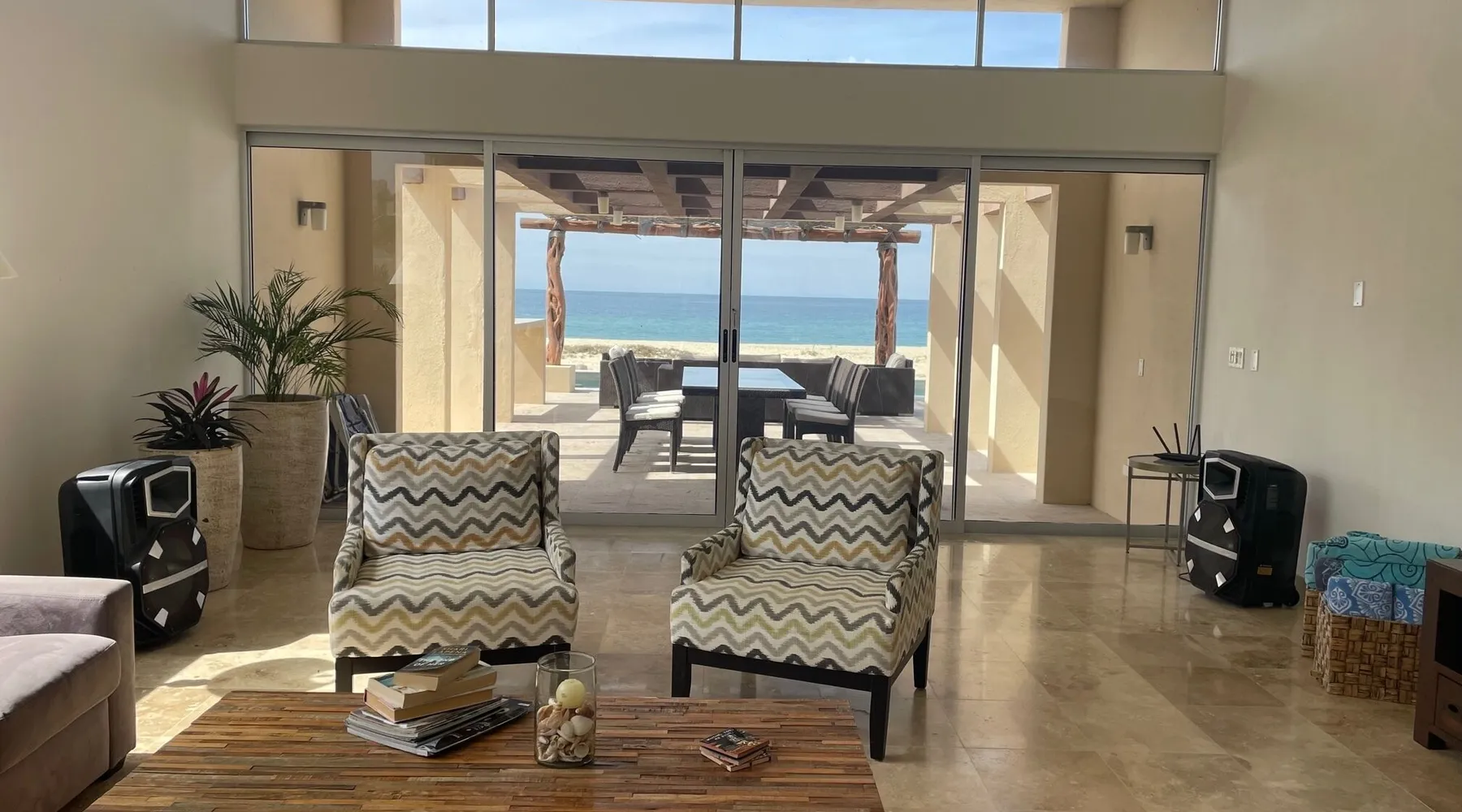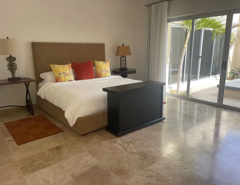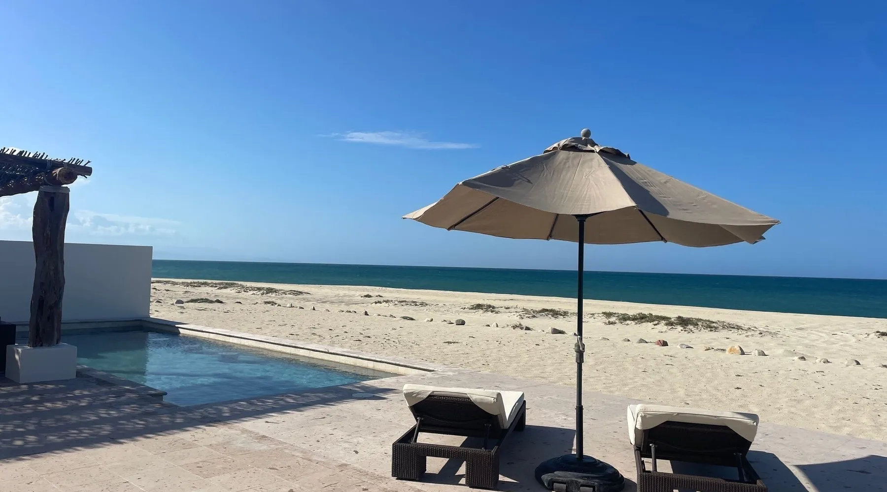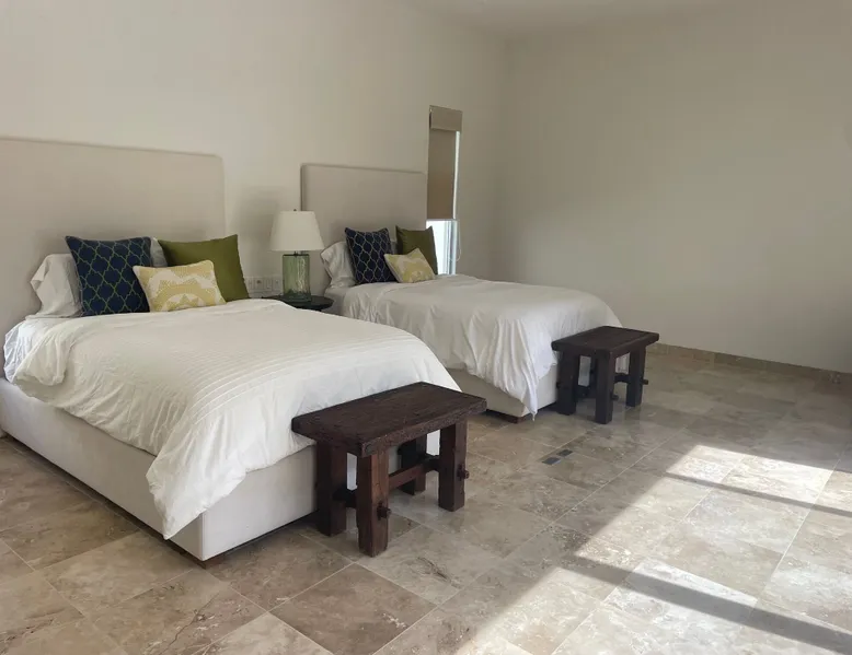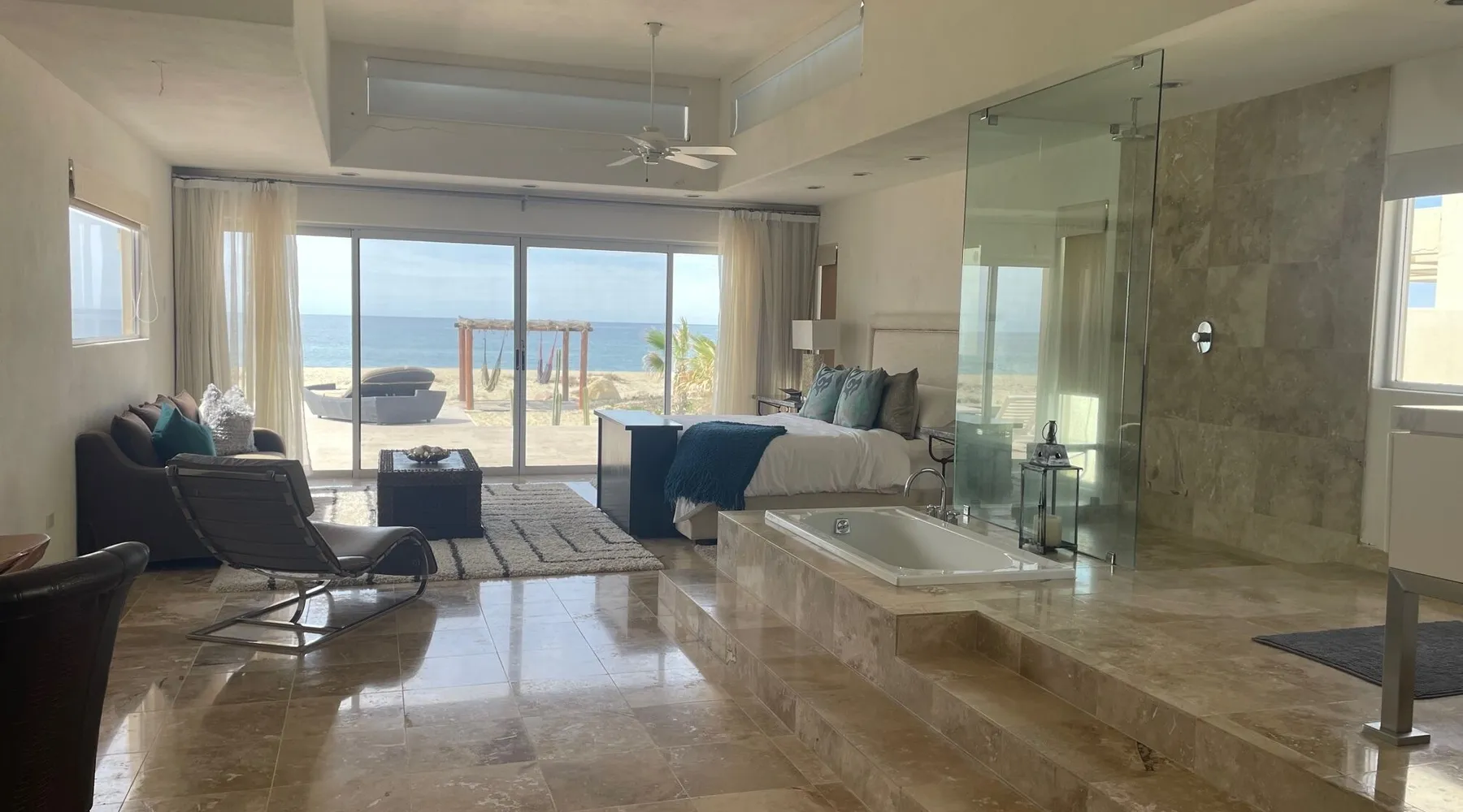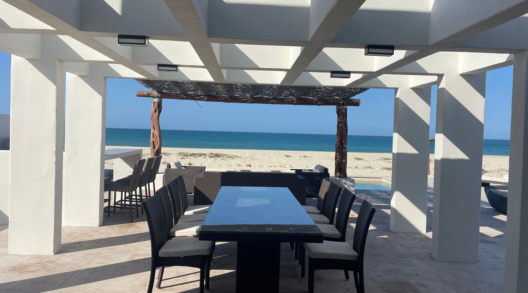 Walk out of your own private villa and right onto the serene white sands of the East Cape; enjoy your morning coffee next to the warm calm waters of the Sea of Cortez, or watch the waves from your personal patio. This house is designed with space and privacy in mind; each suite has its own bathroom, ample closet-space, and all bedrooms open onto the house’s beautiful private courtyard! The two master suites face the beachfront—wake up to one of the most coveted views in the world. Wide open living spaces make it a perfect home to entertain or enjoy your large group. This modern, open-concept space features a large kitchen, dining, and living area that opens right onto the patio. With five-bedrooms, five and a half bathrooms, and several outdoor lounge and dining areas, this nearly 5000 square foot home will provide the perfect setting for your vacation. We also provide several outdoor amenities: enjoy the property’s tennis court and miniature soccer field! For those of you who love the water, we encourage you to use our paddle board and . We also recommend relaxing in our covered hammock area after a day in the sun! The area also offers fishing charters and diving excursions. There are world-class restaurants in the nearby Four Seasons Resort, and authentic local eateries that our on-site staff can recommend for you! This property features a gated and private driveway, as well as ample parking; it’s also located in a gated community with full-time security!