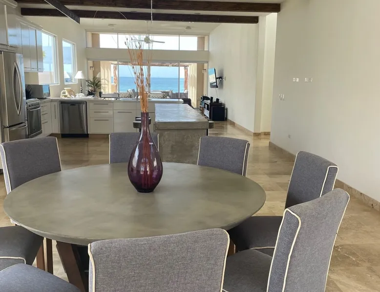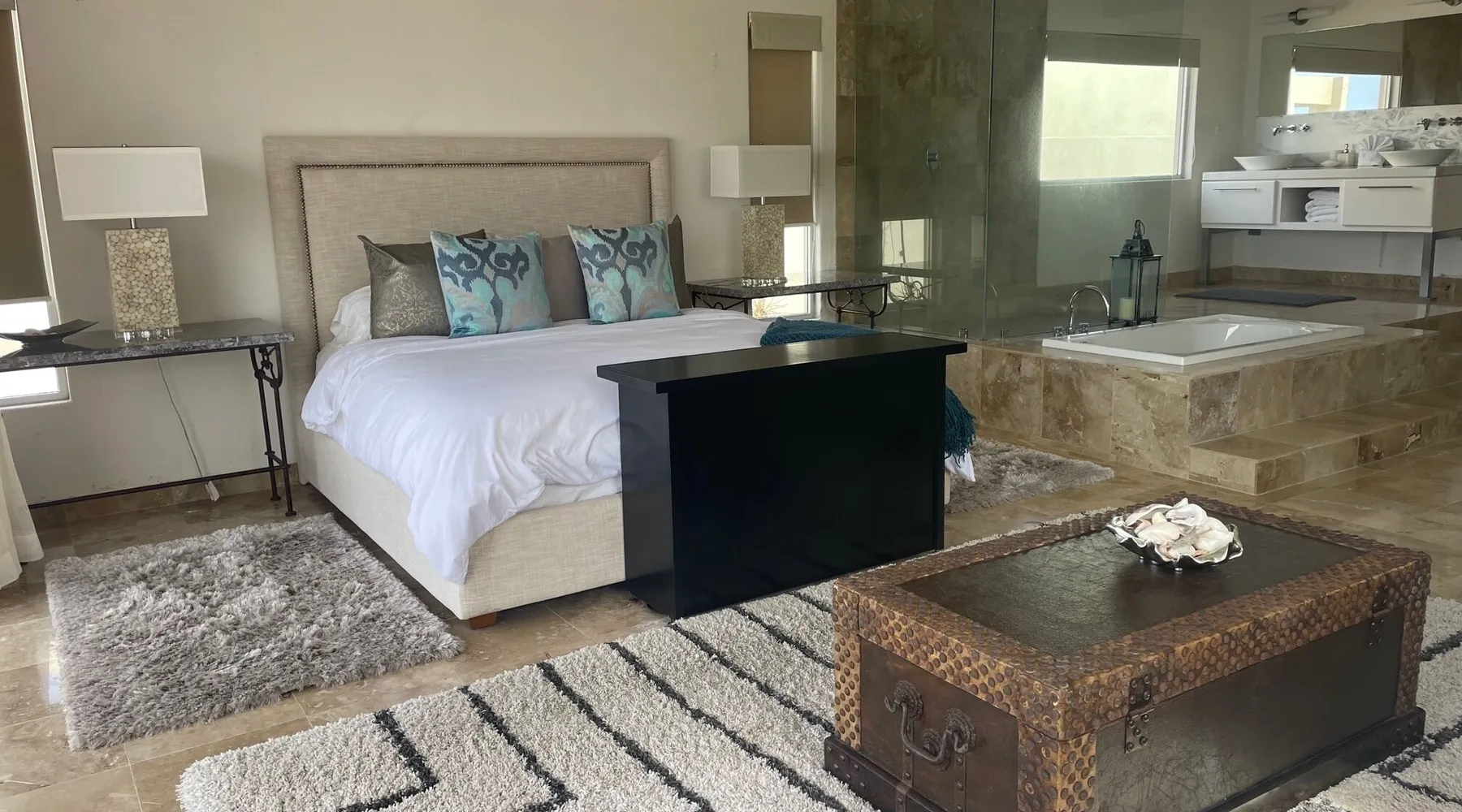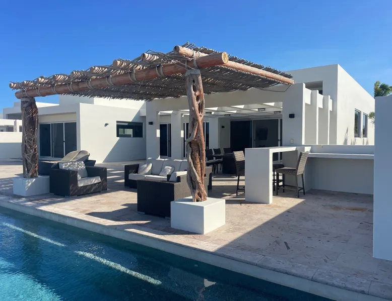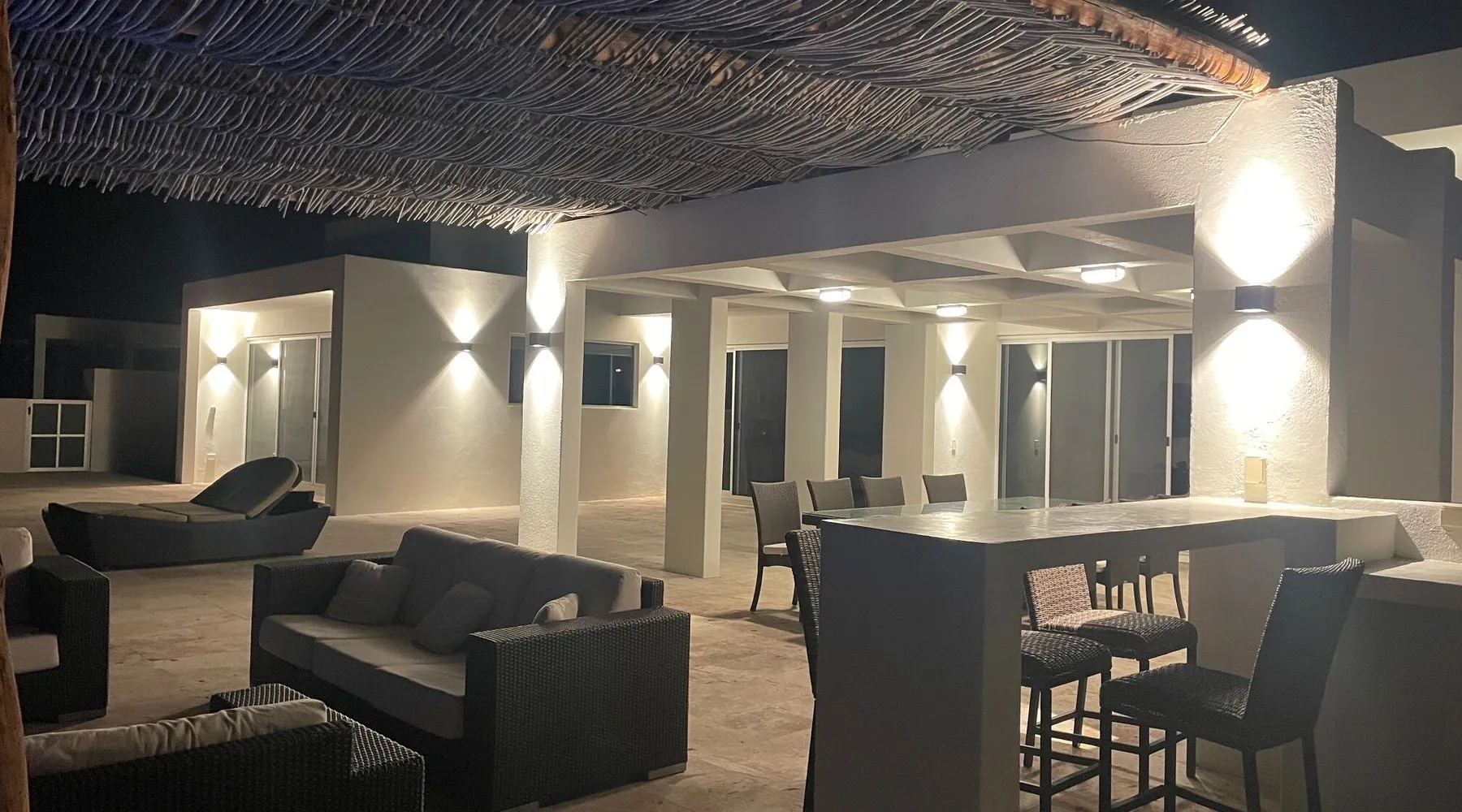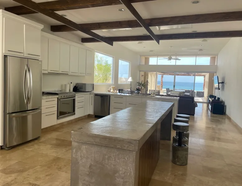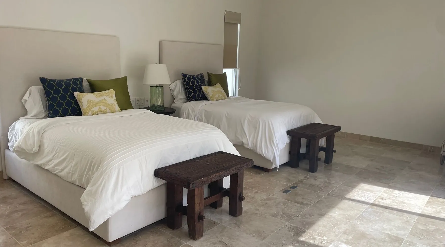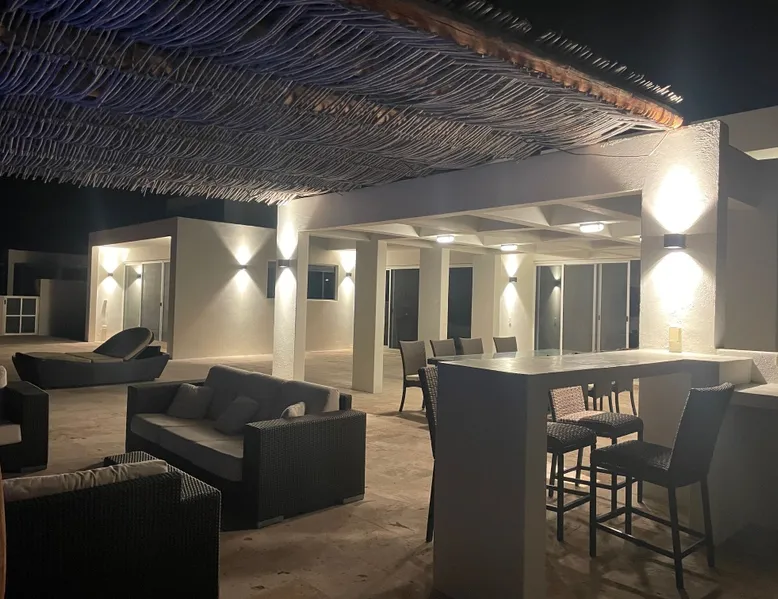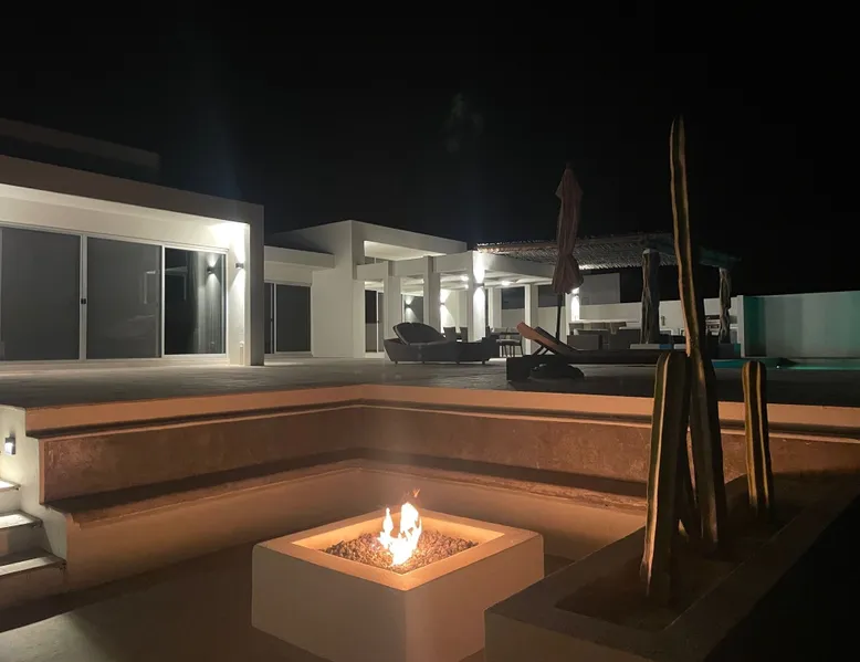 Walk out of your own private villa and right onto the serene white sands of the East Cape; enjoy your morning coffee next to the warm calm waters of the Sea of Cortez, or watch the waves from your personal patio. This house is designed with space and privacy in mind; each suite has its own bathroom, ample closet-space, and all bedrooms open onto the house’s beautiful private courtyard! The two master suites face the beachfront—wake up to one of the most coveted views in the world. Wide open living spaces make it a perfect home to entertain or enjoy your large group. This modern, open-concept space features a large kitchen, dining, and living area that opens right onto the patio. With five-bedrooms, five and a half bathrooms, and several outdoor lounge and dining areas, this nearly 5000 square foot home will provide the perfect setting for your vacation. We also provide several outdoor amenities: enjoy the property’s tennis court and miniature soccer field! For those of you who love the water, we encourage you to use our paddle board and . We also recommend relaxing in our covered hammock area after a day in the sun! The area also offers fishing charters and diving excursions. There are world-class restaurants in the nearby Four Seasons Resort, and authentic local eateries that our on-site staff can recommend for you! This property features a gated and private driveway, as well as ample parking; it’s also located in a gated community with full-time security!
