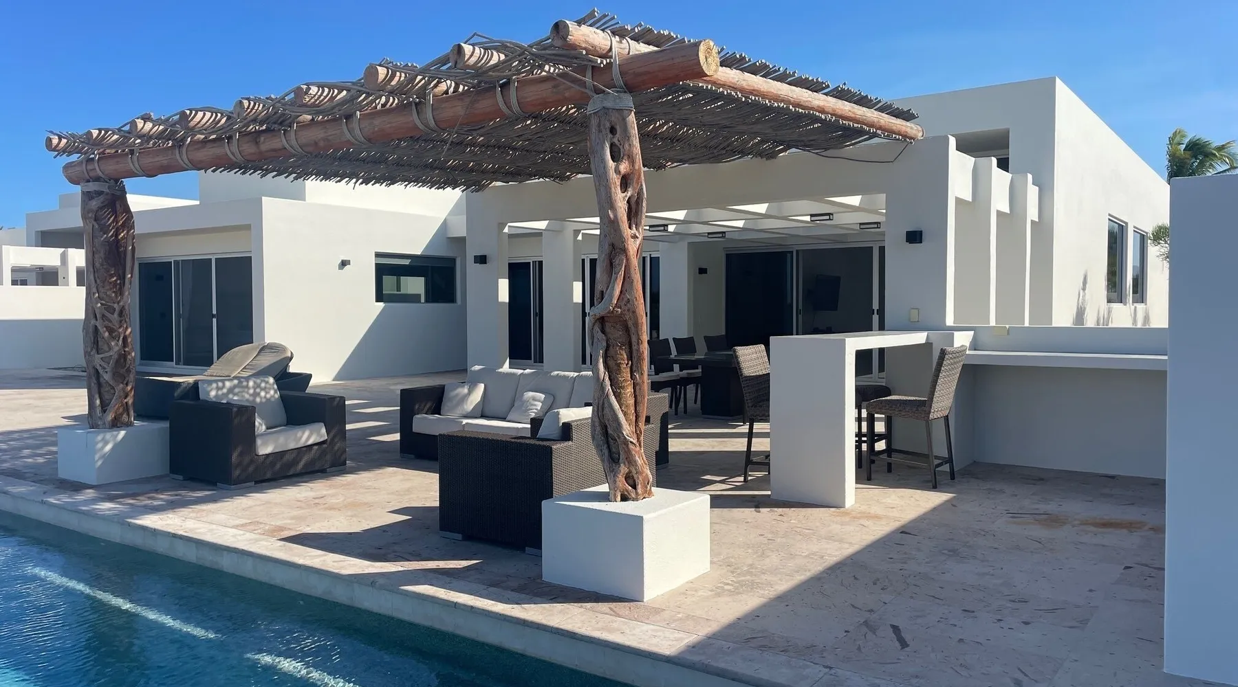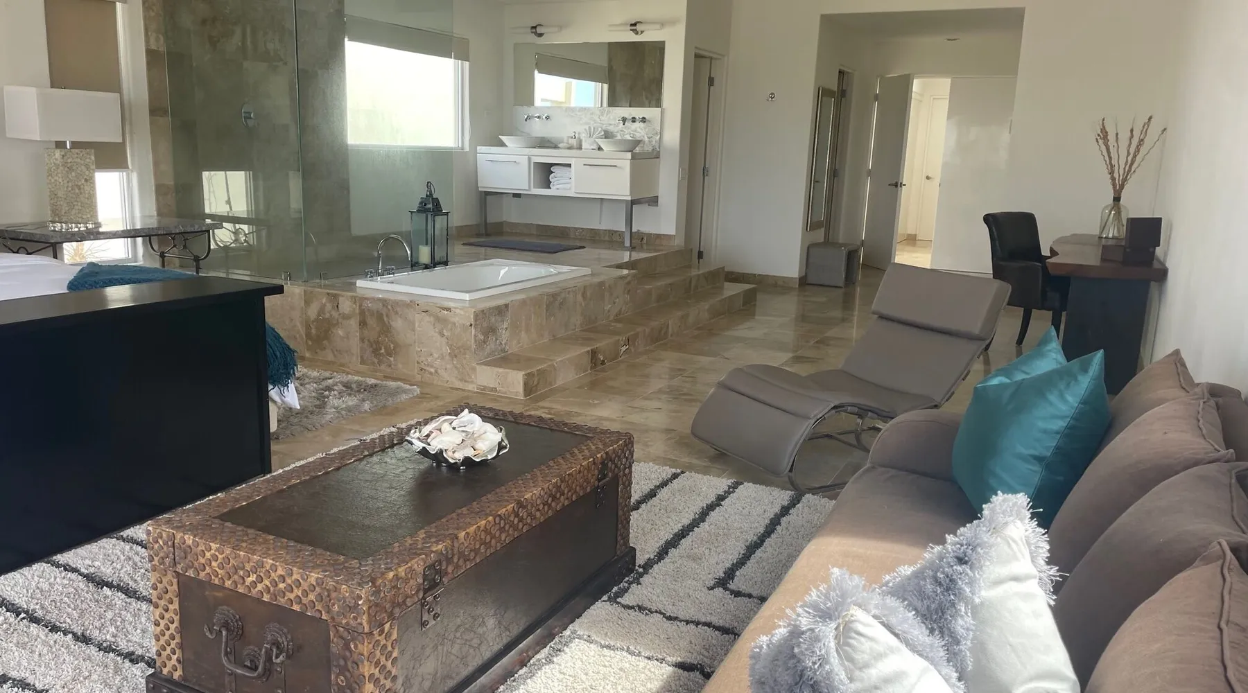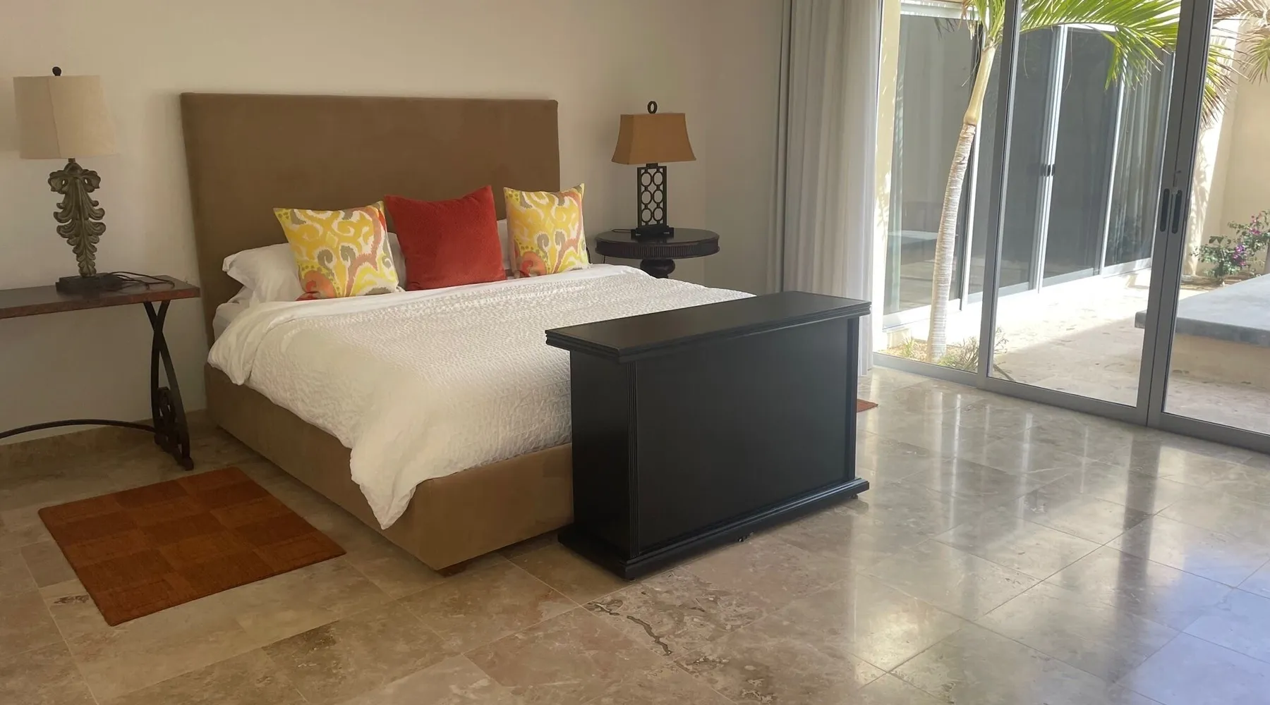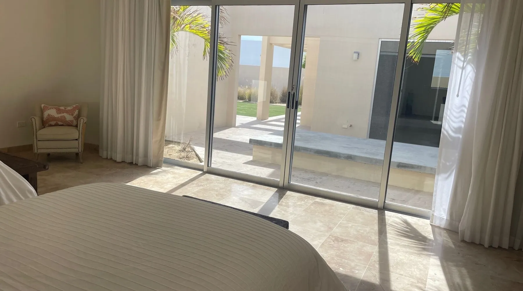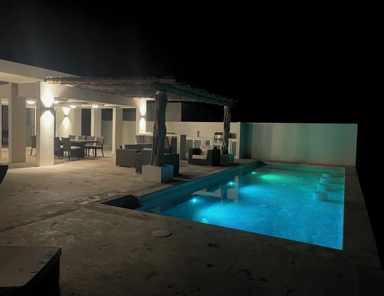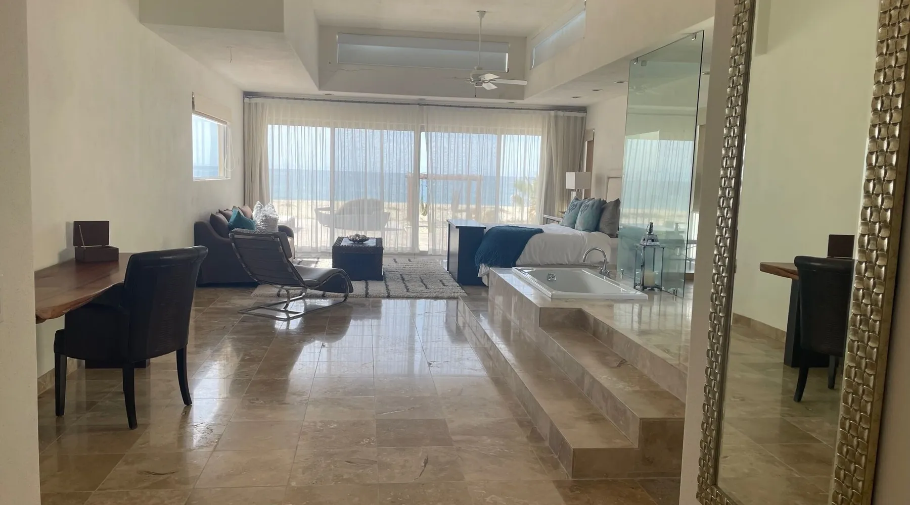 Walk out of your own private villa and right onto the serene white sands of the East Cape; enjoy your morning coffee next to the warm calm waters of the Sea of Cortez, or watch the waves from your personal patio. This house is designed with space and privacy in mind; each suite has its own bathroom, ample closet-space, and all bedrooms open onto the house’s beautiful private courtyard! The two master suites face the beachfront—wake up to one of the most coveted views in the world. Wide open living spaces make it a perfect home to entertain or enjoy your large group. This modern, open-concept space features a large kitchen, dining, and living area that opens right onto the patio. With five-bedrooms, five and a half bathrooms, and several outdoor lounge and dining areas, this nearly 5000 square foot home will provide the perfect setting for your vacation. We also provide several outdoor amenities: enjoy the property’s tennis court and miniature soccer field! For those of you who love the water, we encourage you to use our paddle board and . We also recommend relaxing in our covered hammock area after a day in the sun! The area also offers fishing charters and diving excursions. There are world-class restaurants in the nearby Four Seasons Resort, and authentic local eateries that our on-site staff can recommend for you! This property features a gated and private driveway, as well as ample parking; it’s also located in a gated community with full-time security!