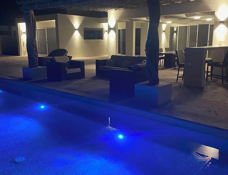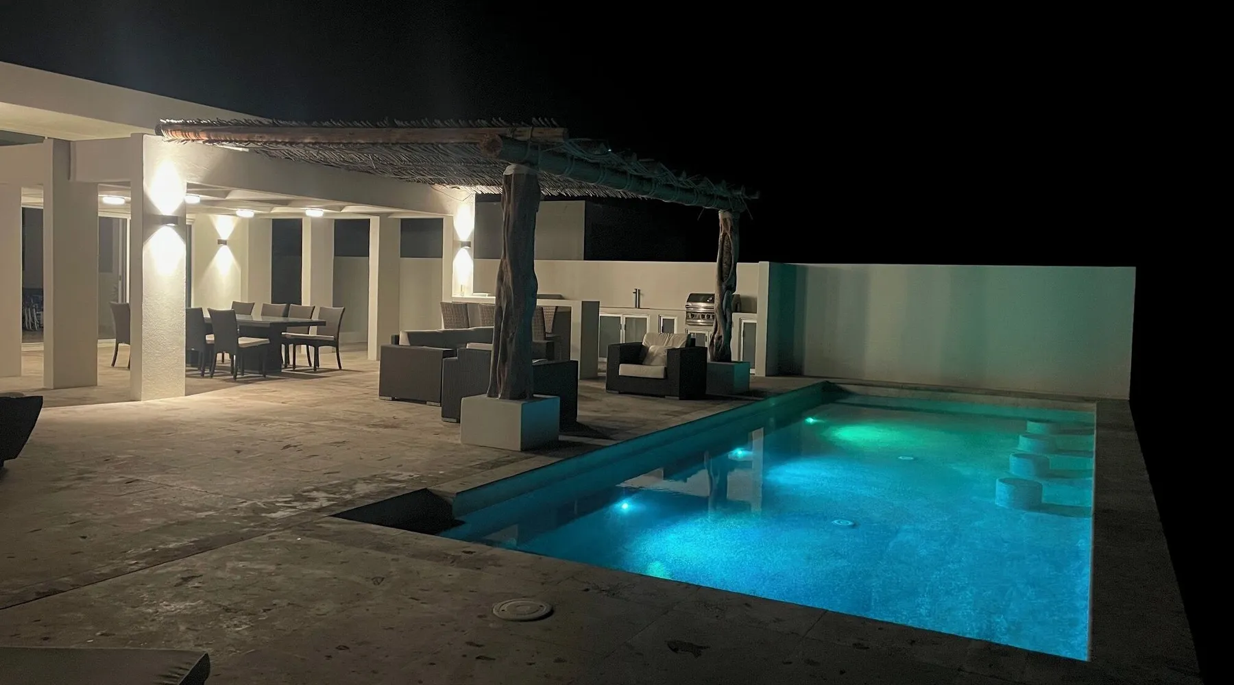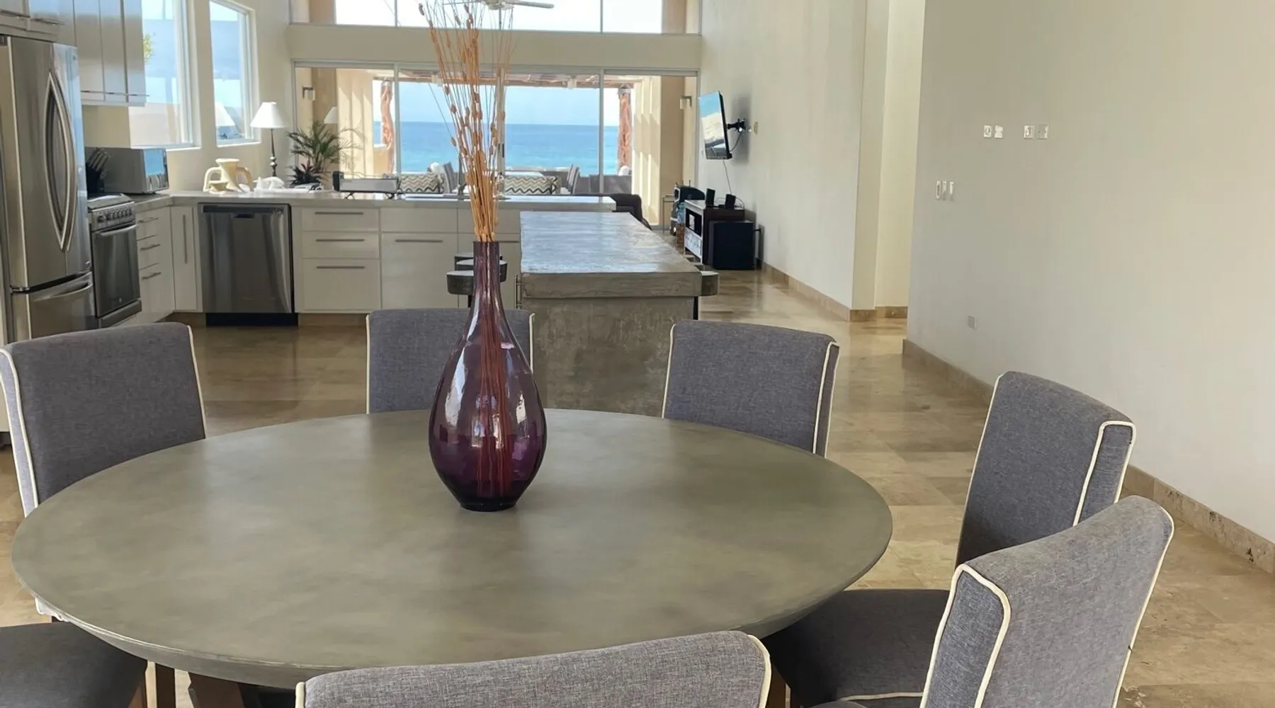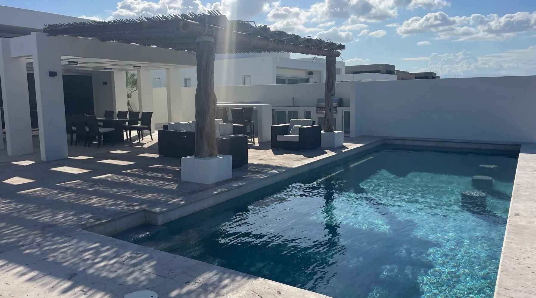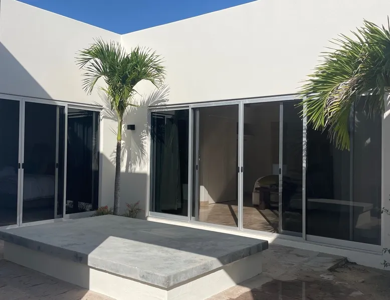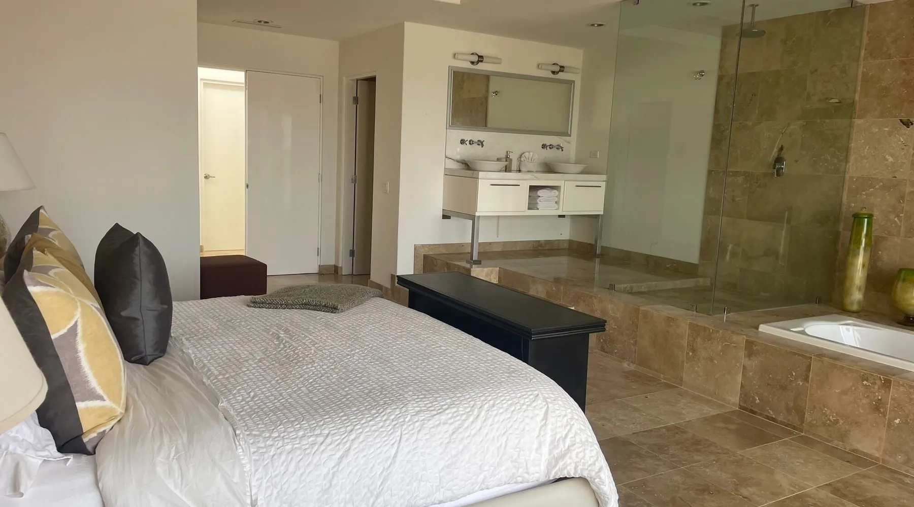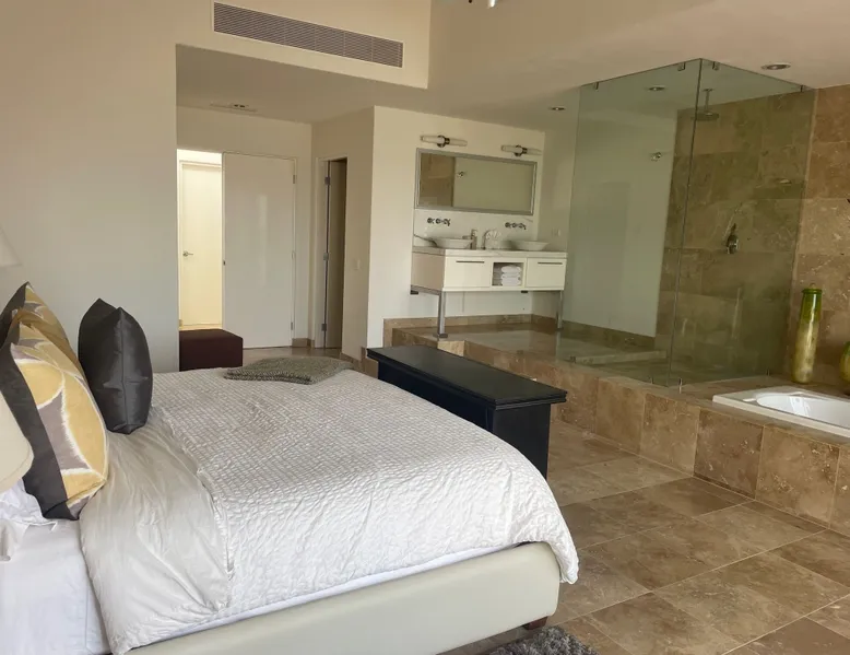 Walk out of your own private villa and right onto the serene white sands of the East Cape; enjoy your morning coffee next to the warm calm waters of the Sea of Cortez, or watch the waves from your personal patio. This house is designed with space and privacy in mind; each suite has its own bathroom, ample closet-space, and all bedrooms open onto the house’s beautiful private courtyard! The two master suites face the beachfront—wake up to one of the most coveted views in the world. Wide open living spaces make it a perfect home to entertain or enjoy your large group. This modern, open-concept space features a large kitchen, dining, and living area that opens right onto the patio. With five-bedrooms, five and a half bathrooms, and several outdoor lounge and dining areas, this nearly 5000 square foot home will provide the perfect setting for your vacation. We also provide several outdoor amenities: enjoy the property’s tennis court and miniature soccer field! For those of you who love the water, we encourage you to use our paddle board and . We also recommend relaxing in our covered hammock area after a day in the sun! The area also offers fishing charters and diving excursions. There are world-class restaurants in the nearby Four Seasons Resort, and authentic local eateries that our on-site staff can recommend for you! This property features a gated and private driveway, as well as ample parking; it’s also located in a gated community with full-time security!