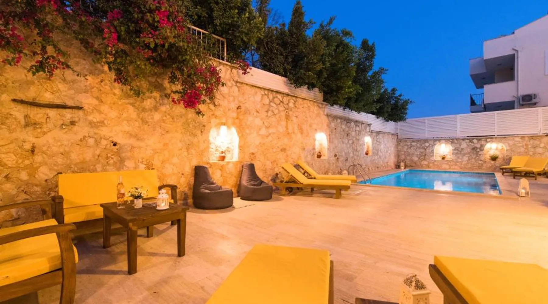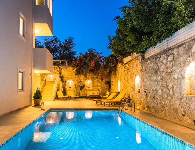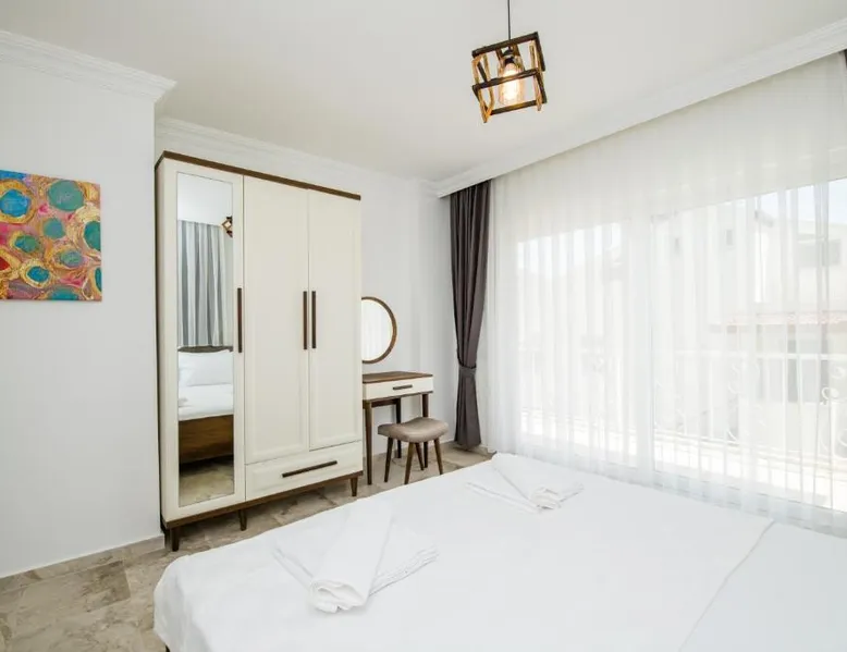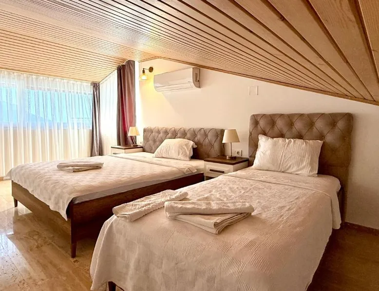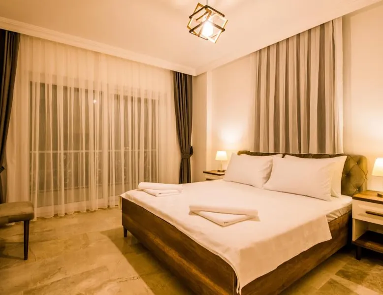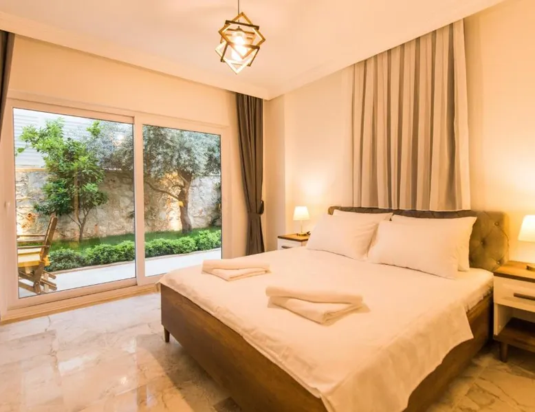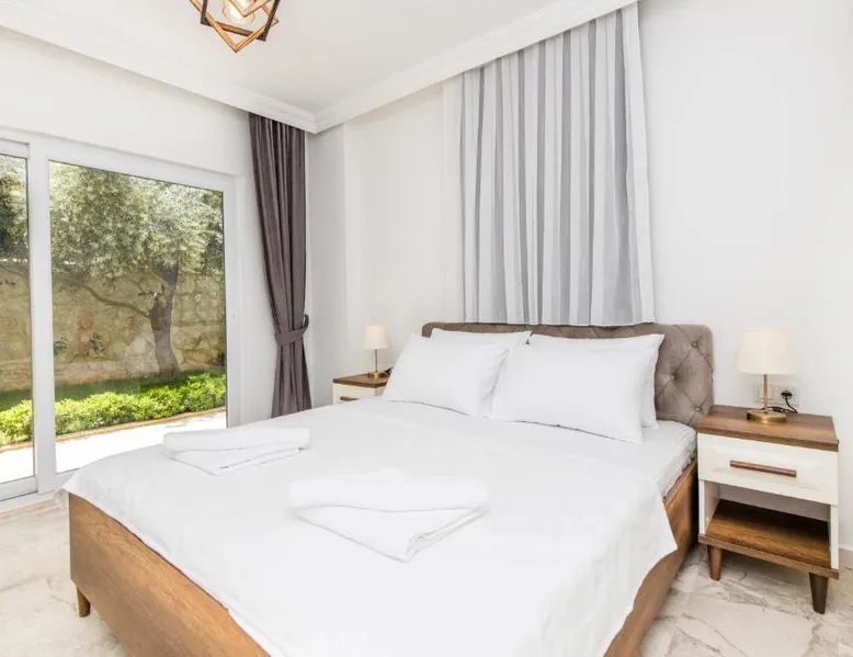 Comfortable Accommodations: Garden Court Apartments in Kalkan offers a sun terrace, garden, and a seasonal outdoor swimming pool. Free WiFi is available throughout the property. Modern Amenities: Each apartment features air-conditioning, a terrace or balcony, a fully equipped kitchen, and a private bathroom. Additional amenities include a washing machine, dishwasher, and TV. Convenient Location: Kalkan Public Beach is an 8-minute walk away, Kalkan Yacht Marine 1969 feet nearby, and Kalkan Bus Station a 9-minute walk. Lycian Rock Cemetery lies 17 mi from the property. Guest Favorites: Guests appreciate the family-friendly environment and the range of facilities, including a paid shuttle service, grocery delivery, outdoor seating area, and car hire. This spacious apartment comes with 1 living room, 2 separate bedrooms and 2 bathrooms with a shower and a hairdryer. In the kitchen, guests will find a stovetop, a refrigerator, a dishwasher and kitchenware. The air-conditioned apartment features a flat-screen TV with satellite channels, a washing machine, a seating area, a dining area as well as garden views. The unit has 2 beds.