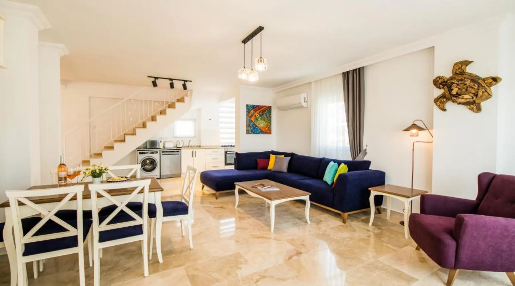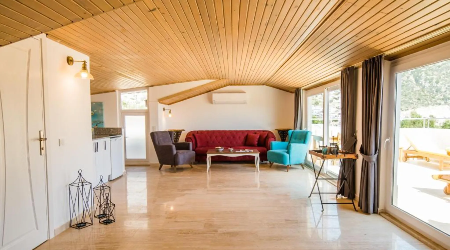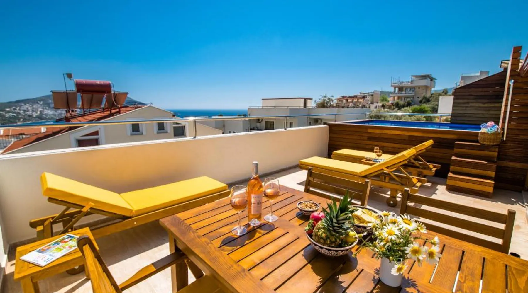 Comfortable Accommodations: Garden Court Apartments in Kalkan offers a sun terrace, garden, and a seasonal outdoor swimming pool. Free WiFi is available throughout the property. Modern Amenities: Each apartment features air-conditioning, a terrace or balcony, a fully equipped kitchen, and a private bathroom. Additional amenities include a washing machine, dishwasher, and TV. Convenient Location: Kalkan Public Beach is an 8-minute walk away, Kalkan Yacht Marine 1969 feet nearby, and Kalkan Bus Station a 9-minute walk. Lycian Rock Cemetery lies 17 mi from the property. Guest Favorites: Guests appreciate the family-friendly environment and the range of facilities, including a paid shuttle service, grocery delivery, outdoor seating area, and car hire. This spacious apartment comes with 1 living room, 2 separate bedrooms and 2 bathrooms with a shower and a hairdryer. In the kitchen, guests will find a stovetop, a refrigerator, a dishwasher and kitchenware. The air-conditioned apartment features a flat-screen TV with satellite channels, a washing machine, a seating area, a dining area as well as garden views. The unit has 2 beds.