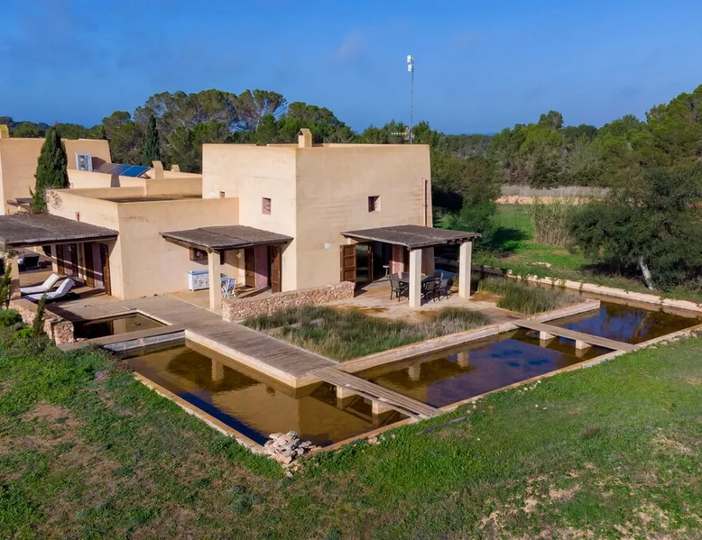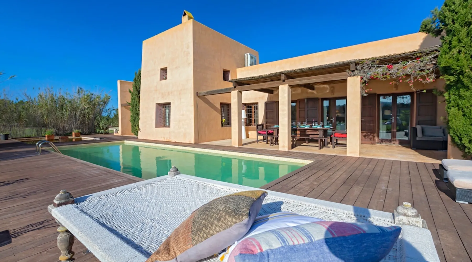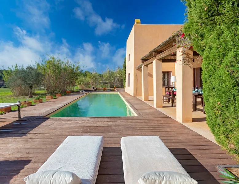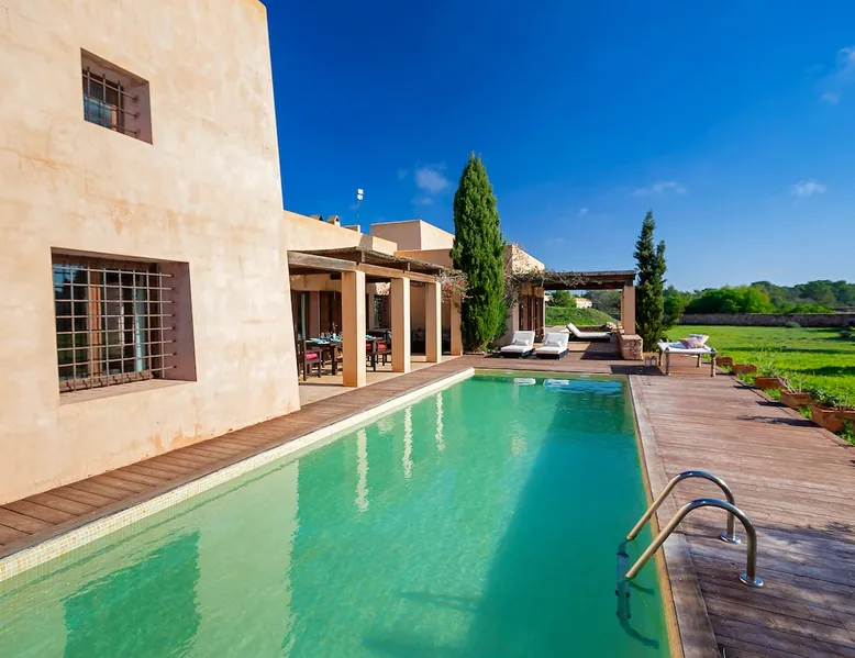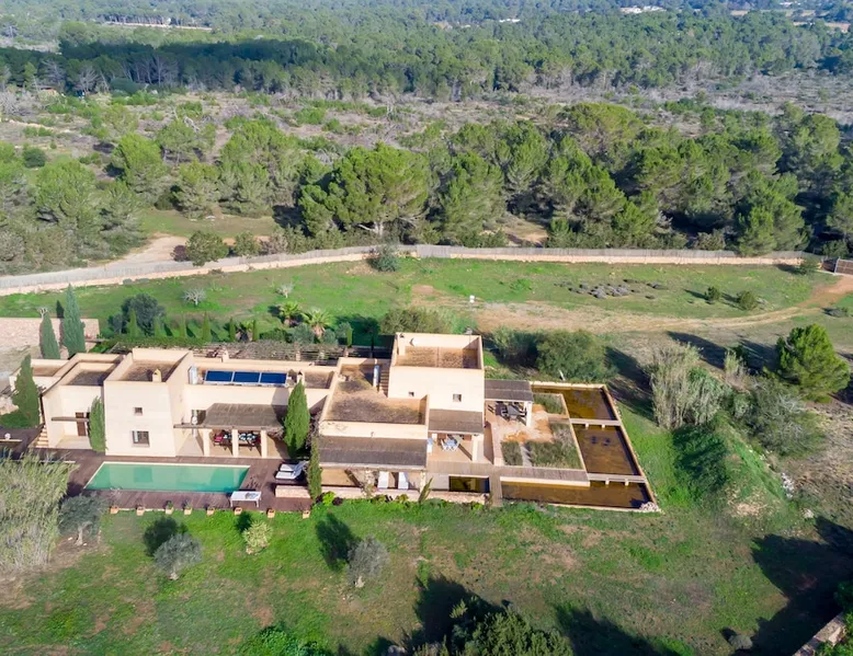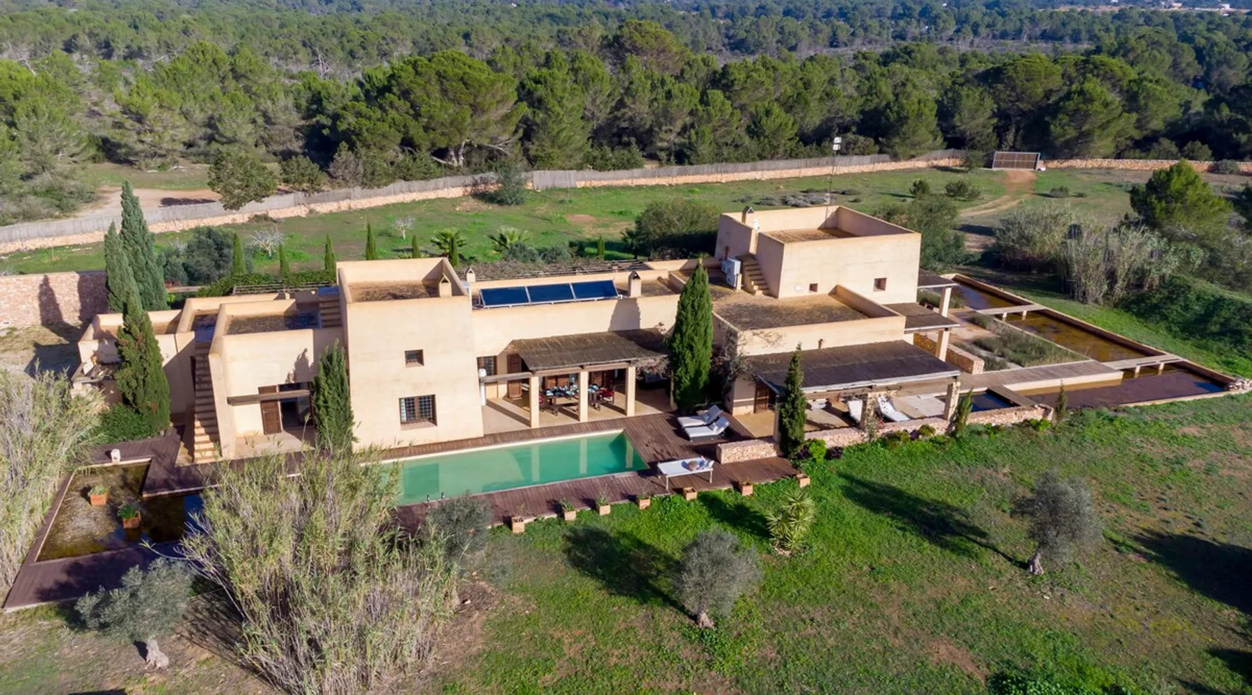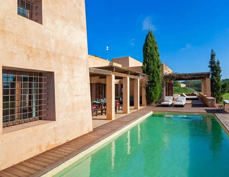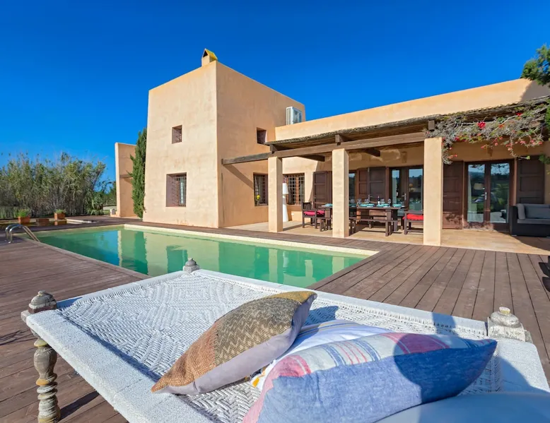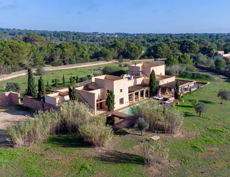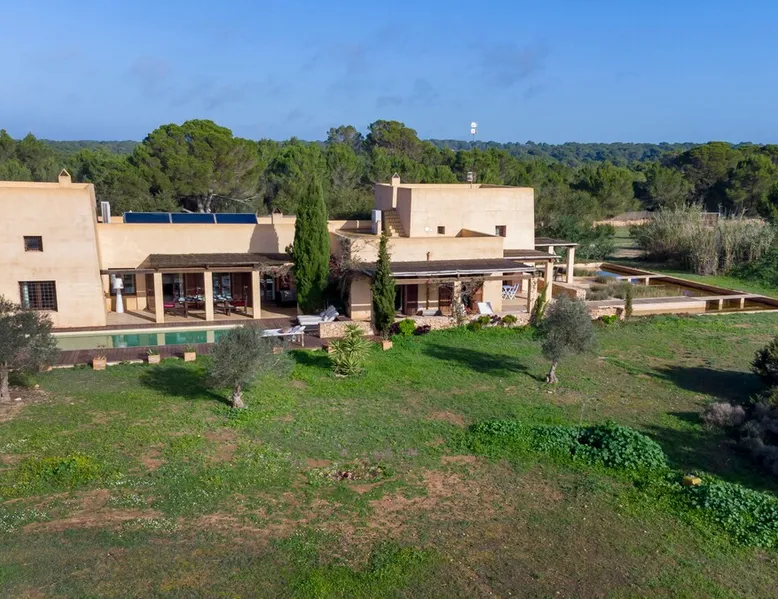 ET 6652 This beautiful villa of 300 m2 that extends majestically over 15,000 m2 of fenced land. Just 5 minutes from Cala Saona beach. With a capacity for 10 people, it has 5 double bedrooms and 4 bathrooms, three of them en suite, all with air conditioning and direct access to the outside. The heart is its spacious living room, which connects to the pool and garden. The kitchen, fully equipped. It has a pool, hammocks and Balinese beds, plus two large porches. Registration Details Spain - National registration number ESFCTU000007037000116038000000000000000000000ET/66525