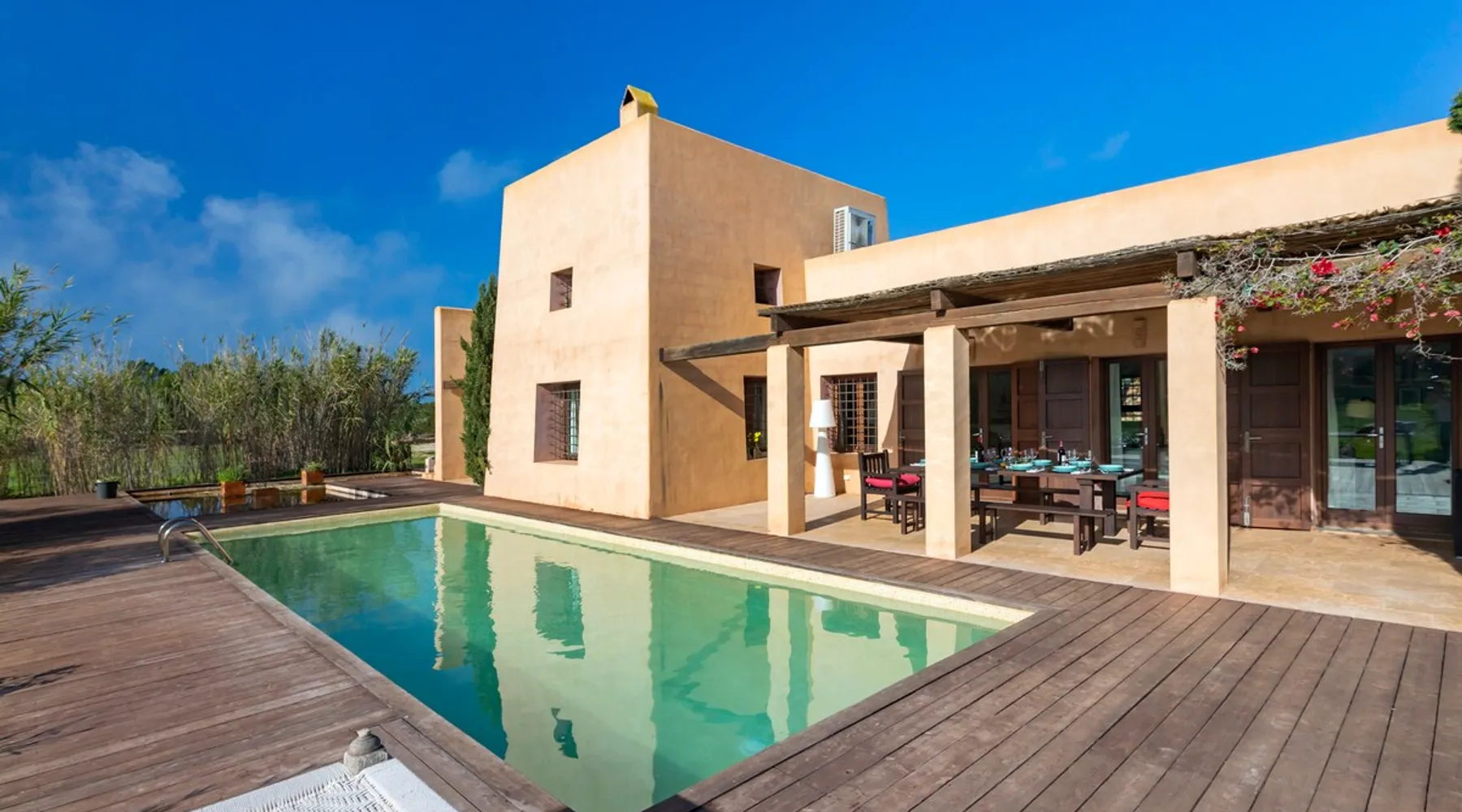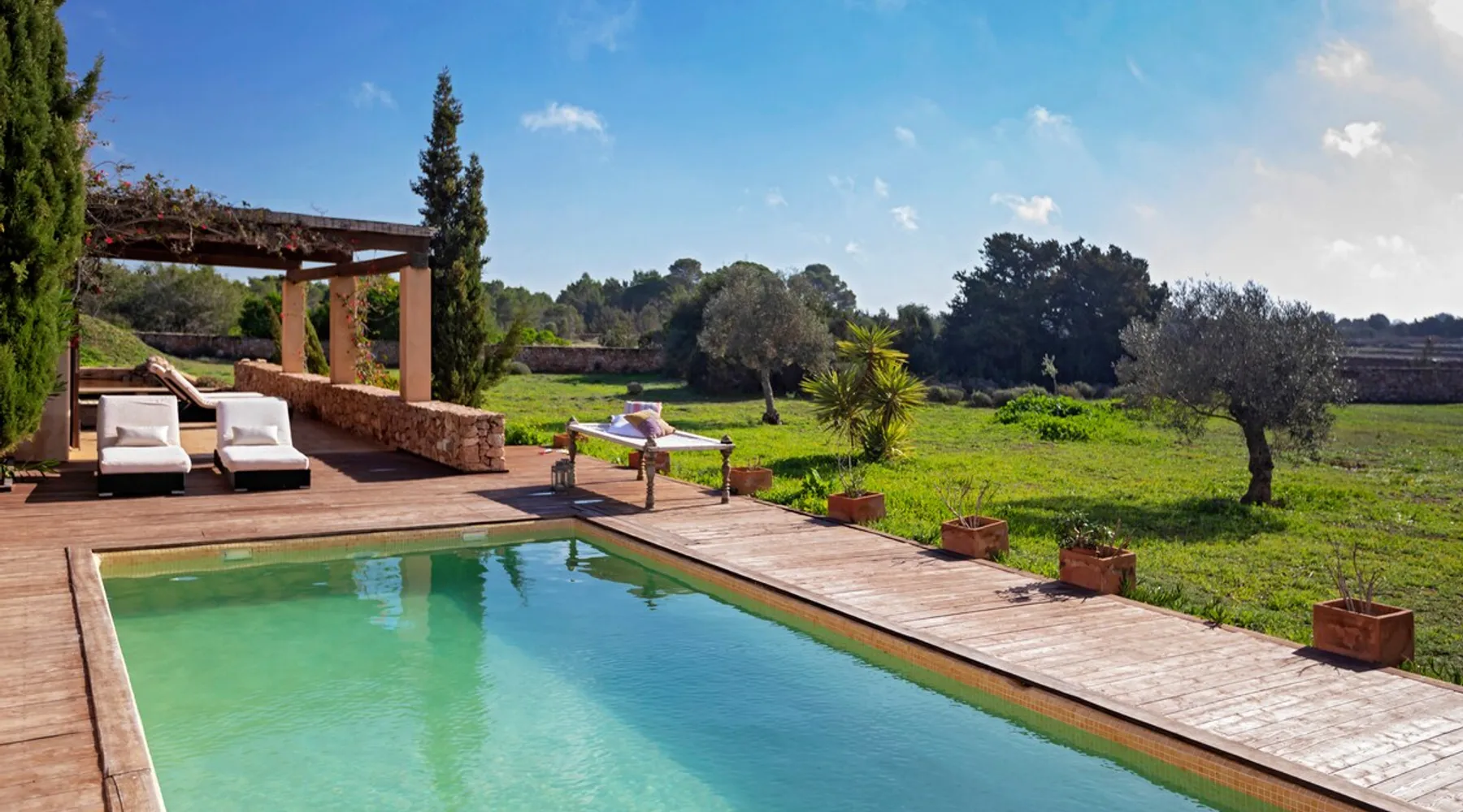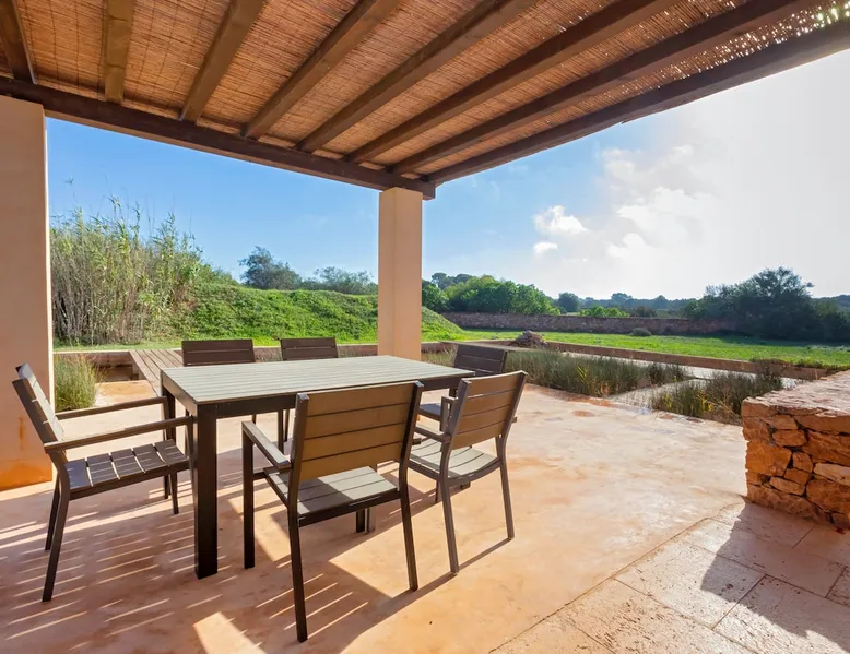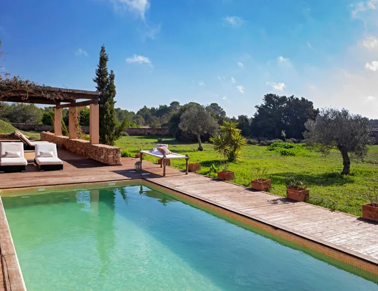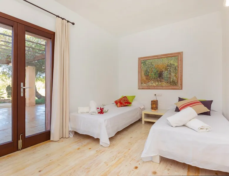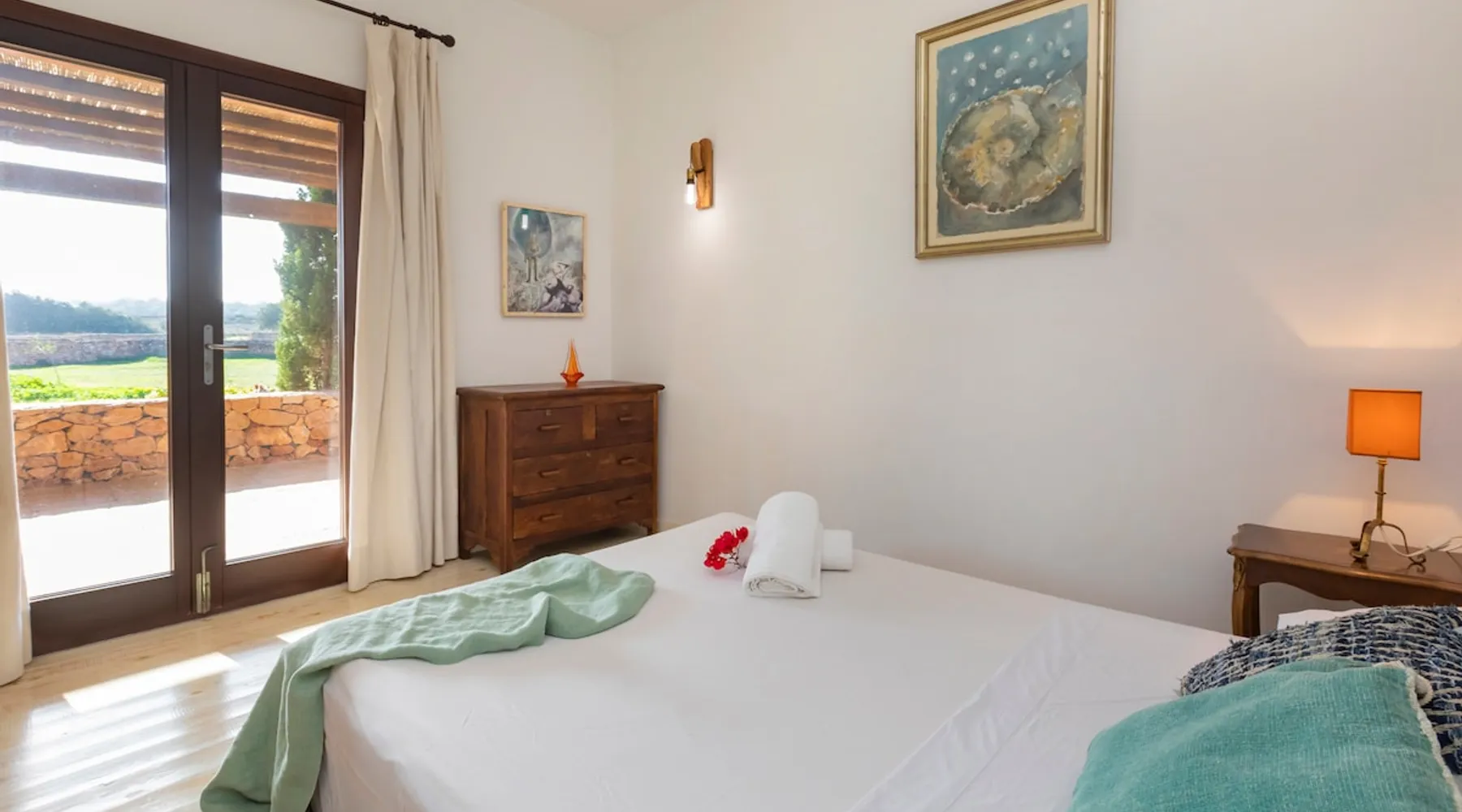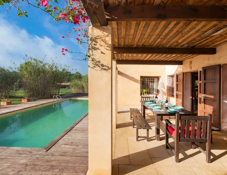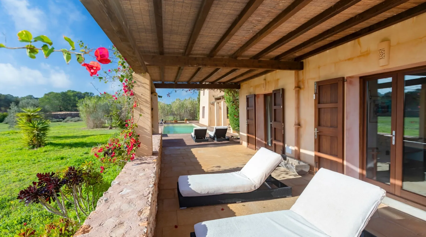 ET 6652 This beautiful villa of 300 m2 that extends majestically over 15,000 m2 of fenced land. Just 5 minutes from Cala Saona beach. With a capacity for 10 people, it has 5 double bedrooms and 4 bathrooms, three of them en suite, all with air conditioning and direct access to the outside. The heart is its spacious living room, which connects to the pool and garden. The kitchen, fully equipped. It has a pool, hammocks and Balinese beds, plus two large porches. Registration Details Spain - National registration number ESFCTU000007037000116038000000000000000000000ET/66525
