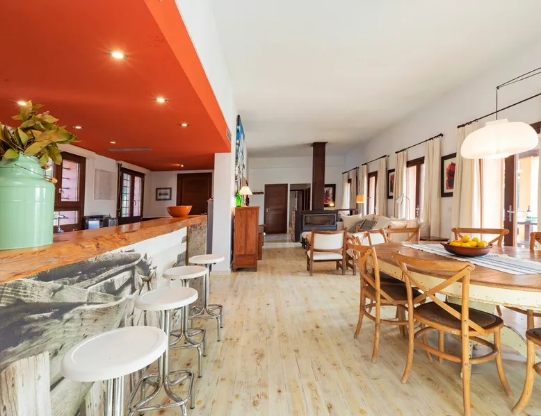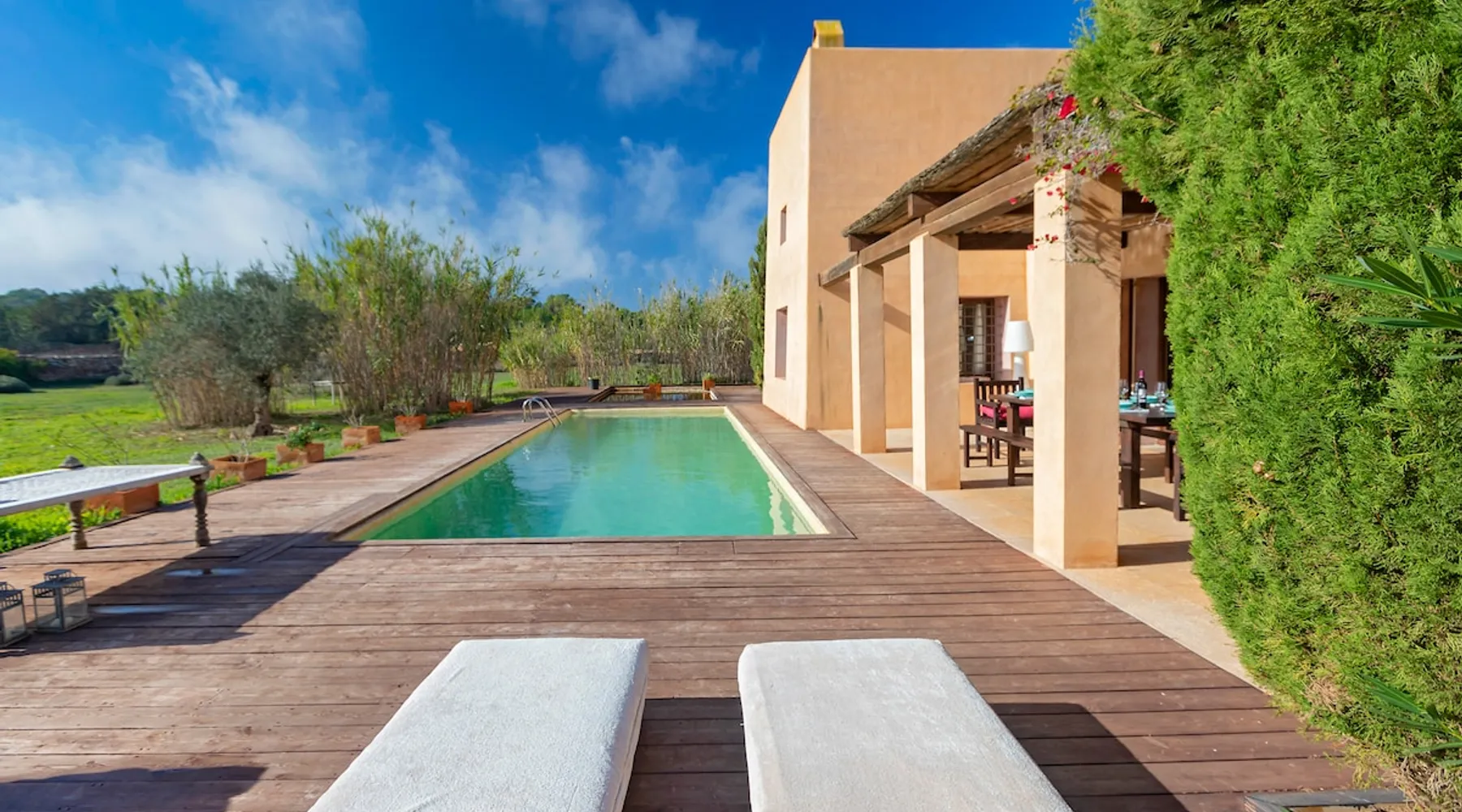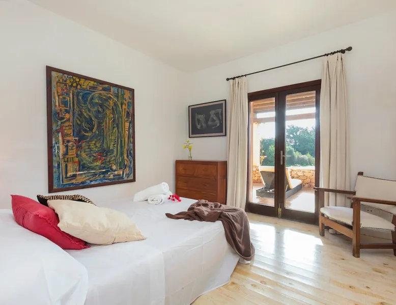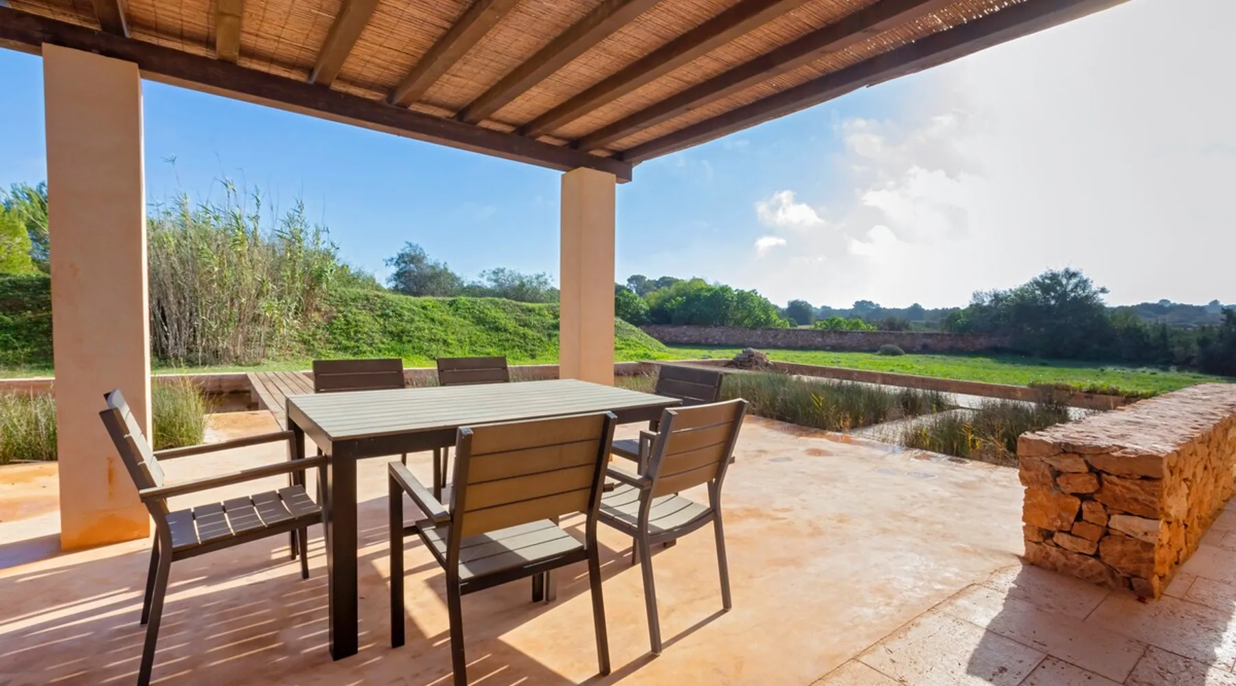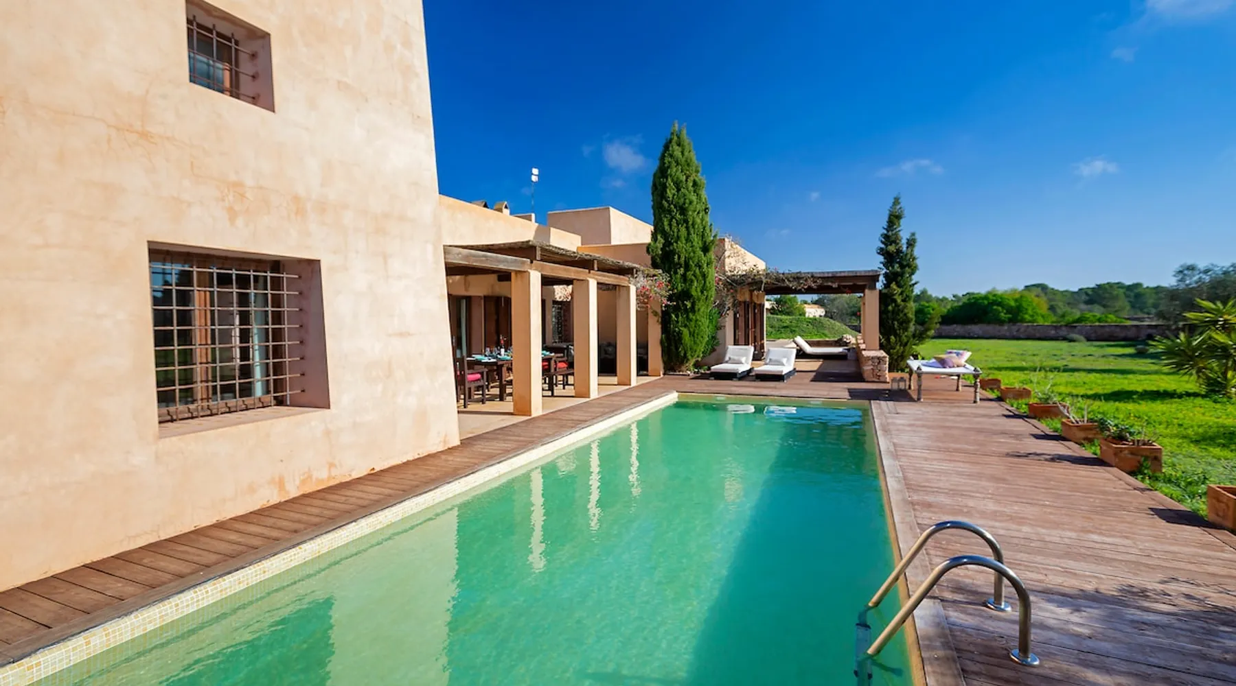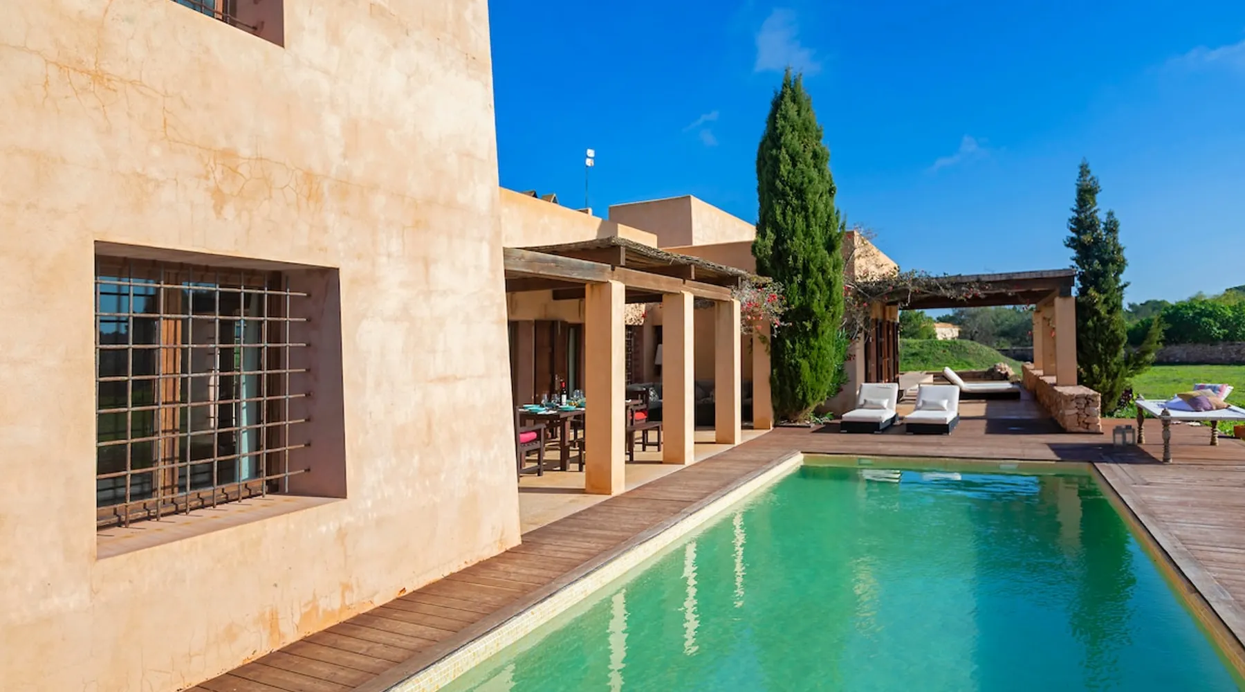 ET 6652 This beautiful villa of 300 m2 that extends majestically over 15,000 m2 of fenced land. Just 5 minutes from Cala Saona beach. With a capacity for 10 people, it has 5 double bedrooms and 4 bathrooms, three of them en suite, all with air conditioning and direct access to the outside. The heart is its spacious living room, which connects to the pool and garden. The kitchen, fully equipped. It has a pool, hammocks and Balinese beds, plus two large porches. Registration Details Spain - National registration number ESFCTU000007037000116038000000000000000000000ET/66525
