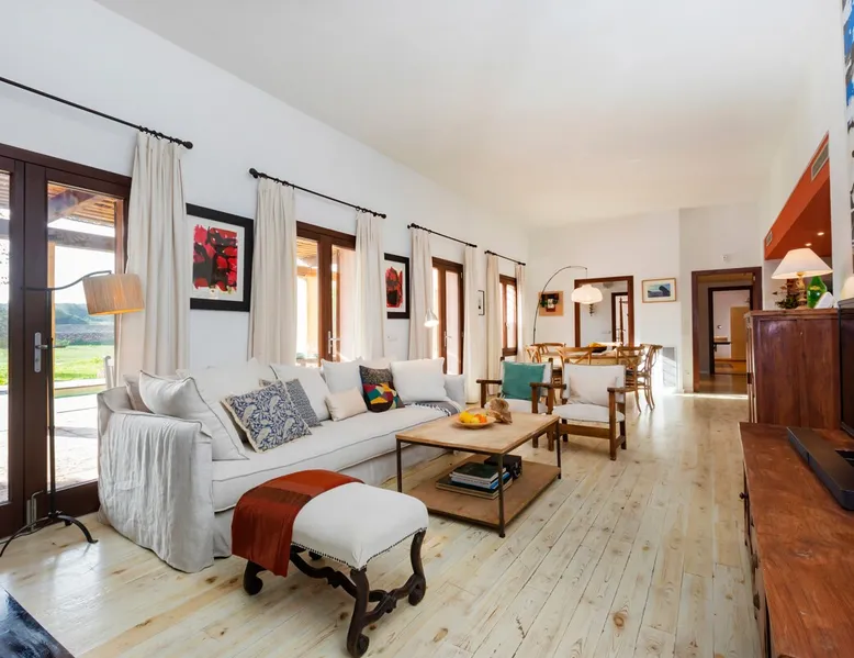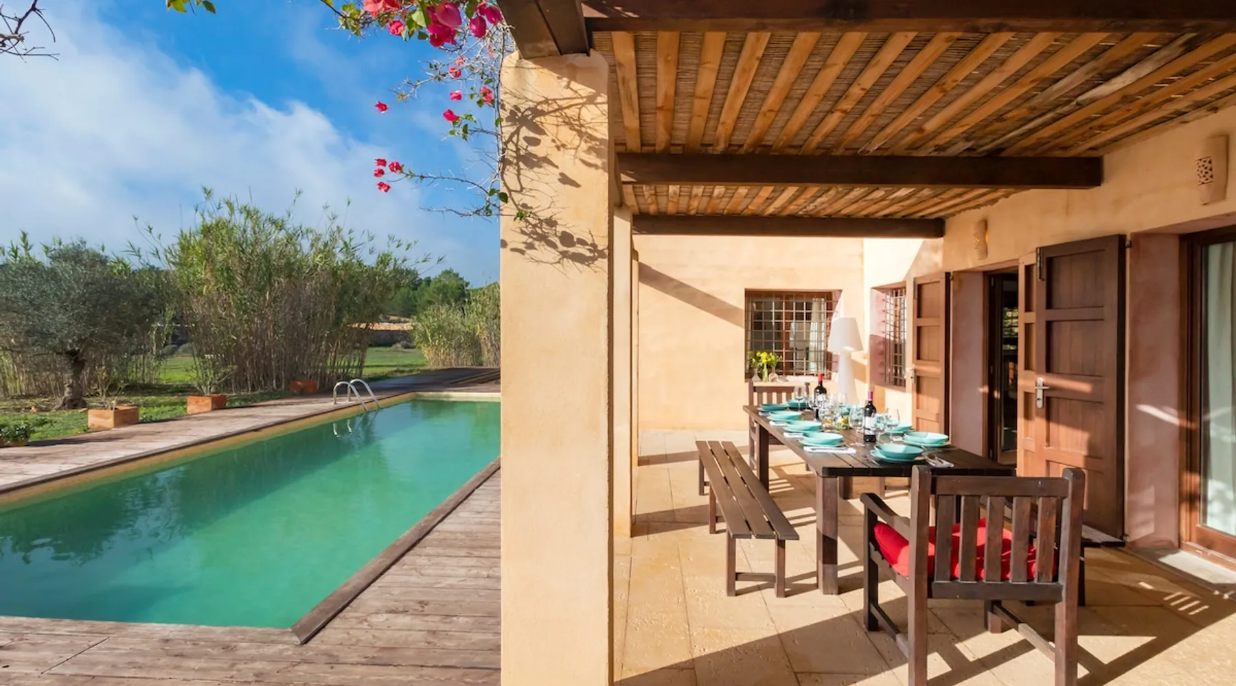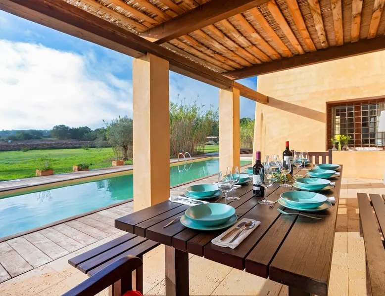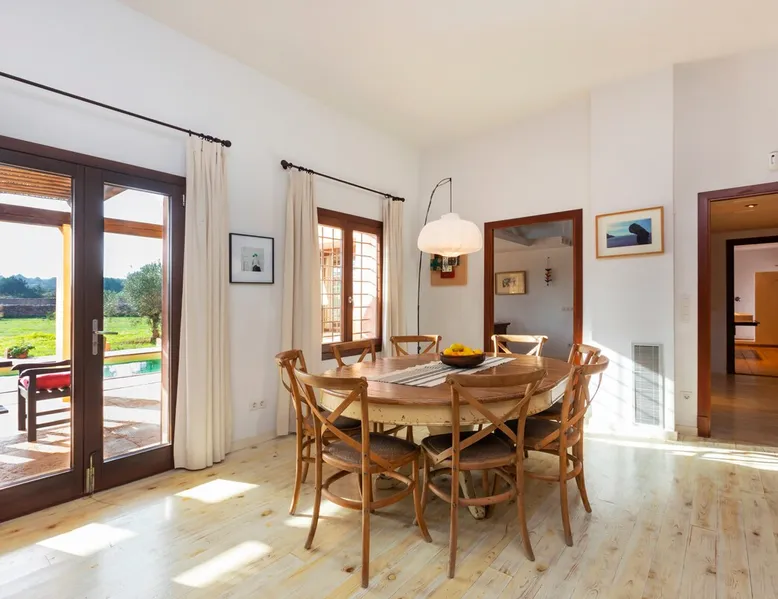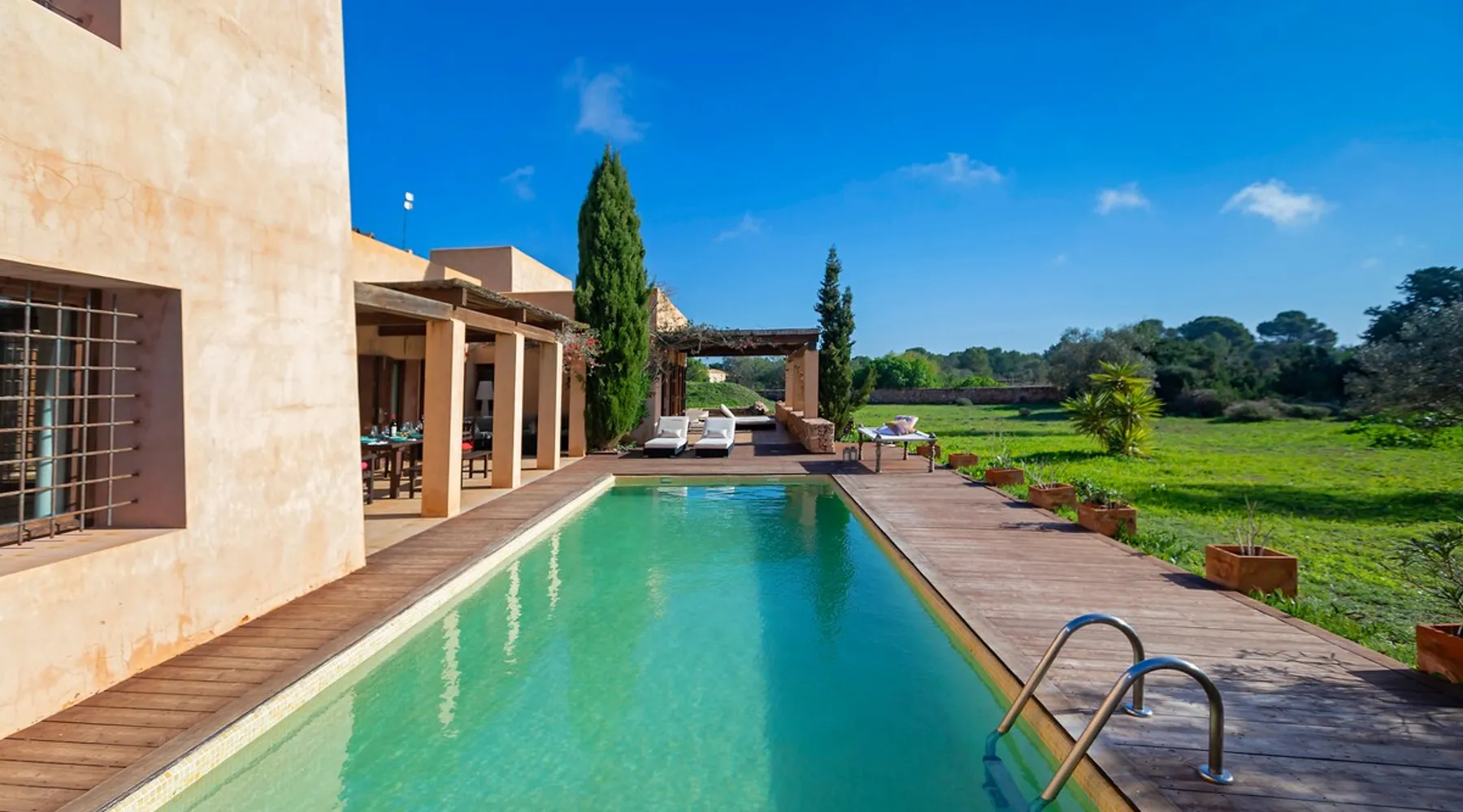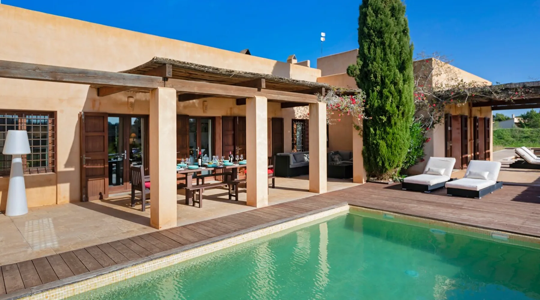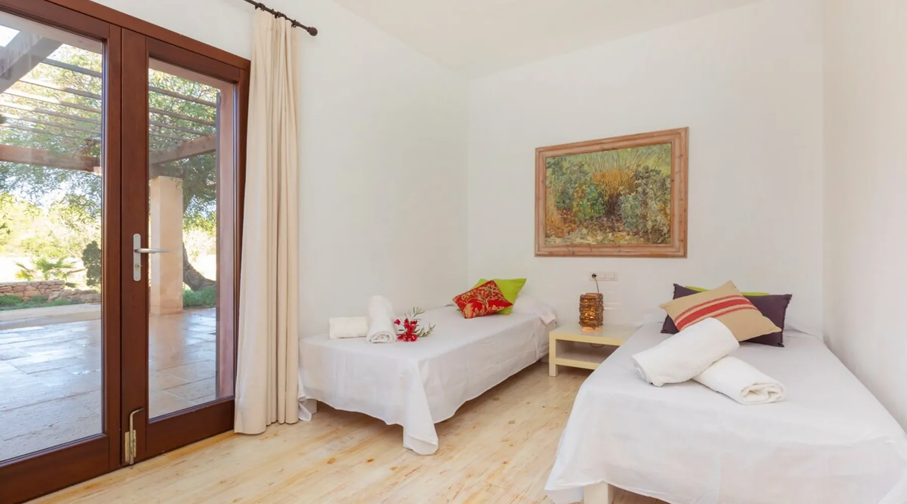 ET 6652 This beautiful villa of 300 m2 that extends majestically over 15,000 m2 of fenced land. Just 5 minutes from Cala Saona beach. With a capacity for 10 people, it has 5 double bedrooms and 4 bathrooms, three of them en suite, all with air conditioning and direct access to the outside. The heart is its spacious living room, which connects to the pool and garden. The kitchen, fully equipped. It has a pool, hammocks and Balinese beds, plus two large porches. Registration Details Spain - National registration number ESFCTU000007037000116038000000000000000000000ET/66525