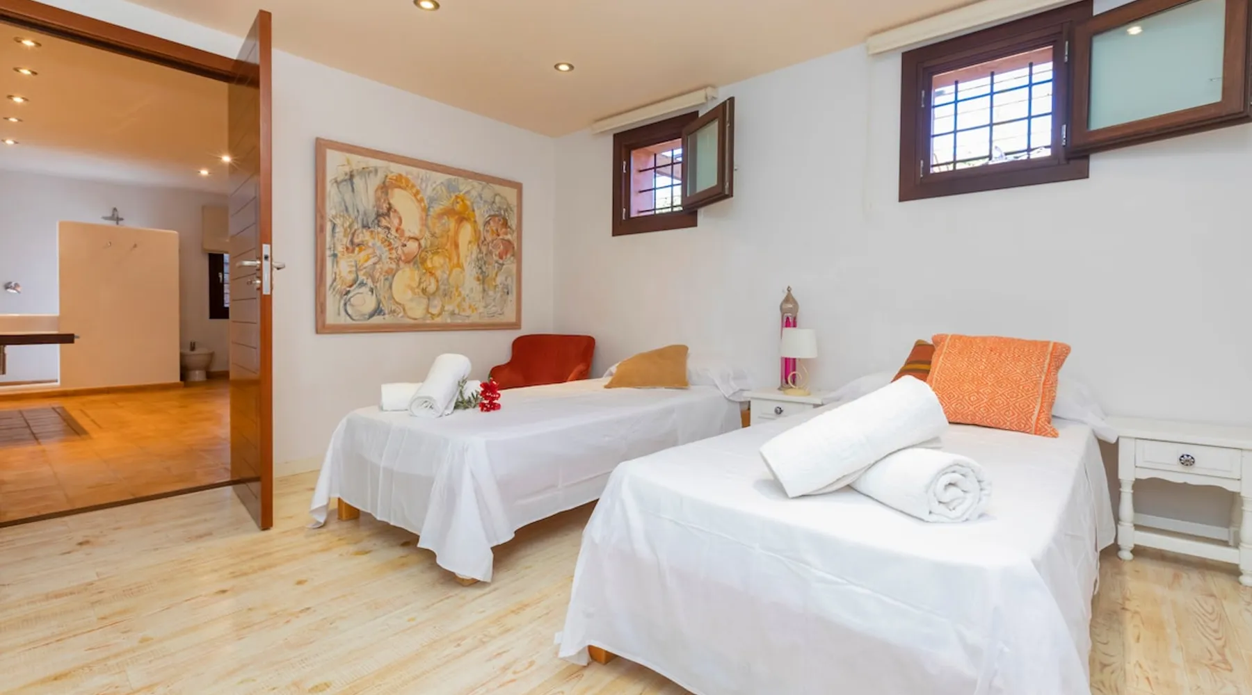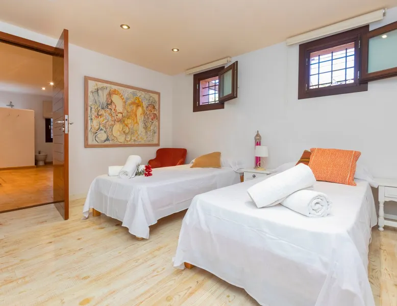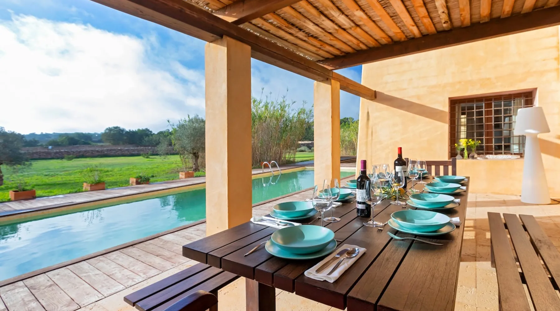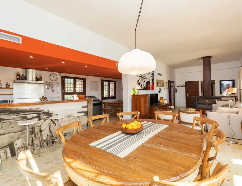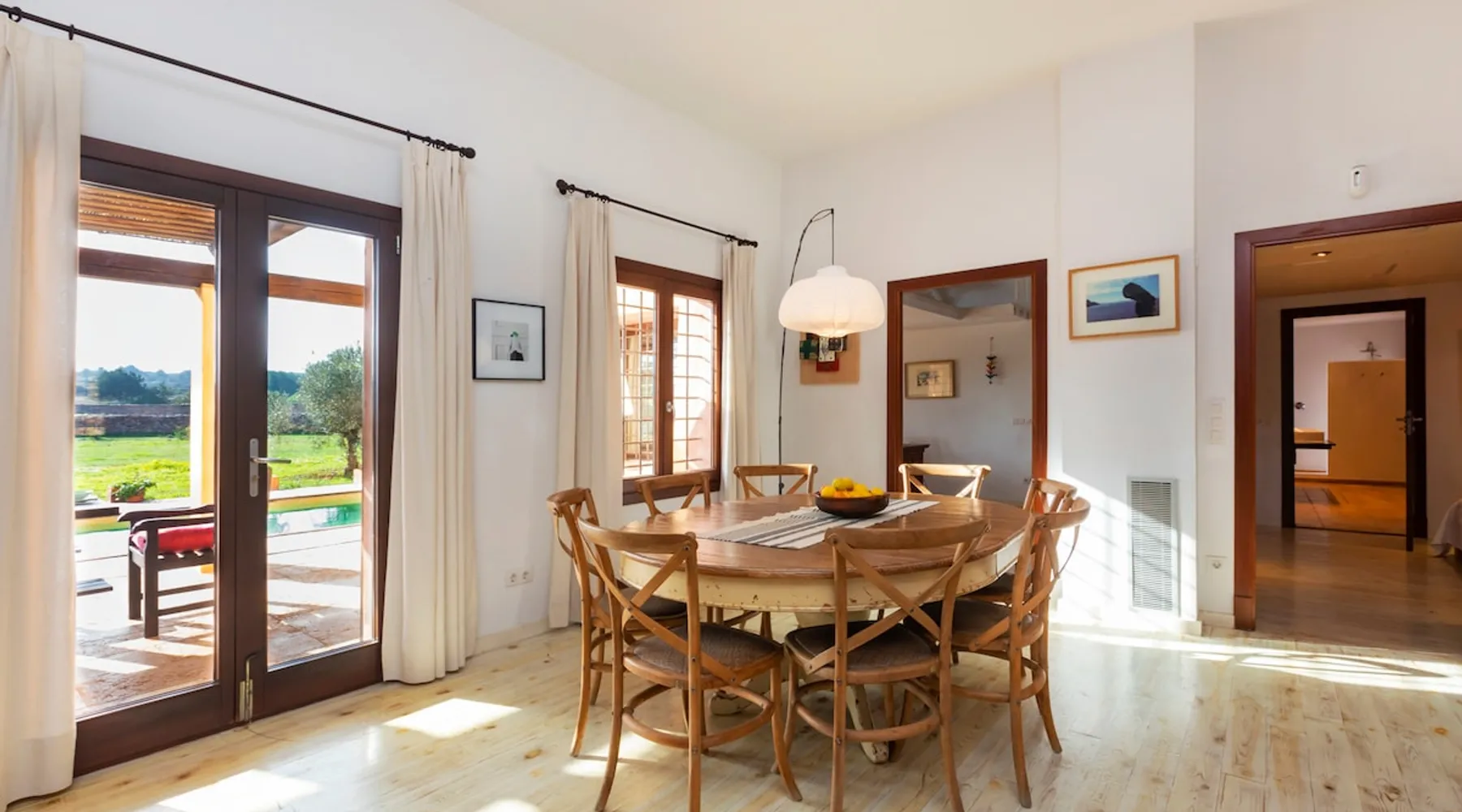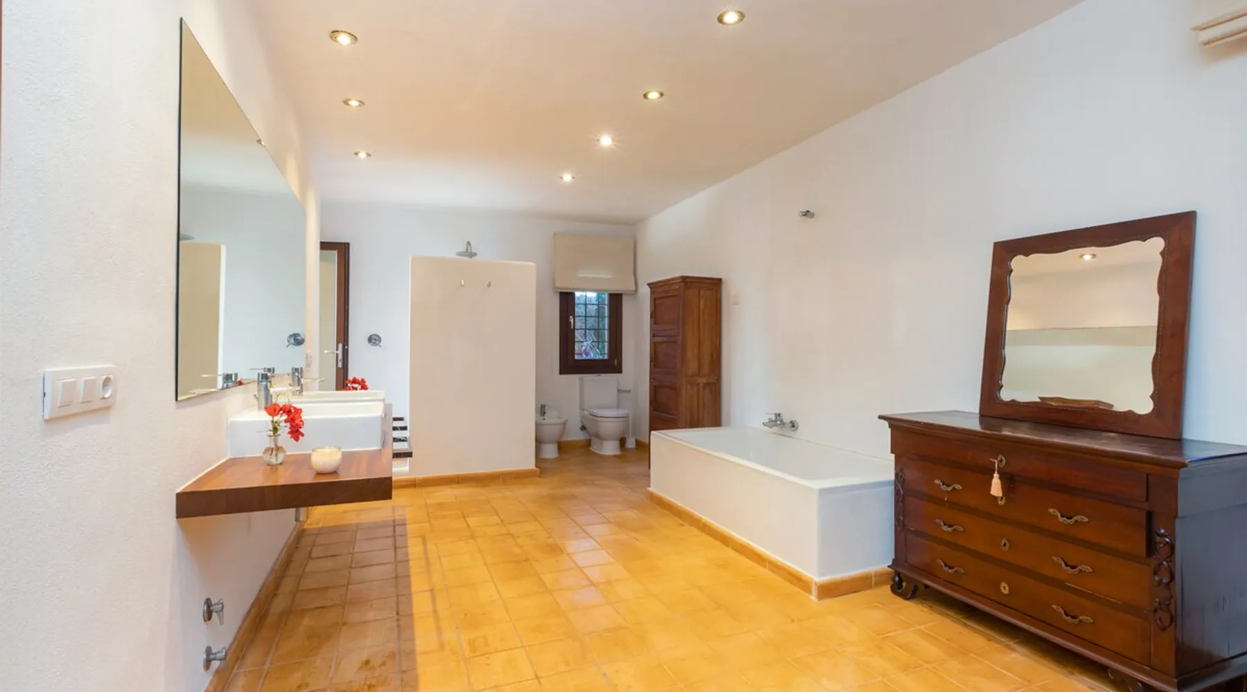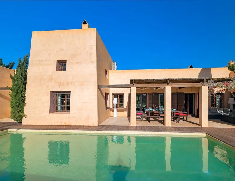 ET 6652 This beautiful villa of 300 m2 that extends majestically over 15,000 m2 of fenced land. Just 5 minutes from Cala Saona beach. With a capacity for 10 people, it has 5 double bedrooms and 4 bathrooms, three of them en suite, all with air conditioning and direct access to the outside. The heart is its spacious living room, which connects to the pool and garden. The kitchen, fully equipped. It has a pool, hammocks and Balinese beds, plus two large porches. Registration Details Spain - National registration number ESFCTU000007037000116038000000000000000000000ET/66525