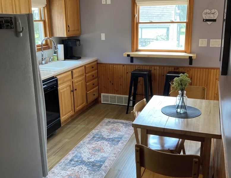 Welcome to Algoma, WI, a hidden gem nestled near the shores of Lake Michigan in the heart of the Midwest! Prepare to be enchanted by this cozy home, which offers the ultimate getaway experience. As you step onto the large wrap-around deck, you'll immediately feel a sense of tranquility and relaxation wash over you. Picture yourself sitting by the firepit, surrounded by the peaceful ambiance of Algoma, as you unwind after a day of thrilling adventures. Algoma truly has something for everyone. Nature enthusiasts will be delighted by the stunning local trails, perfect for hiking and exploring the picturesque landscapes. If you're seeking serenity, kayaking on the tranquil waters of Lake Michigan is an experience not to be missed. And for those who simply want to bask in the beauty of nature, there's nothing quite like witnessing a breathtaking sunrise on the beach. Now, let's talk about the amenities that await you in this charming home. Rest assured, all your essential needs will be met. From air conditioning to heating, we've got you covered no matter the season. The fully equipped kitchen is stocked with everything you need to prepare delicious meals, including cooking basics, dishes, silverware, and even a blender for those refreshing smoothies. And don't worry about packing too much, as we provide bed linens, extra pillows and blankets, and even hangers for your convenience. For entertainment, we have thoughtfully included a TV, WIFI, and a selection of books, board games to keep you entertained during your stay. Families with children will appreciate the children's books and dinnerware available, ensuring that everyone feels right at home. Your safety is our top priority, which is why we have installed carbon monoxide alarms, fire extinguishers, and smoke alarms throughout the property. Additionally, a first aid kit is readily available for any unforeseen circumstances. Now, let's talk about the neighborhood. You'll find that it is incredibly quiet, with friendly neighbors who are always ready to lend a helping hand. The lake is just a short 7-block walk away, and you can easily access it via the sidewalk. Families with children will be pleased to know that there are playgrounds nearby, providing endless fun for the little ones. Come and experience the magic of Algoma for yourself! With its cozy atmosphere, abundance of amenities, and the warm embrace of the community, this hidden gem is waiting to welcome you with open arms. Book your stay now and create memories that will last a lifetime.