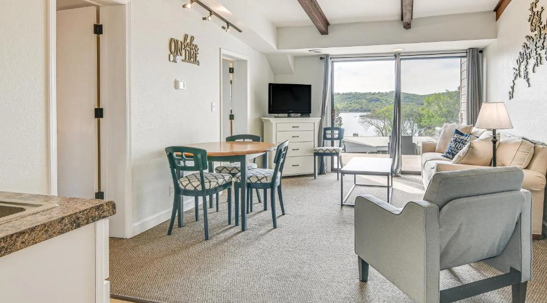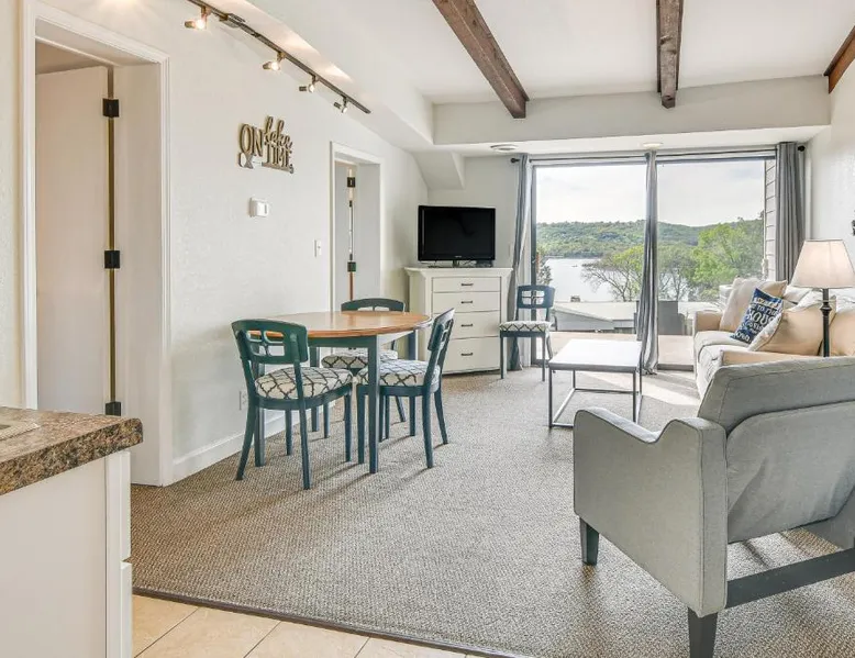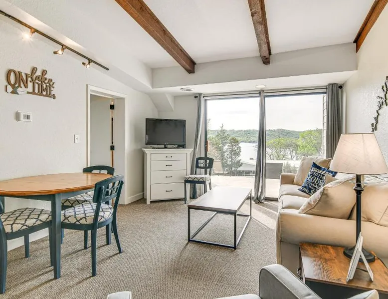 Spacious Accommodations: Kimberling City Condo with Lake Views and Pool Access offers a spacious apartment in Kimberling City. The property features two bedrooms, two bathrooms, and a comfortable living room. Modern Amenities: Guests enjoy free WiFi, air-conditioning, and an indoor swimming pool. The apartment includes a fully equipped kitchen with a coffee machine, refrigerator, microwave, dishwasher, and toaster. Additional amenities include a patio, dining table, and TV. Convenient Location: Located 11 mi from Silver Dollar City and 14 mi from Mickey Gilley Theater, the property provides easy access to local attractions. Table Rock State Park is 18 mi away, while Branson Landing is 19 mi from the apartment. This spacious apartment comes with 1 living room, 2 separate bedrooms and 2 bathrooms with a bath and free toiletries. In the well-fitted kitchen, guests will find a refrigerator, a dishwasher, kitchenware and a microwave. Boasting a patio, this apartment also features air conditioning, a private entrance and a TV. The unit has 5 beds.