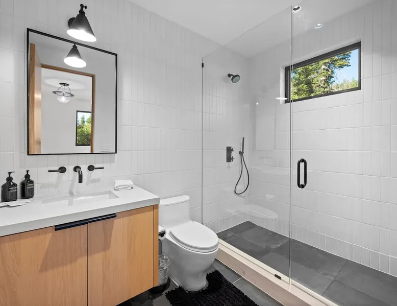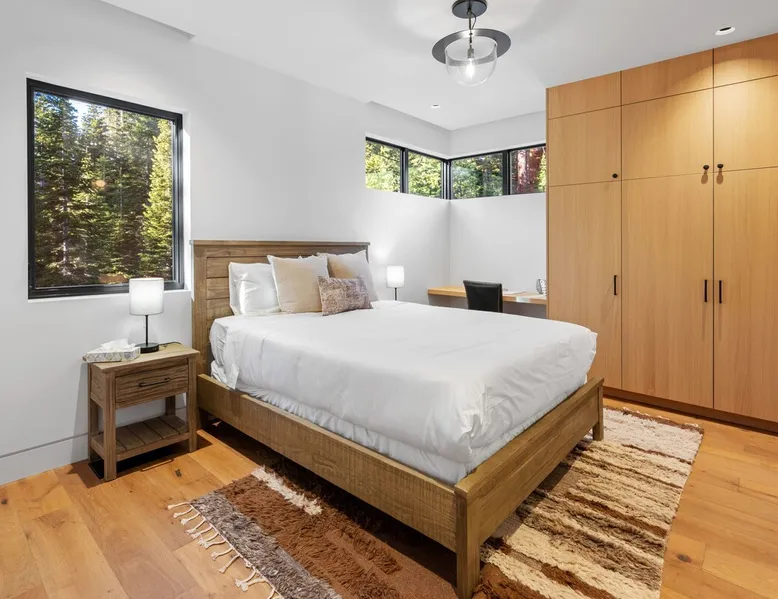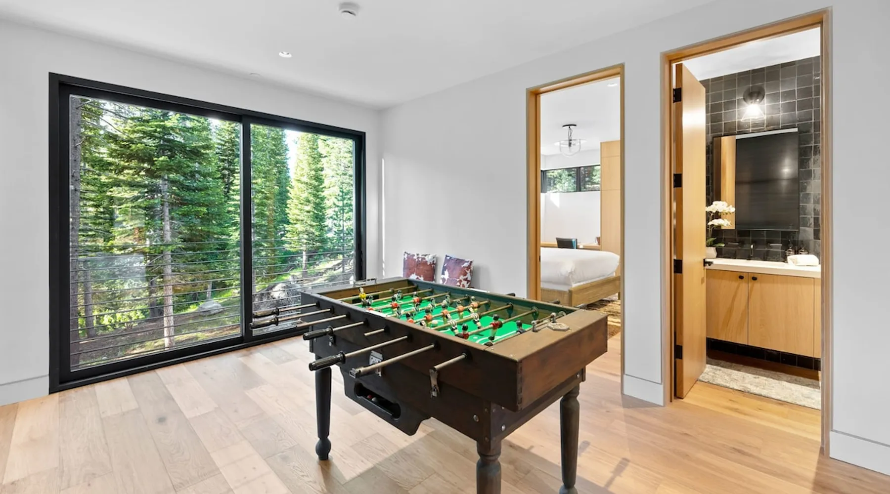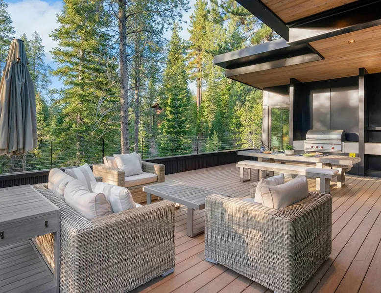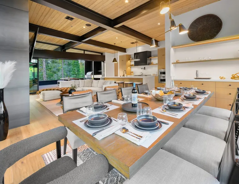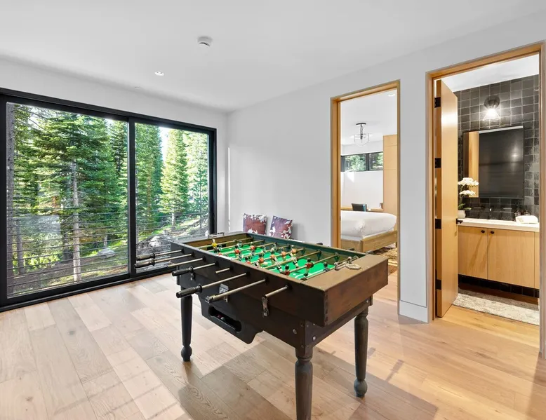 Unearth one of the finest Olympic Valley vacation rentals in the area with this private retreat. The cul-de-sac home’s modernity acts as a haven between rugged mountain excursions, a day on the slopes, or fun on the lake. Enjoy peaceful woodland magic and the beautiful sounds of Squaw Creek on the 2 decks. The air seems crisper, the sky appears bluer - it’s the ideal place for uninterrupted relaxation. Best of all, there's an 8-person hot tub on-site and Wolf appliances in the kitchen. The space Location perks: A tranquil creek runs along the back of the home, 4-minute drive to Palisades Tahoe (1.9 miles), 7-minute drive to Alpine Meadows (4 miles), 6-minute drive to Truckee Bike Path (3.8 miles), 9-minute drive to Tahoe City (5.6 miles), 10-minute drive to Commons Beach (5.8 miles), 14-minute drive to Truckee (9.8 miles) Exterior: - 1,000 sq ft of outdoor living space - Bose outdoor speakers on both floors - Creek and forest views - 2 decks (available from May to September) - Parking for up to 8 cars Community: - Bocce ball court - Plump track - Picnic area This newly built home will impress you inside and out! It's close to everything, yet set in complete privacy amongst mature pines and spruce trees. Enjoy thoughtful landscaping blended in a manner that showcases the natural environment. Here, you get the best of both worlds. The gorgeous home is filled with beautiful decor, brand-new appliances, comfortable furnishings, and 5 bedrooms - each with an en-suite bathroom! Enter the home via the garage, where you will find an impressive mud/laundry room with built-in lockers, perfect for storing all your outdoor gear. The lower level features its own living space with a gas fireplace, a 65” TV, a wet bar, a foosball table, seating for 10, and access to the lower deck. STR Permit Number: STR24-8933 Max Occupancy: 12 Parking Info: Parking is available for a total of 8 vehicles, 3 in the garage and 5 in the driveway. Guest access Guests will have access to the entire home and parking for up to 8 vehicles with 3 parking spots in the garage and 5 in the driveway. Guests will also have access to the HOA bocce ball court. Other things to note Please keep in mind that if you plan to ski, you are responsible for verifying the ski resorts' opening and closing dates. Charcoal grills are strictly forbidden in this county and will result in a $1,500 citation if used. 4-wheel drive or 2-wheel drive tires with snow chains may be necessary for safe travel to this property, even if it hasn’t snowed in a few days. If you're interested in luxury add-on services like airport transfers, a private chef, bartender, grocery pre-stocking, or a mid-stay clean, please contact Local VR for details on availability and additional fees. Registration Details STR24-8933