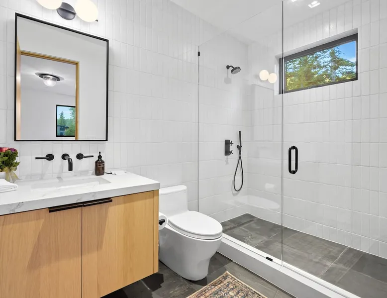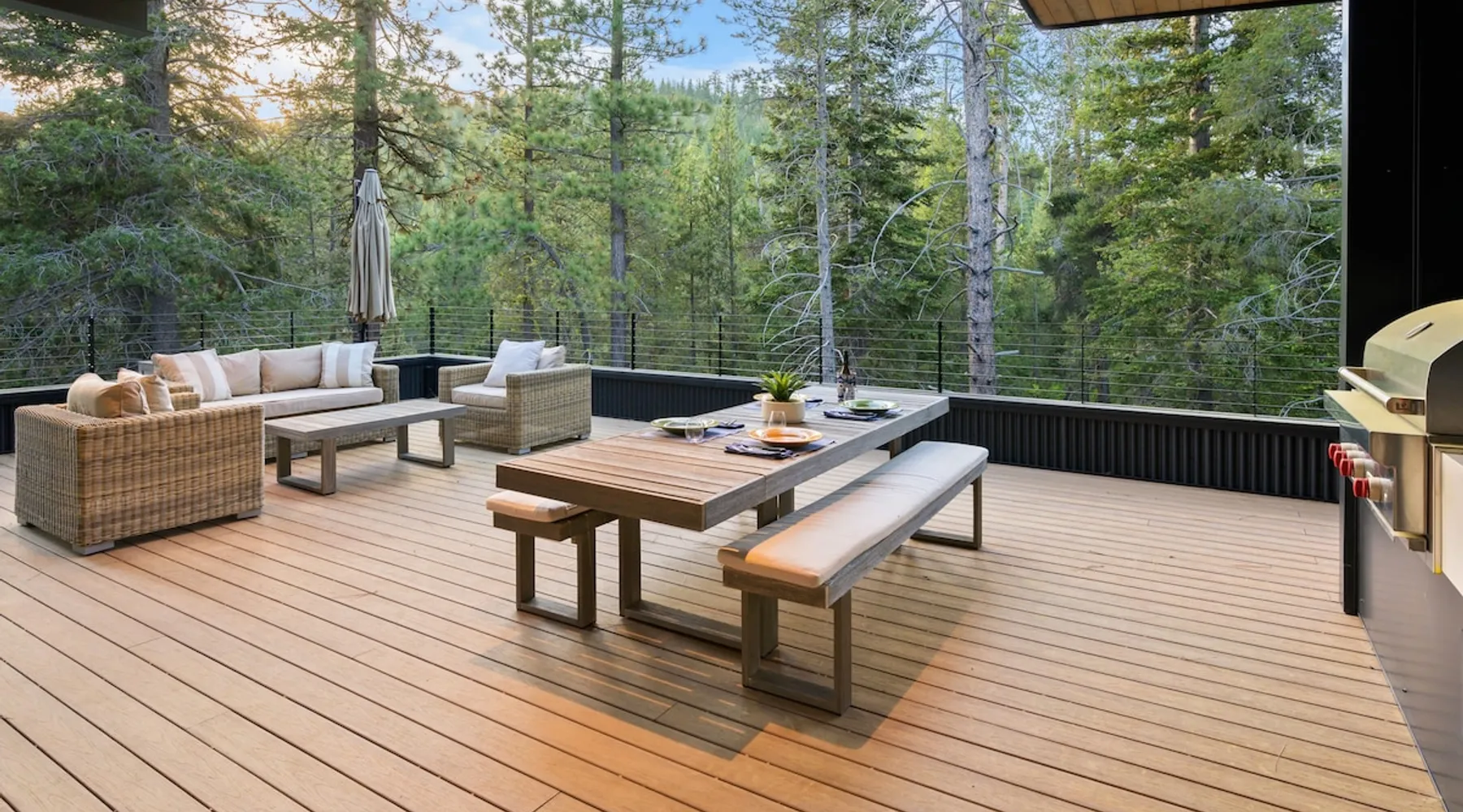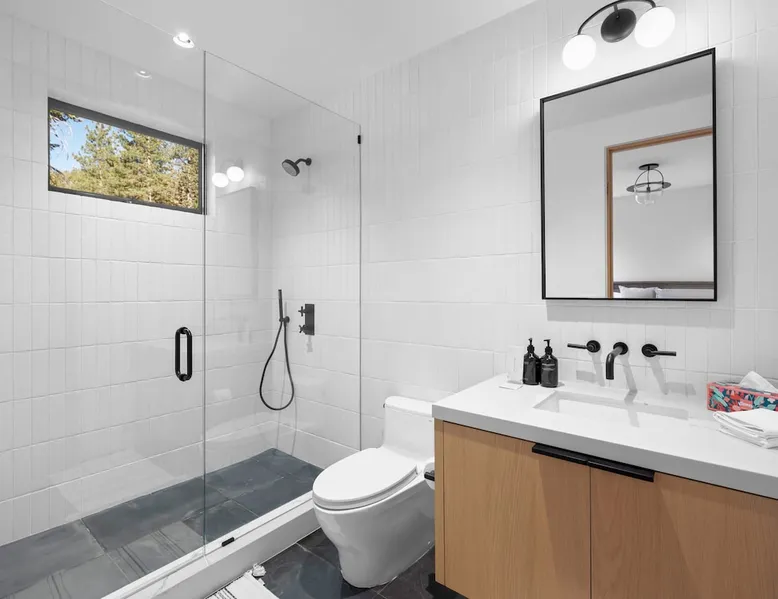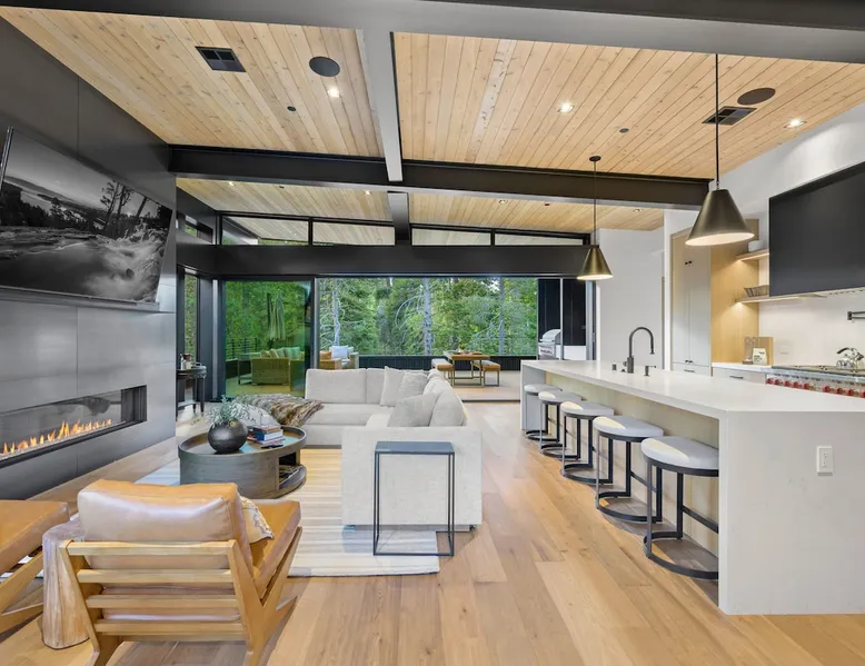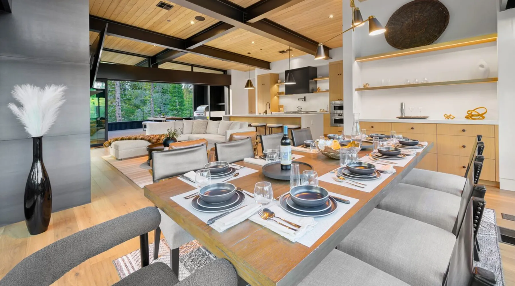 Unearth one of the finest Olympic Valley vacation rentals in the area with this private retreat. The cul-de-sac home’s modernity acts as a haven between rugged mountain excursions, a day on the slopes, or fun on the lake. Enjoy peaceful woodland magic and the beautiful sounds of Squaw Creek on the 2 decks. The air seems crisper, the sky appears bluer - it’s the ideal place for uninterrupted relaxation. Best of all, there's an 8-person hot tub on-site and Wolf appliances in the kitchen. The space Location perks: A tranquil creek runs along the back of the home, 4-minute drive to Palisades Tahoe (1.9 miles), 7-minute drive to Alpine Meadows (4 miles), 6-minute drive to Truckee Bike Path (3.8 miles), 9-minute drive to Tahoe City (5.6 miles), 10-minute drive to Commons Beach (5.8 miles), 14-minute drive to Truckee (9.8 miles) Exterior: - 1,000 sq ft of outdoor living space - Bose outdoor speakers on both floors - Creek and forest views - 2 decks (available from May to September) - Parking for up to 8 cars Community: - Bocce ball court - Plump track - Picnic area This newly built home will impress you inside and out! It's close to everything, yet set in complete privacy amongst mature pines and spruce trees. Enjoy thoughtful landscaping blended in a manner that showcases the natural environment. Here, you get the best of both worlds. The gorgeous home is filled with beautiful decor, brand-new appliances, comfortable furnishings, and 5 bedrooms - each with an en-suite bathroom! Enter the home via the garage, where you will find an impressive mud/laundry room with built-in lockers, perfect for storing all your outdoor gear. The lower level features its own living space with a gas fireplace, a 65” TV, a wet bar, a foosball table, seating for 10, and access to the lower deck. STR Permit Number: STR24-8933 Max Occupancy: 12 Parking Info: Parking is available for a total of 8 vehicles, 3 in the garage and 5 in the driveway. Guest access Guests will have access to the entire home and parking for up to 8 vehicles with 3 parking spots in the garage and 5 in the driveway. Guests will also have access to the HOA bocce ball court. Other things to note Please keep in mind that if you plan to ski, you are responsible for verifying the ski resorts' opening and closing dates. Charcoal grills are strictly forbidden in this county and will result in a $1,500 citation if used. 4-wheel drive or 2-wheel drive tires with snow chains may be necessary for safe travel to this property, even if it hasn’t snowed in a few days. If you're interested in luxury add-on services like airport transfers, a private chef, bartender, grocery pre-stocking, or a mid-stay clean, please contact Local VR for details on availability and additional fees. Registration Details STR24-8933