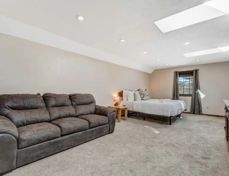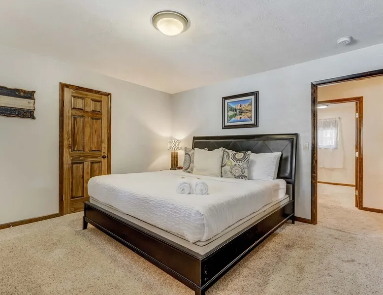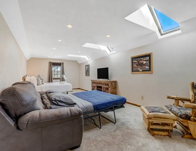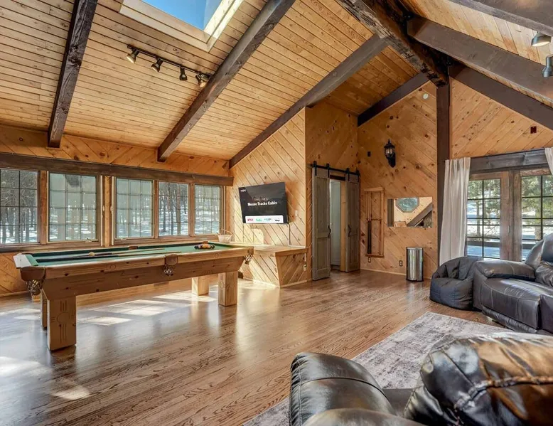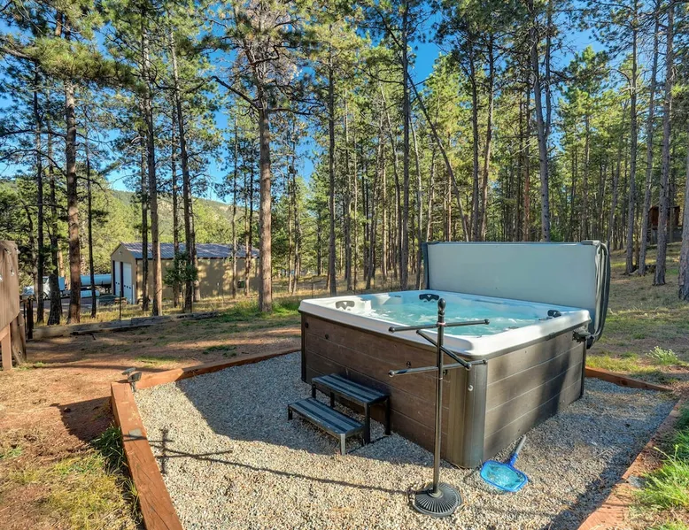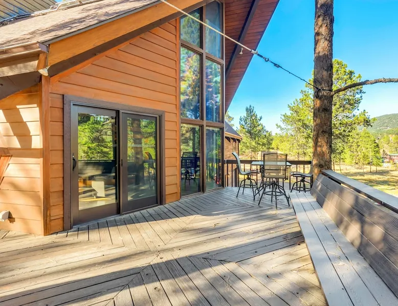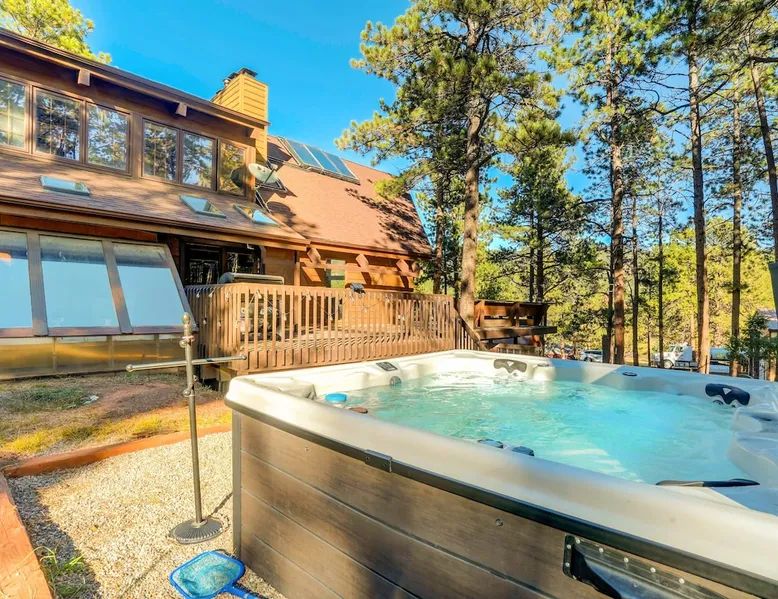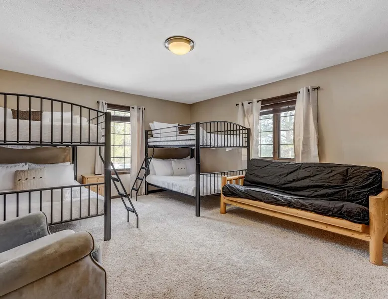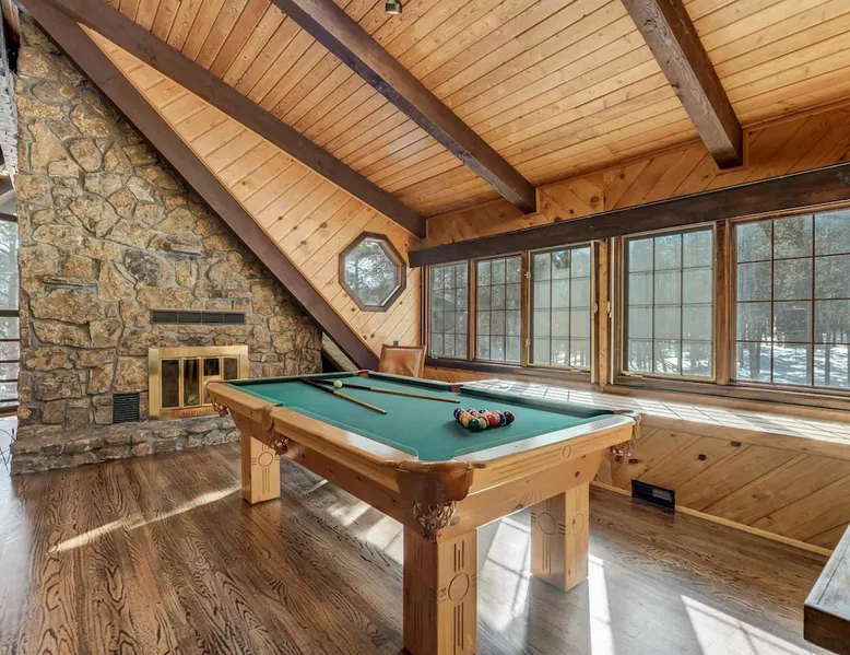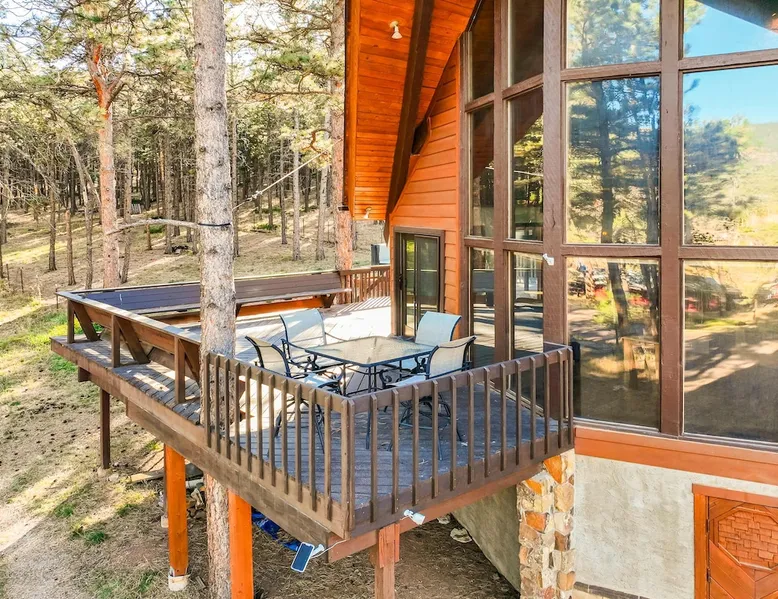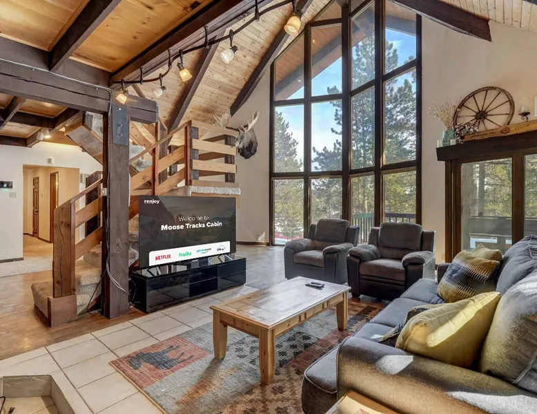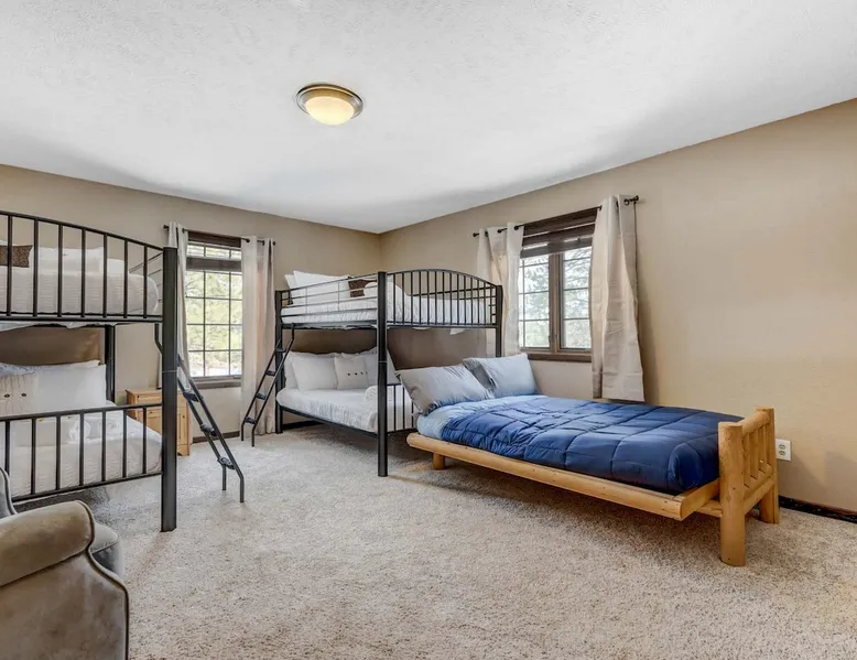 Welcome to Moose Tracks Cabin! Situated among towering pine trees, offering breathtaking mountain views, perfect for large families, groups of friends. 🏡 Top-rated vacation rental in Woodland Park, Colorado! 🛁 Hot tub, BBQ, fire pit, Pool table outdoor seating w/ mountain views! 🐾 Pet-friendly – furry friends welcome! 🌐 Fast WiFi w/ dedicated workspace & Smart TVs! 🏋 Multi-station gym equipment, row machine, & kettlebells! 🍽️ Fully-stocked kitchen! Book your ultimate cabin getaway now! The space Welcome to our serene retreat nestled amidst the Ponderosa Pines – a perfect blend of classic comfort and contemporary luxury, sprawled across 3.21 acres. Ideally situated near town and major thoroughfares, this estate features an expansive garage and artisanal wood shop. A recent addition effortlessly integrates modern aesthetics with the natural landscape. 🔥 Inviting Living Space: Cocoon yourself by the grand fireplace in our capacious living room, enveloping you in warmth and opulence during chilly evenings. 🍳 Gourmet Kitchen: Discover culinary delights in our kitchen boasting exquisite granite countertops, ample storage, state-of-the-art appliances tailored for culinary excellence, and a convenient adjacent study nook. 🌳 Al Fresco Experience: Step onto the sprawling deck adjoining the kitchen, ideal for al fresco dining and soirées, overlooking the expansive fenced backyard. Indulge in the luxurious outdoor hot tub for a relaxing experience. 🧖 Sauna Retreat: Retreat to the sauna room after a day of outdoor adventures, offering a sanctuary for unwinding and rejuvenation. 🛏️ Bedroom Setup: Bedroom 1: Queen bed Bedroom 2: 2 bunk beds, 1 sofa bed Bedroom 3: Double bed Bedroom 4: Queen bed Bedroom 5: King bed, 1 sofa bed 🎱 Upstairs Escape: Ascend to the upper level, a chic haven perfect for leisure and entertainment. Enjoy a game of billiards, indulge in entertainment with a Smart TV, and relish ample space for relaxation. The lavishly renovated bathroom adds a touch of sophistication to your stay. 🏋️ The Basement: Head downstairs to our private fitness center, fully equipped with multiple exercise machines, a rowing machine, a treadmill, and kettlebells, ensuring you have all you need for a solid fitness routine. Experience our thoughtfully designed retreat at [Property Name]. We've meticulously planned every detail to ensure you have a comfortable and enjoyable stay, perfectly combining luxury living with the peacefulness of nature. Guest access 🔑 During your stay, you will have complete access to the entire property, including all its amenities and facilities. This covers bedrooms, living spaces, the kitchen, backyard, and everything else the house has to offer. You are welcome to make use of everything available to ensure a comfortable and enjoyable experience. Please feel free to let us know if there's anything specific you'd like to know about the property or if you have any special requests during your stay. We want to ensure that you have a wonderful time while you're here. Other things to note 📜 Rental Agreement: For a seamless booking experience, a Rental Agreement is required for all reservations. Once your reservation is confirmed, we’ll provide details for completing the agreement. 🔑 Check-In Process: For a seamless check-in experience, your unique code along with your check-in instructions will be updated into your personalized guidebook on the morning of your arrival. You’ll use this code for entry. ☕ Starter Supply: We’ve prepared a starter supply that includes paper towels, coffee K-cups, toilet paper, shampoo, body wash, and plush white towels! We hope these amenities add an extra touch of comfort to your stay. ⏰ Unauthorized Late Checkout Fee: $20 Per Half Hour Late 💵 Additional Fees: For guests bringing dogs, there is a mandatory pet fee of $100 per dog, collected after booking. A maximum of 2 dogs is allowed per reservation unless otherwise approved. No other animals are permitted. Optional services, including early check-in, late check-out, and additional guests, can be arranged upon request and are subject to availability. These additional fees help cover the cost of reworking the schedule or adding an additional cleaner if needed. Please message us ahead of time for pricing and availability.