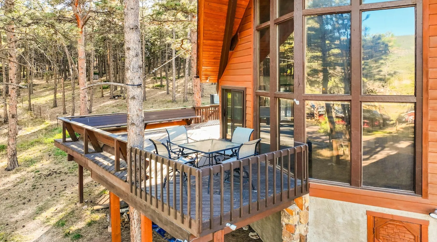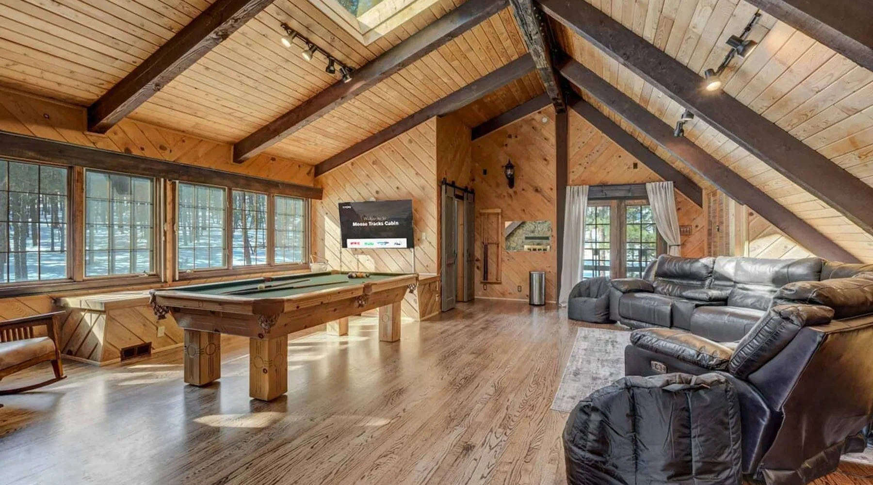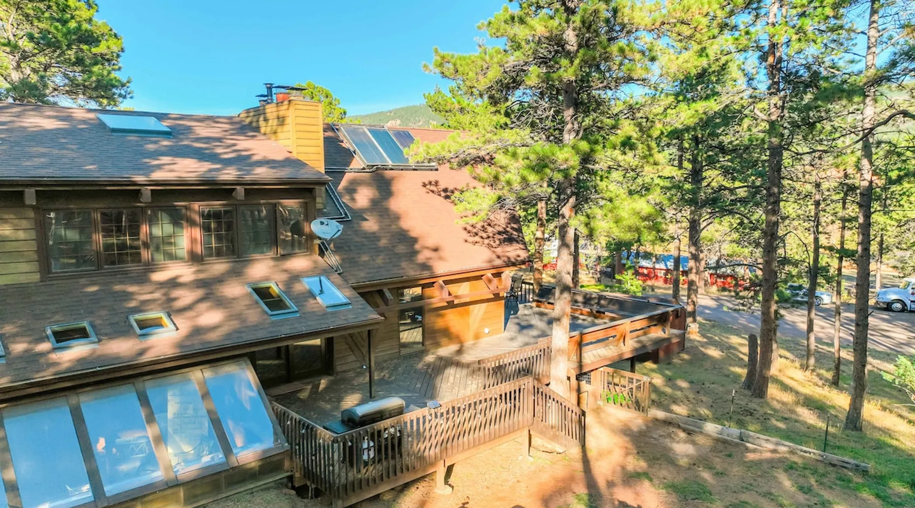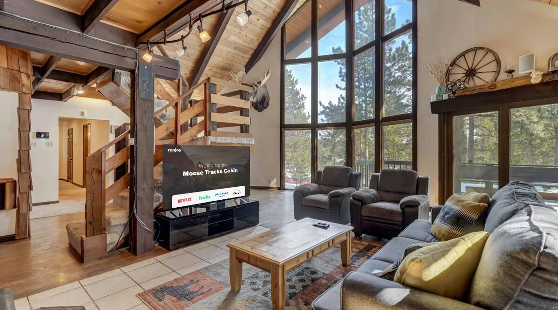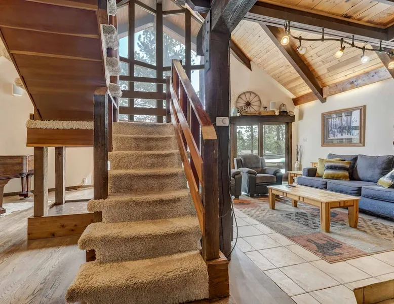 Welcome to Moose Tracks Cabin! Situated among towering pine trees, offering breathtaking mountain views, perfect for large families, groups of friends. 🏡 Top-rated vacation rental in Woodland Park, Colorado! 🛁 Hot tub, BBQ, fire pit, Pool table outdoor seating w/ mountain views! 🐾 Pet-friendly – furry friends welcome! 🌐 Fast WiFi w/ dedicated workspace & Smart TVs! 🏋 Multi-station gym equipment, row machine, & kettlebells! 🍽️ Fully-stocked kitchen! Book your ultimate cabin getaway now! The space Welcome to our serene retreat nestled amidst the Ponderosa Pines – a perfect blend of classic comfort and contemporary luxury, sprawled across 3.21 acres. Ideally situated near town and major thoroughfares, this estate features an expansive garage and artisanal wood shop. A recent addition effortlessly integrates modern aesthetics with the natural landscape. 🔥 Inviting Living Space: Cocoon yourself by the grand fireplace in our capacious living room, enveloping you in warmth and opulence during chilly evenings. 🍳 Gourmet Kitchen: Discover culinary delights in our kitchen boasting exquisite granite countertops, ample storage, state-of-the-art appliances tailored for culinary excellence, and a convenient adjacent study nook. 🌳 Al Fresco Experience: Step onto the sprawling deck adjoining the kitchen, ideal for al fresco dining and soirées, overlooking the expansive fenced backyard. Indulge in the luxurious outdoor hot tub for a relaxing experience. 🧖 Sauna Retreat: Retreat to the sauna room after a day of outdoor adventures, offering a sanctuary for unwinding and rejuvenation. 🛏️ Bedroom Setup: Bedroom 1: Queen bed Bedroom 2: 2 bunk beds, 1 sofa bed Bedroom 3: Double bed Bedroom 4: Queen bed Bedroom 5: King bed, 1 sofa bed 🎱 Upstairs Escape: Ascend to the upper level, a chic haven perfect for leisure and entertainment. Enjoy a game of billiards, indulge in entertainment with a Smart TV, and relish ample space for relaxation. The lavishly renovated bathroom adds a touch of sophistication to your stay. 🏋️ The Basement: Head downstairs to our private fitness center, fully equipped with multiple exercise machines, a rowing machine, a treadmill, and kettlebells, ensuring you have all you need for a solid fitness routine. Experience our thoughtfully designed retreat at [Property Name]. We've meticulously planned every detail to ensure you have a comfortable and enjoyable stay, perfectly combining luxury living with the peacefulness of nature. Guest access 🔑 During your stay, you will have complete access to the entire property, including all its amenities and facilities. This covers bedrooms, living spaces, the kitchen, backyard, and everything else the house has to offer. You are welcome to make use of everything available to ensure a comfortable and enjoyable experience. Please feel free to let us know if there's anything specific you'd like to know about the property or if you have any special requests during your stay. We want to ensure that you have a wonderful time while you're here. Other things to note 📜 Rental Agreement: For a seamless booking experience, a Rental Agreement is required for all reservations. Once your reservation is confirmed, we’ll provide details for completing the agreement. 🔑 Check-In Process: For a seamless check-in experience, your unique code along with your check-in instructions will be updated into your personalized guidebook on the morning of your arrival. You’ll use this code for entry. ☕ Starter Supply: We’ve prepared a starter supply that includes paper towels, coffee K-cups, toilet paper, shampoo, body wash, and plush white towels! We hope these amenities add an extra touch of comfort to your stay. ⏰ Unauthorized Late Checkout Fee: $20 Per Half Hour Late 💵 Additional Fees: For guests bringing dogs, there is a mandatory pet fee of $100 per dog, collected after booking. A maximum of 2 dogs is allowed per reservation unless otherwise approved. No other animals are permitted. Optional services, including early check-in, late check-out, and additional guests, can be arranged upon request and are subject to availability. These additional fees help cover the cost of reworking the schedule or adding an additional cleaner if needed. Please message us ahead of time for pricing and availability.