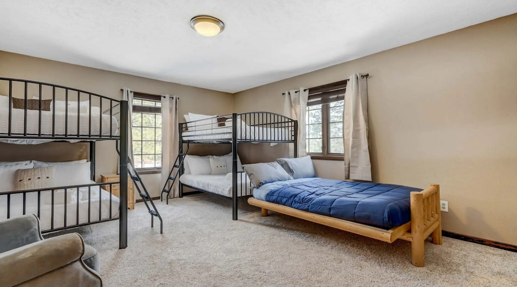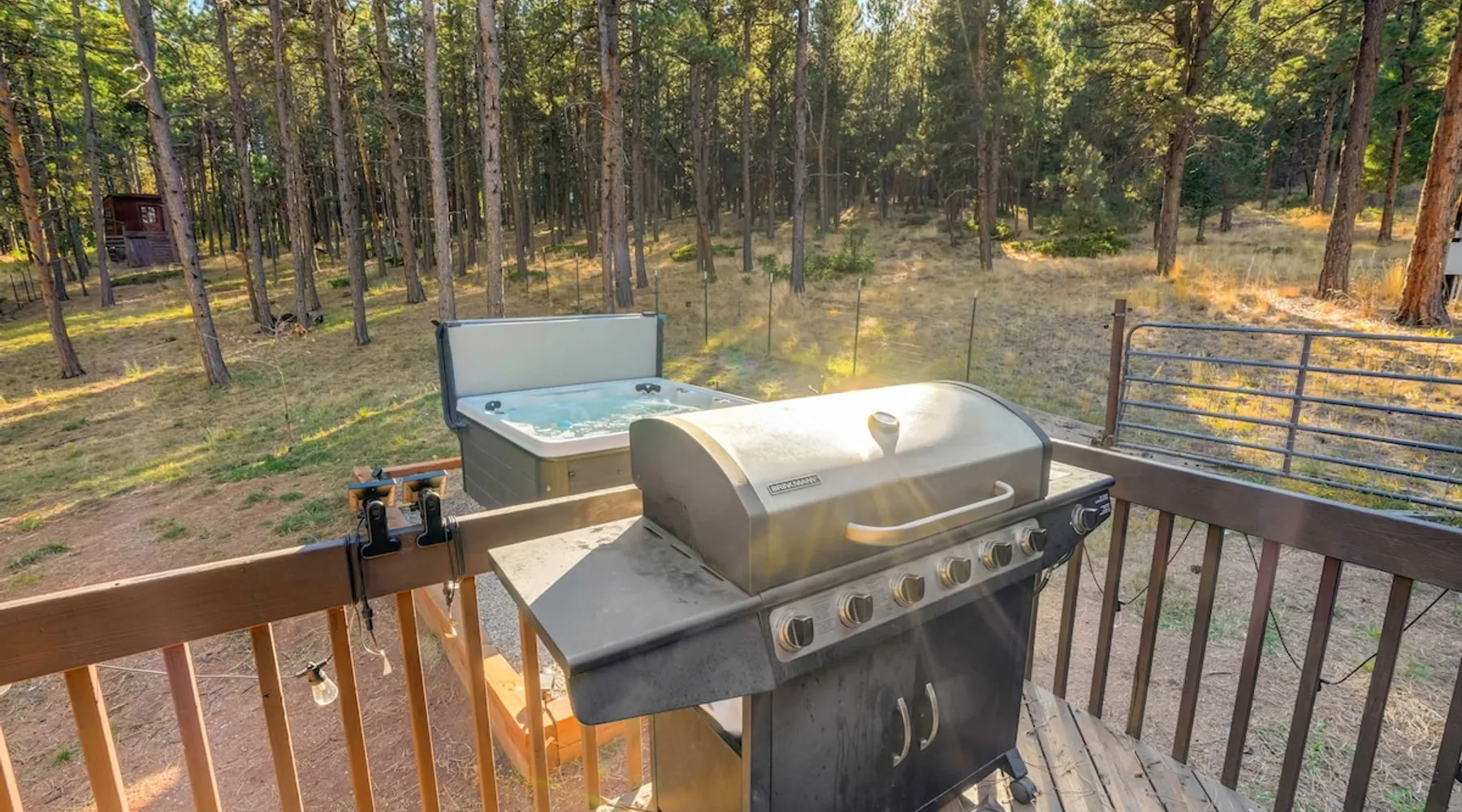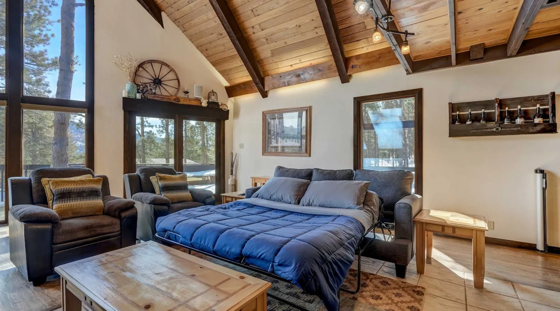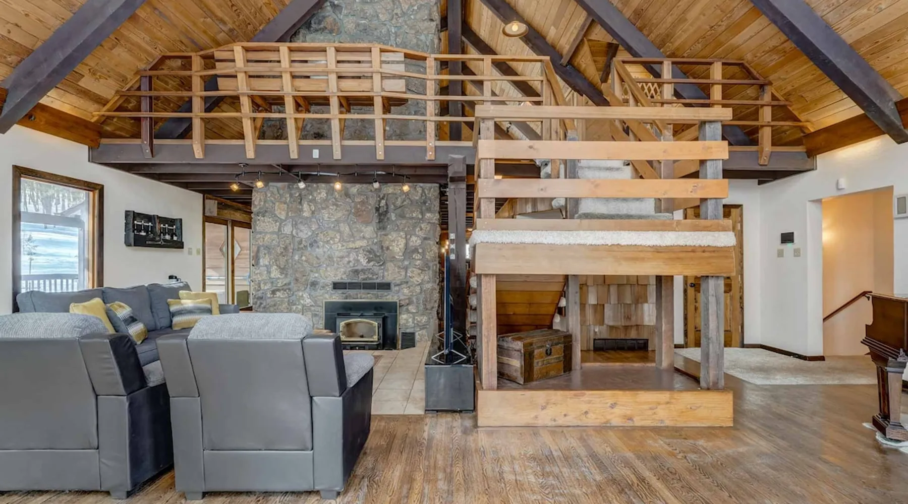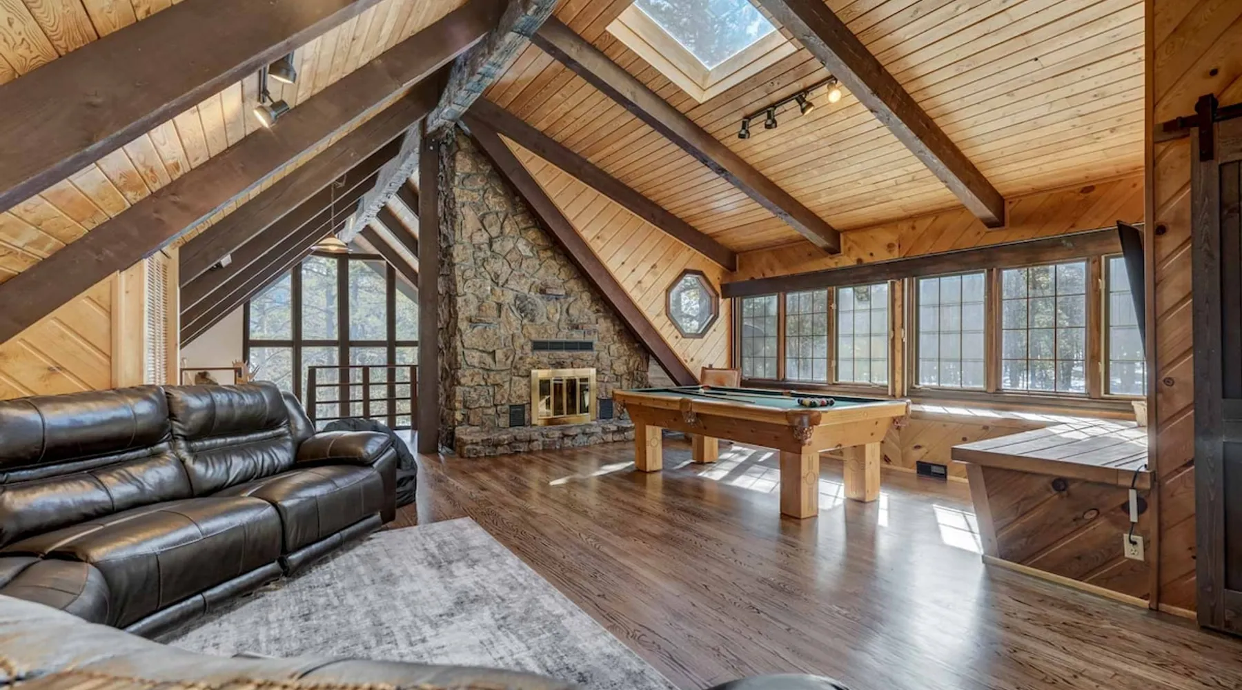 Welcome to Moose Tracks Cabin! Situated among towering pine trees, offering breathtaking mountain views, perfect for large families, groups of friends. 🏡 Top-rated vacation rental in Woodland Park, Colorado! 🛁 Hot tub, BBQ, fire pit, Pool table outdoor seating w/ mountain views! 🐾 Pet-friendly – furry friends welcome! 🌐 Fast WiFi w/ dedicated workspace & Smart TVs! 🏋 Multi-station gym equipment, row machine, & kettlebells! 🍽️ Fully-stocked kitchen! Book your ultimate cabin getaway now! The space Welcome to our serene retreat nestled amidst the Ponderosa Pines – a perfect blend of classic comfort and contemporary luxury, sprawled across 3.21 acres. Ideally situated near town and major thoroughfares, this estate features an expansive garage and artisanal wood shop. A recent addition effortlessly integrates modern aesthetics with the natural landscape. 🔥 Inviting Living Space: Cocoon yourself by the grand fireplace in our capacious living room, enveloping you in warmth and opulence during chilly evenings. 🍳 Gourmet Kitchen: Discover culinary delights in our kitchen boasting exquisite granite countertops, ample storage, state-of-the-art appliances tailored for culinary excellence, and a convenient adjacent study nook. 🌳 Al Fresco Experience: Step onto the sprawling deck adjoining the kitchen, ideal for al fresco dining and soirées, overlooking the expansive fenced backyard. Indulge in the luxurious outdoor hot tub for a relaxing experience. 🧖 Sauna Retreat: Retreat to the sauna room after a day of outdoor adventures, offering a sanctuary for unwinding and rejuvenation. 🛏️ Bedroom Setup: Bedroom 1: Queen bed Bedroom 2: 2 bunk beds, 1 sofa bed Bedroom 3: Double bed Bedroom 4: Queen bed Bedroom 5: King bed, 1 sofa bed 🎱 Upstairs Escape: Ascend to the upper level, a chic haven perfect for leisure and entertainment. Enjoy a game of billiards, indulge in entertainment with a Smart TV, and relish ample space for relaxation. The lavishly renovated bathroom adds a touch of sophistication to your stay. 🏋️ The Basement: Head downstairs to our private fitness center, fully equipped with multiple exercise machines, a rowing machine, a treadmill, and kettlebells, ensuring you have all you need for a solid fitness routine. Experience our thoughtfully designed retreat at [Property Name]. We've meticulously planned every detail to ensure you have a comfortable and enjoyable stay, perfectly combining luxury living with the peacefulness of nature. Guest access 🔑 During your stay, you will have complete access to the entire property, including all its amenities and facilities. This covers bedrooms, living spaces, the kitchen, backyard, and everything else the house has to offer. You are welcome to make use of everything available to ensure a comfortable and enjoyable experience. Please feel free to let us know if there's anything specific you'd like to know about the property or if you have any special requests during your stay. We want to ensure that you have a wonderful time while you're here. Other things to note 📜 Rental Agreement: For a seamless booking experience, a Rental Agreement is required for all reservations. Once your reservation is confirmed, we’ll provide details for completing the agreement. 🔑 Check-In Process: For a seamless check-in experience, your unique code along with your check-in instructions will be updated into your personalized guidebook on the morning of your arrival. You’ll use this code for entry. ☕ Starter Supply: We’ve prepared a starter supply that includes paper towels, coffee K-cups, toilet paper, shampoo, body wash, and plush white towels! We hope these amenities add an extra touch of comfort to your stay. ⏰ Unauthorized Late Checkout Fee: $20 Per Half Hour Late 💵 Additional Fees: For guests bringing dogs, there is a mandatory pet fee of $100 per dog, collected after booking. A maximum of 2 dogs is allowed per reservation unless otherwise approved. No other animals are permitted. Optional services, including early check-in, late check-out, and additional guests, can be arranged upon request and are subject to availability. These additional fees help cover the cost of reworking the schedule or adding an additional cleaner if needed. Please message us ahead of time for pricing and availability.