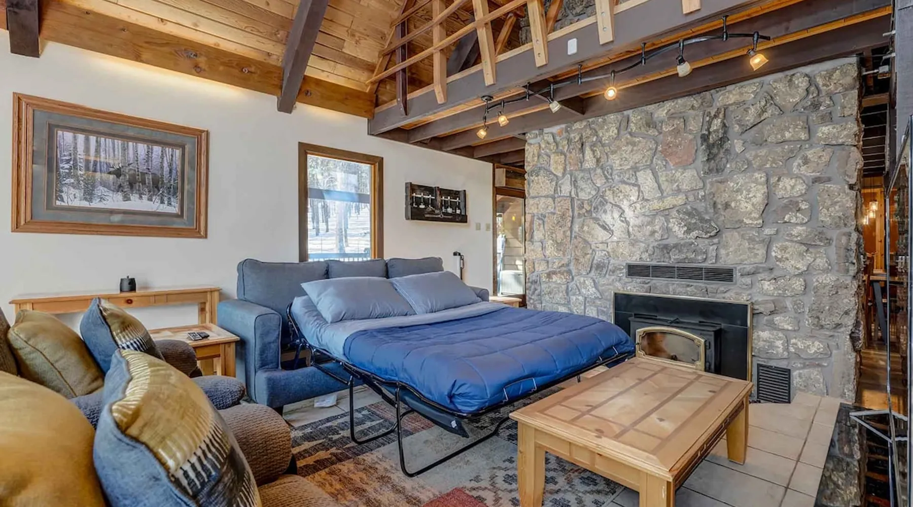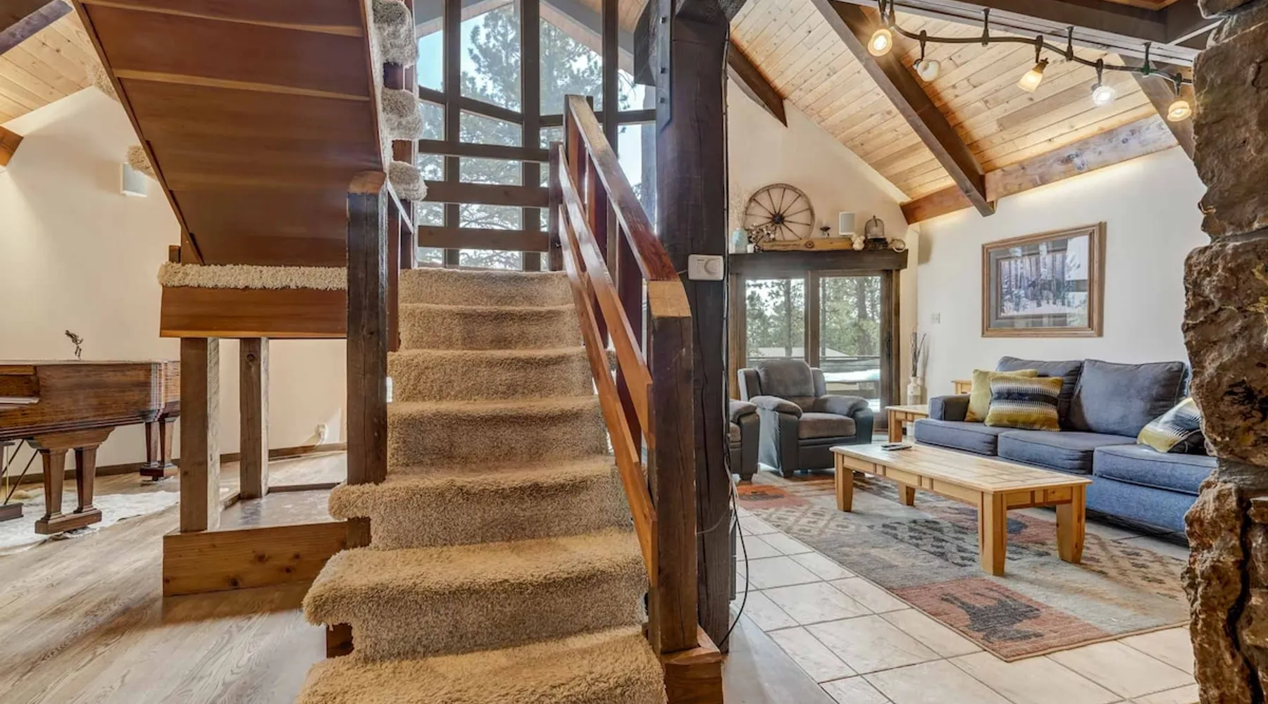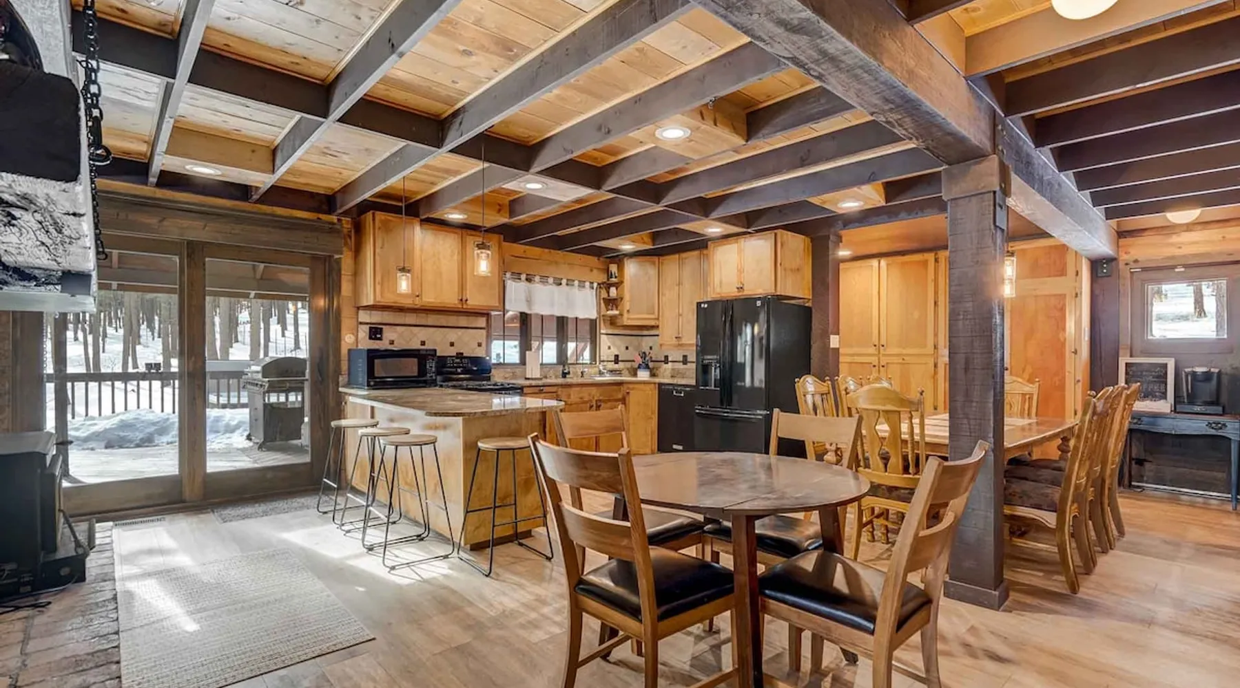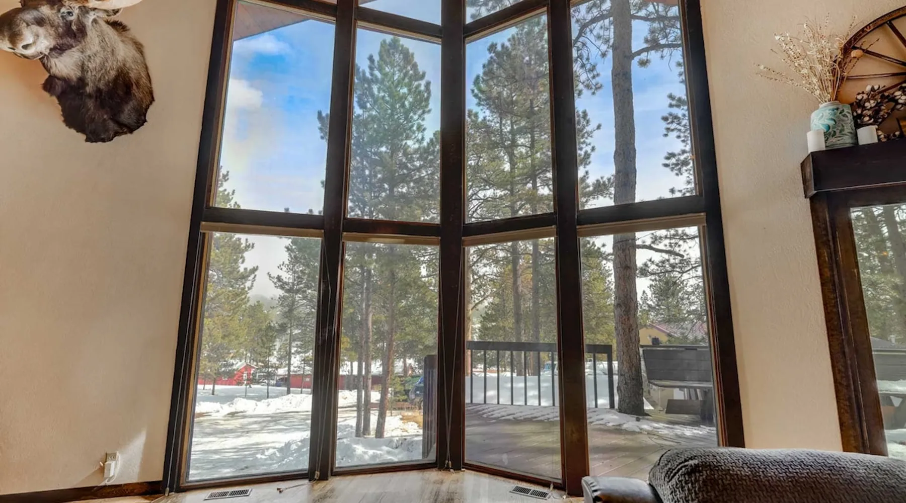 Welcome to Moose Tracks Cabin! Situated among towering pine trees, offering breathtaking mountain views, perfect for large families, groups of friends. 🏡 Top-rated vacation rental in Woodland Park, Colorado! 🛁 Hot tub, BBQ, fire pit, Pool table outdoor seating w/ mountain views! 🐾 Pet-friendly – furry friends welcome! 🌐 Fast WiFi w/ dedicated workspace & Smart TVs! 🏋 Multi-station gym equipment, row machine, & kettlebells! 🍽️ Fully-stocked kitchen! Book your ultimate cabin getaway now! The space Welcome to our serene retreat nestled amidst the Ponderosa Pines – a perfect blend of classic comfort and contemporary luxury, sprawled across 3.21 acres. Ideally situated near town and major thoroughfares, this estate features an expansive garage and artisanal wood shop. A recent addition effortlessly integrates modern aesthetics with the natural landscape. 🔥 Inviting Living Space: Cocoon yourself by the grand fireplace in our capacious living room, enveloping you in warmth and opulence during chilly evenings. 🍳 Gourmet Kitchen: Discover culinary delights in our kitchen boasting exquisite granite countertops, ample storage, state-of-the-art appliances tailored for culinary excellence, and a convenient adjacent study nook. 🌳 Al Fresco Experience: Step onto the sprawling deck adjoining the kitchen, ideal for al fresco dining and soirées, overlooking the expansive fenced backyard. Indulge in the luxurious outdoor hot tub for a relaxing experience. 🧖 Sauna Retreat: Retreat to the sauna room after a day of outdoor adventures, offering a sanctuary for unwinding and rejuvenation. 🛏️ Bedroom Setup: Bedroom 1: Queen bed Bedroom 2: 2 bunk beds, 1 sofa bed Bedroom 3: Double bed Bedroom 4: Queen bed Bedroom 5: King bed, 1 sofa bed 🎱 Upstairs Escape: Ascend to the upper level, a chic haven perfect for leisure and entertainment. Enjoy a game of billiards, indulge in entertainment with a Smart TV, and relish ample space for relaxation. The lavishly renovated bathroom adds a touch of sophistication to your stay. 🏋️ The Basement: Head downstairs to our private fitness center, fully equipped with multiple exercise machines, a rowing machine, a treadmill, and kettlebells, ensuring you have all you need for a solid fitness routine. Experience our thoughtfully designed retreat at [Property Name]. We've meticulously planned every detail to ensure you have a comfortable and enjoyable stay, perfectly combining luxury living with the peacefulness of nature. Guest access 🔑 During your stay, you will have complete access to the entire property, including all its amenities and facilities. This covers bedrooms, living spaces, the kitchen, backyard, and everything else the house has to offer. You are welcome to make use of everything available to ensure a comfortable and enjoyable experience. Please feel free to let us know if there's anything specific you'd like to know about the property or if you have any special requests during your stay. We want to ensure that you have a wonderful time while you're here. Other things to note 📜 Rental Agreement: For a seamless booking experience, a Rental Agreement is required for all reservations. Once your reservation is confirmed, we’ll provide details for completing the agreement. 🔑 Check-In Process: For a seamless check-in experience, your unique code along with your check-in instructions will be updated into your personalized guidebook on the morning of your arrival. You’ll use this code for entry. ☕ Starter Supply: We’ve prepared a starter supply that includes paper towels, coffee K-cups, toilet paper, shampoo, body wash, and plush white towels! We hope these amenities add an extra touch of comfort to your stay. ⏰ Unauthorized Late Checkout Fee: $20 Per Half Hour Late 💵 Additional Fees: For guests bringing dogs, there is a mandatory pet fee of $100 per dog, collected after booking. A maximum of 2 dogs is allowed per reservation unless otherwise approved. No other animals are permitted. Optional services, including early check-in, late check-out, and additional guests, can be arranged upon request and are subject to availability. These additional fees help cover the cost of reworking the schedule or adding an additional cleaner if needed. Please message us ahead of time for pricing and availability.