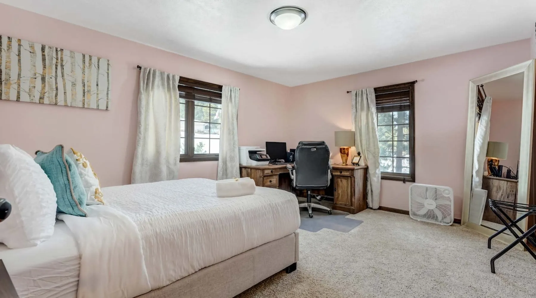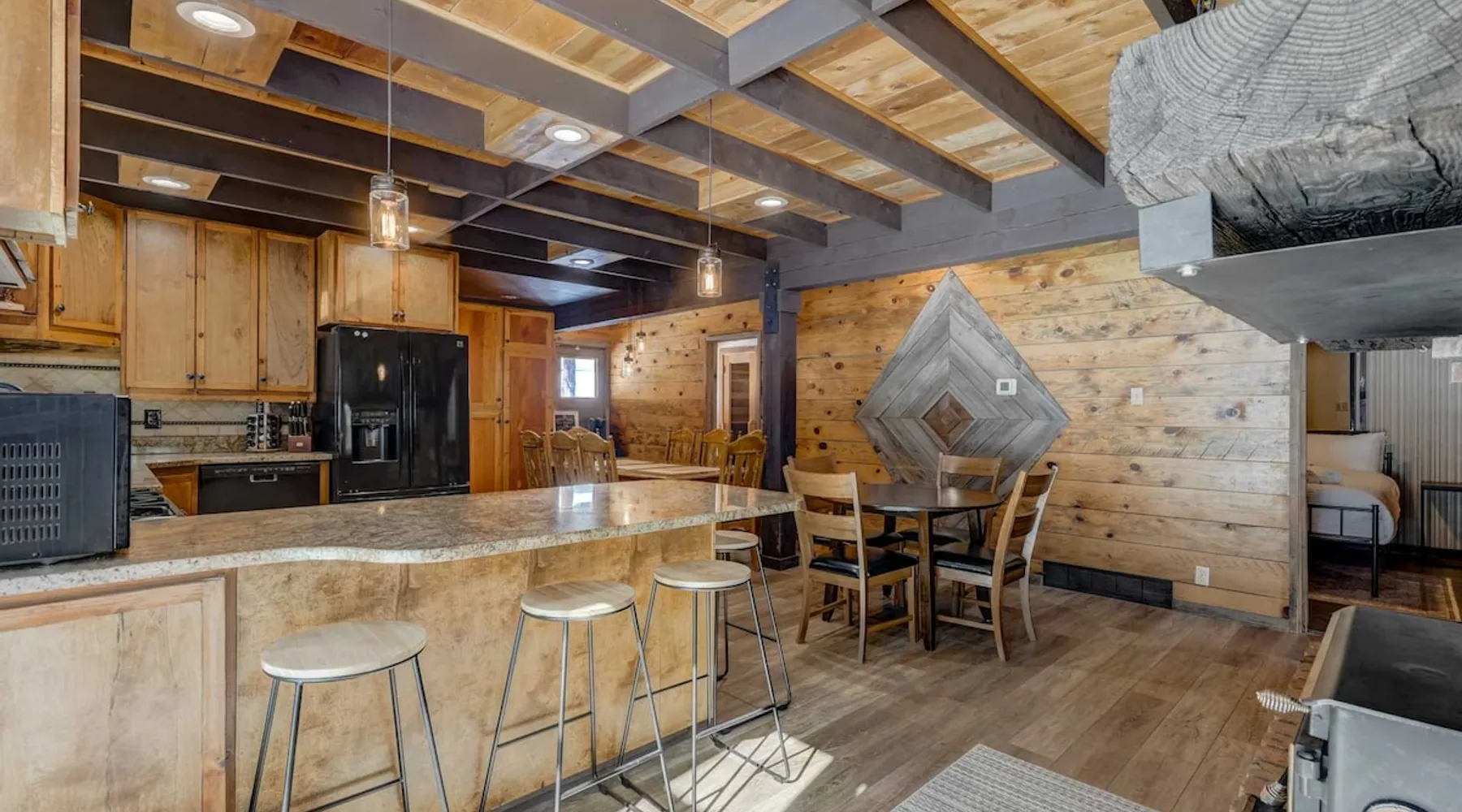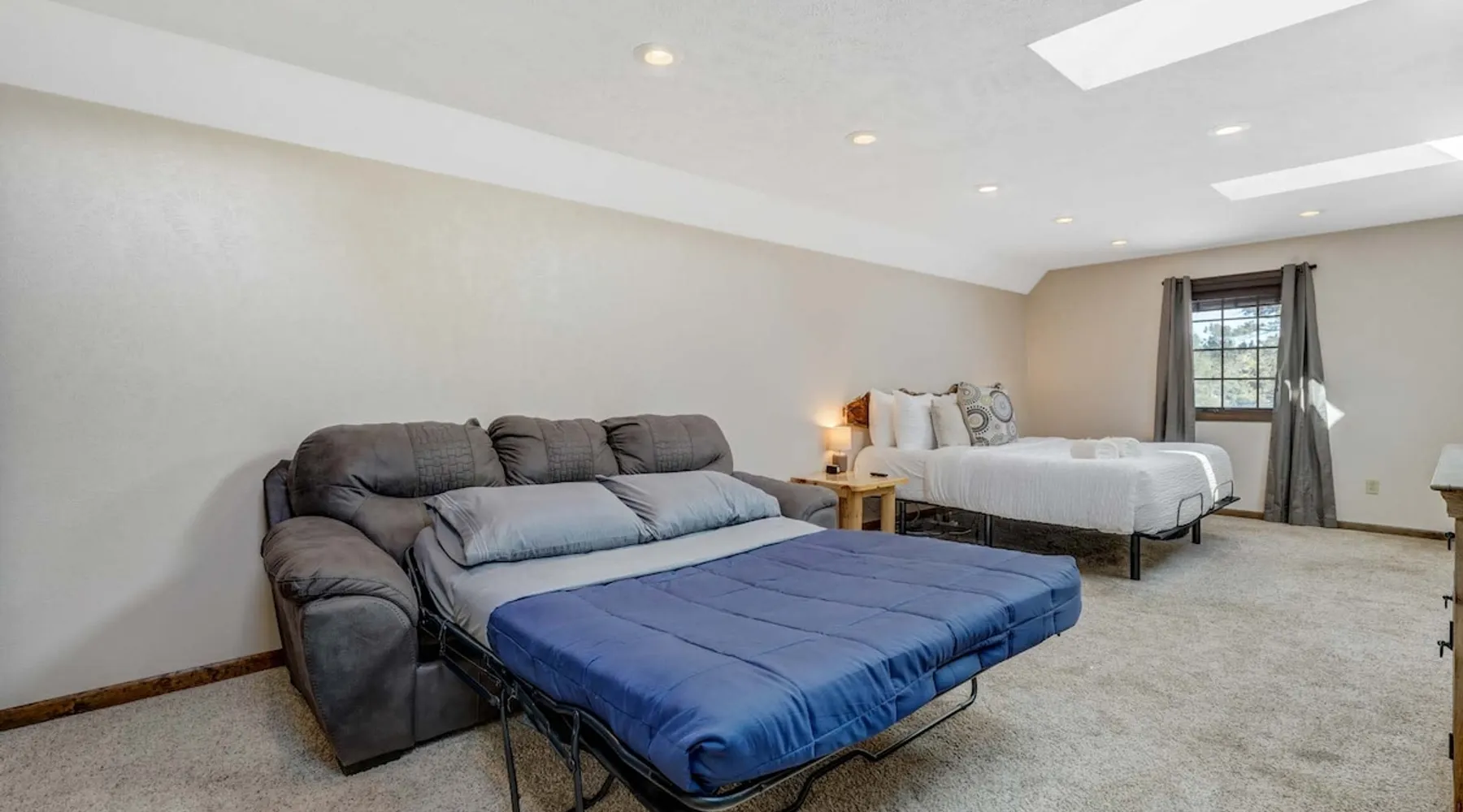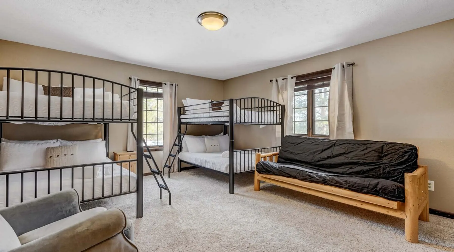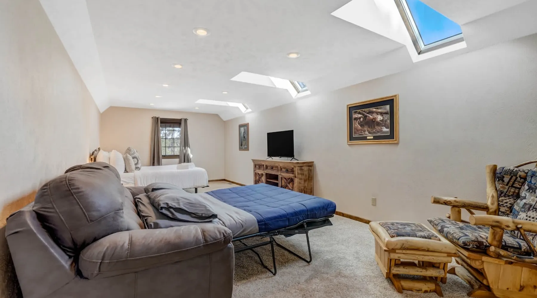 Welcome to Moose Tracks Cabin! Situated among towering pine trees, offering breathtaking mountain views, perfect for large families, groups of friends. 🏡 Top-rated vacation rental in Woodland Park, Colorado! 🛁 Hot tub, BBQ, fire pit, Pool table outdoor seating w/ mountain views! 🐾 Pet-friendly – furry friends welcome! 🌐 Fast WiFi w/ dedicated workspace & Smart TVs! 🏋 Multi-station gym equipment, row machine, & kettlebells! 🍽️ Fully-stocked kitchen! Book your ultimate cabin getaway now! The space Welcome to our serene retreat nestled amidst the Ponderosa Pines – a perfect blend of classic comfort and contemporary luxury, sprawled across 3.21 acres. Ideally situated near town and major thoroughfares, this estate features an expansive garage and artisanal wood shop. A recent addition effortlessly integrates modern aesthetics with the natural landscape. 🔥 Inviting Living Space: Cocoon yourself by the grand fireplace in our capacious living room, enveloping you in warmth and opulence during chilly evenings. 🍳 Gourmet Kitchen: Discover culinary delights in our kitchen boasting exquisite granite countertops, ample storage, state-of-the-art appliances tailored for culinary excellence, and a convenient adjacent study nook. 🌳 Al Fresco Experience: Step onto the sprawling deck adjoining the kitchen, ideal for al fresco dining and soirées, overlooking the expansive fenced backyard. Indulge in the luxurious outdoor hot tub for a relaxing experience. 🧖 Sauna Retreat: Retreat to the sauna room after a day of outdoor adventures, offering a sanctuary for unwinding and rejuvenation. 🛏️ Bedroom Setup: Bedroom 1: Queen bed Bedroom 2: 2 bunk beds, 1 sofa bed Bedroom 3: Double bed Bedroom 4: Queen bed Bedroom 5: King bed, 1 sofa bed 🎱 Upstairs Escape: Ascend to the upper level, a chic haven perfect for leisure and entertainment. Enjoy a game of billiards, indulge in entertainment with a Smart TV, and relish ample space for relaxation. The lavishly renovated bathroom adds a touch of sophistication to your stay. 🏋️ The Basement: Head downstairs to our private fitness center, fully equipped with multiple exercise machines, a rowing machine, a treadmill, and kettlebells, ensuring you have all you need for a solid fitness routine. Experience our thoughtfully designed retreat at [Property Name]. We've meticulously planned every detail to ensure you have a comfortable and enjoyable stay, perfectly combining luxury living with the peacefulness of nature. Guest access 🔑 During your stay, you will have complete access to the entire property, including all its amenities and facilities. This covers bedrooms, living spaces, the kitchen, backyard, and everything else the house has to offer. You are welcome to make use of everything available to ensure a comfortable and enjoyable experience. Please feel free to let us know if there's anything specific you'd like to know about the property or if you have any special requests during your stay. We want to ensure that you have a wonderful time while you're here. Other things to note 📜 Rental Agreement: For a seamless booking experience, a Rental Agreement is required for all reservations. Once your reservation is confirmed, we’ll provide details for completing the agreement. 🔑 Check-In Process: For a seamless check-in experience, your unique code along with your check-in instructions will be updated into your personalized guidebook on the morning of your arrival. You’ll use this code for entry. ☕ Starter Supply: We’ve prepared a starter supply that includes paper towels, coffee K-cups, toilet paper, shampoo, body wash, and plush white towels! We hope these amenities add an extra touch of comfort to your stay. ⏰ Unauthorized Late Checkout Fee: $20 Per Half Hour Late 💵 Additional Fees: For guests bringing dogs, there is a mandatory pet fee of $100 per dog, collected after booking. A maximum of 2 dogs is allowed per reservation unless otherwise approved. No other animals are permitted. Optional services, including early check-in, late check-out, and additional guests, can be arranged upon request and are subject to availability. These additional fees help cover the cost of reworking the schedule or adding an additional cleaner if needed. Please message us ahead of time for pricing and availability.
