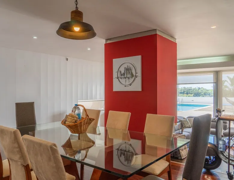 The villa in São Roque has 5 bedrooms and capacity for 10 people. Accommodation of 400 m². The accommodation is equipped with the following items: garden, garden furniture, fenced garden, 50 m² terrace, washing machine, dryer, barbecue, fireplace, iron, internet (Wi-Fi), hair dryer, balcony, alarm, hot tub, electric heating, swimming pool private, open-air parking in the same building, 3 TVs, satellite tv (Languages: Spanish, English, German, French), radio. The space The villa in São Roque has 5 bedrooms and capacity for 10 people. Accommodation of 400 m². The accommodation is equipped with the following items: garden, garden furniture, fenced garden, 50 m² terrace, washing machine, dryer, barbecue, fireplace, iron, internet (Wi-Fi), hair dryer, balcony, alarm, hot tub, electric heating, swimming pool private, open-air parking in the same building, 3 TVs, satellite tv (Languages: Spanish, English, German, French), radio. The kitchen, of hotplate of glass ceramics, is equipped with refrigerator, microwave, oven, freezer, dishwasher, dishes/cutlery, kitchen utensils, coffee machine, toaster, kettle and juicer. Other things to note Included services - Swimming pool: Services available according to season Opening date: 06/11. Closing date: 30/11. - Final Cleaning - Heating - Bed linen Registration Details 4157/AL