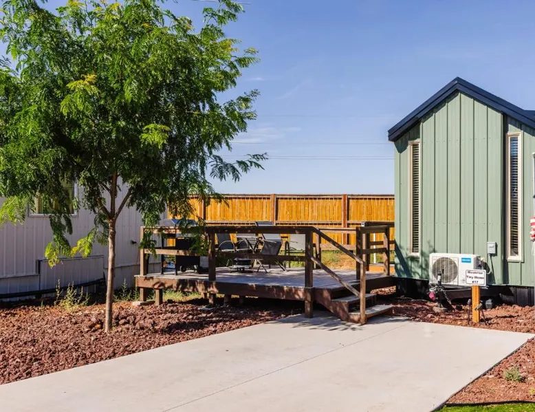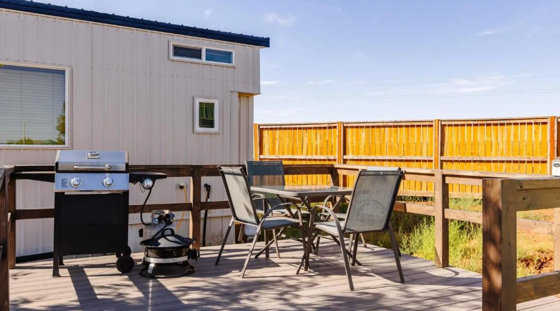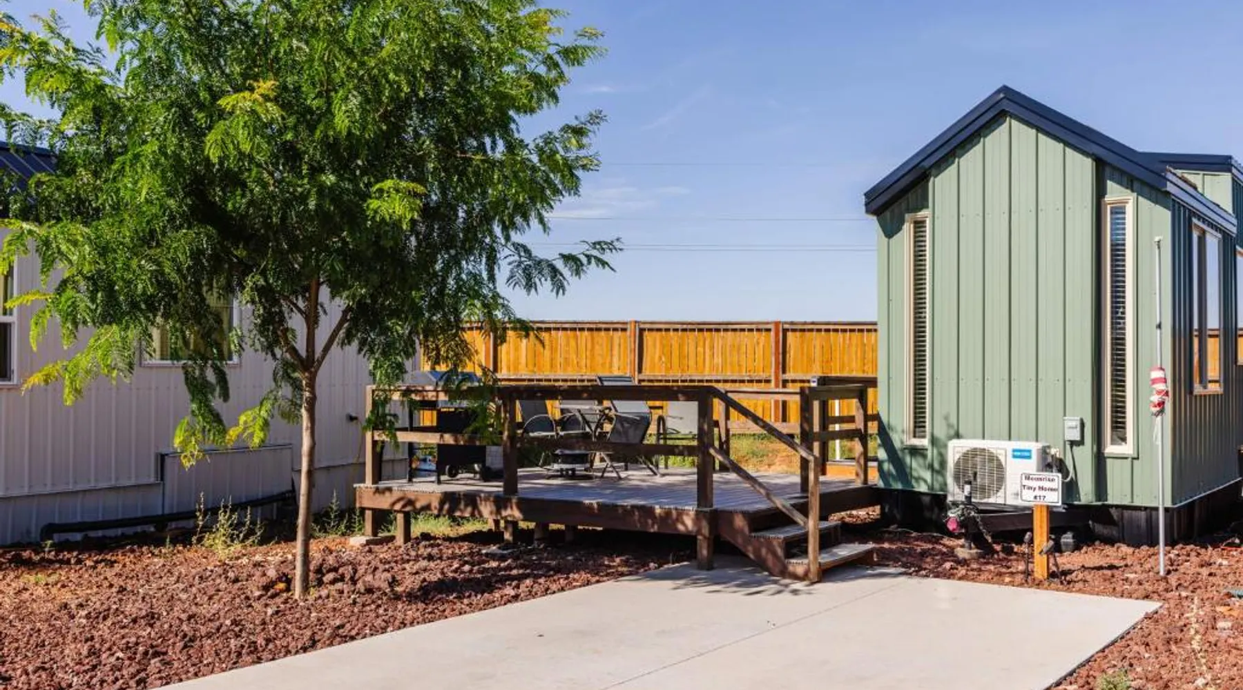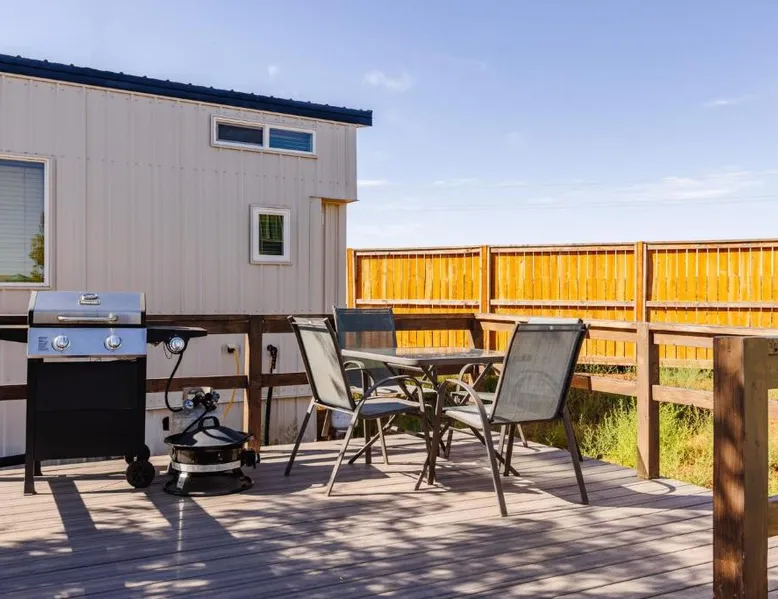 Comfortable Living: Moonrise Tiny Home in Apple Valley offers a two-bedroom, one-bathroom layout with a spacious living room. The property features a fully equipped kitchen, air-conditioning, and a cozy fireplace. Modern Amenities: Guests enjoy free WiFi, a private entrance, and a patio with mountain views. The holiday home includes a barbecue, outdoor furniture, and a TV for relaxation. Convenient Facilities: The property provides free on-site parking and an electric vehicle charging station. Additional amenities include a refrigerator, microwave, tea and coffee maker, and kitchenware. Accessible Location: St. George Regional Airport is 35 mi away, offering easy travel options. This bungalow offers a fireplace. Featuring a private entrance, this air-conditioned bungalow consists of 1 living room, 2 separate bedrooms and 1 bathroom with a bath. Guests will find a refrigerator, kitchenware, a microwave and a tea and coffee maker in the well-equipped kitchen. The bungalow also provides guests with a barbecue. This bungalow provides heating, a TV and a patio. The unit offers 3 beds.