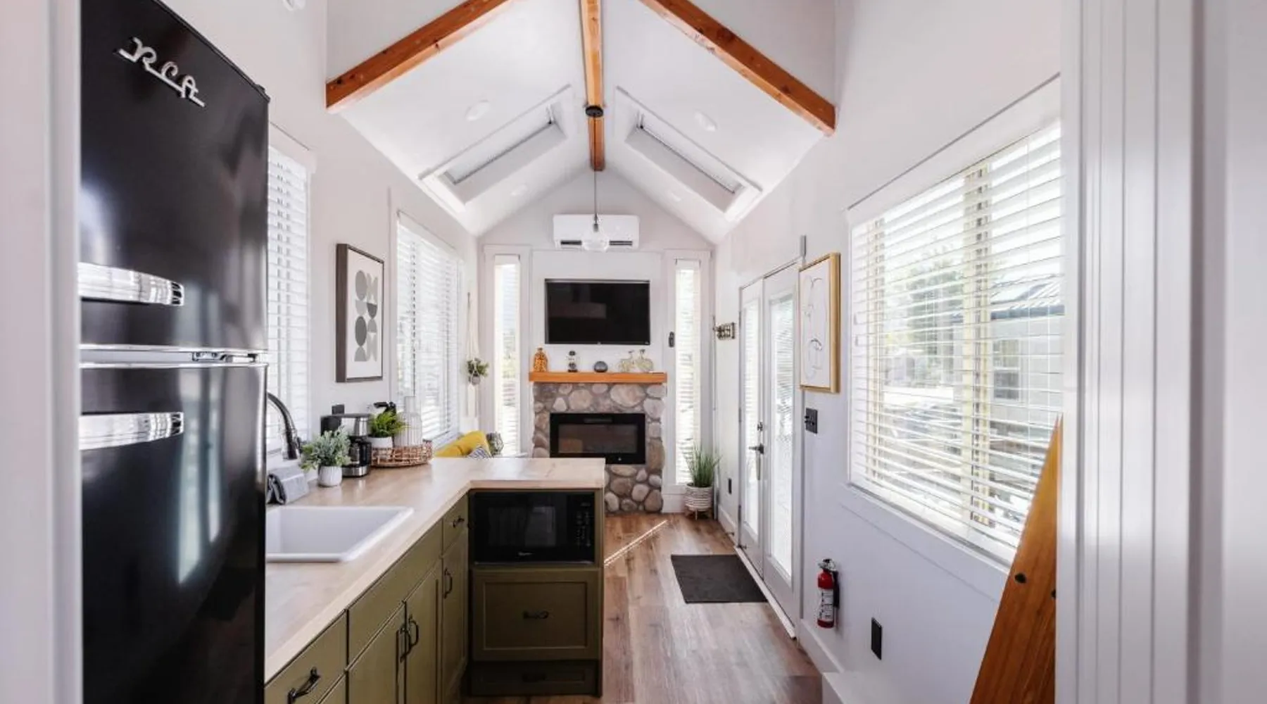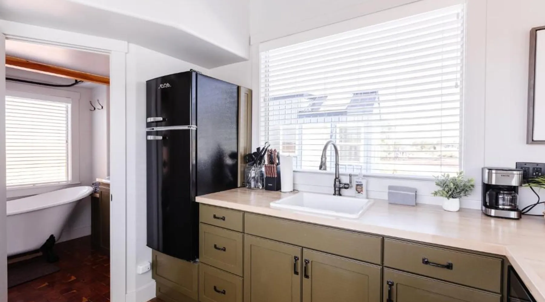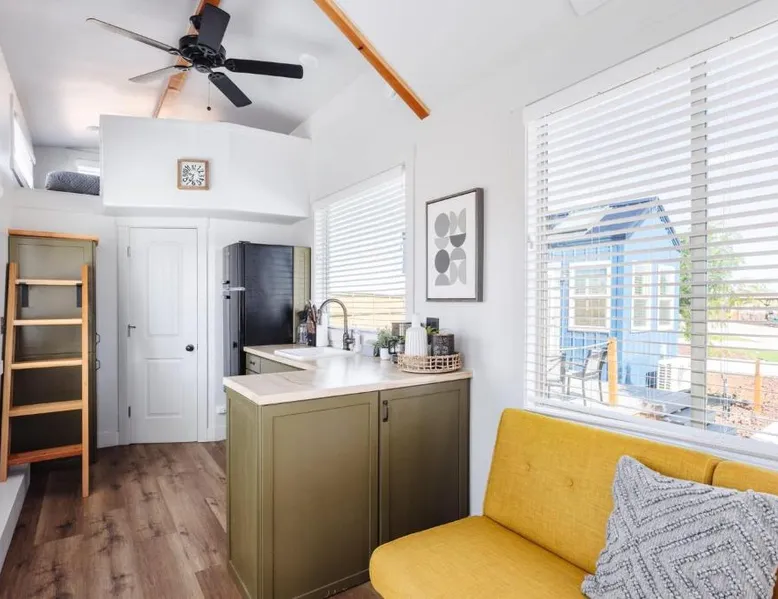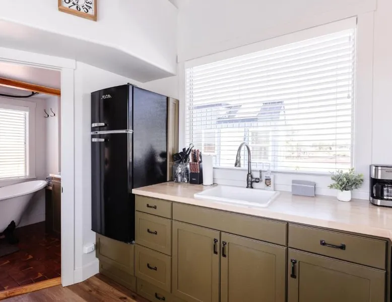 Comfortable Living: Moonrise Tiny Home in Apple Valley offers a two-bedroom, one-bathroom layout with a spacious living room. The property features a fully equipped kitchen, air-conditioning, and a cozy fireplace. Modern Amenities: Guests enjoy free WiFi, a private entrance, and a patio with mountain views. The holiday home includes a barbecue, outdoor furniture, and a TV for relaxation. Convenient Facilities: The property provides free on-site parking and an electric vehicle charging station. Additional amenities include a refrigerator, microwave, tea and coffee maker, and kitchenware. Accessible Location: St. George Regional Airport is 35 mi away, offering easy travel options. This bungalow offers a fireplace. Featuring a private entrance, this air-conditioned bungalow consists of 1 living room, 2 separate bedrooms and 1 bathroom with a bath. Guests will find a refrigerator, kitchenware, a microwave and a tea and coffee maker in the well-equipped kitchen. The bungalow also provides guests with a barbecue. This bungalow provides heating, a TV and a patio. The unit offers 3 beds.