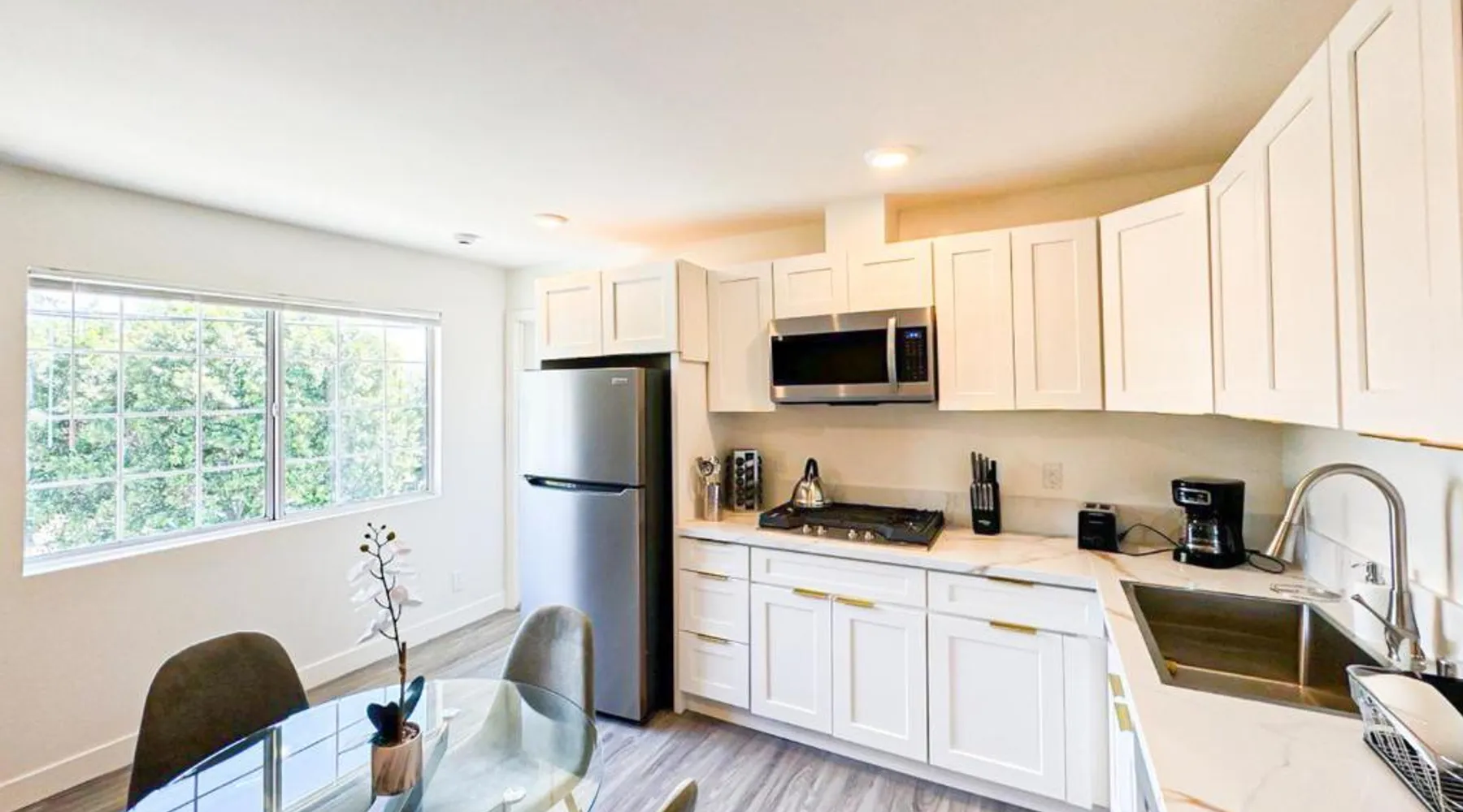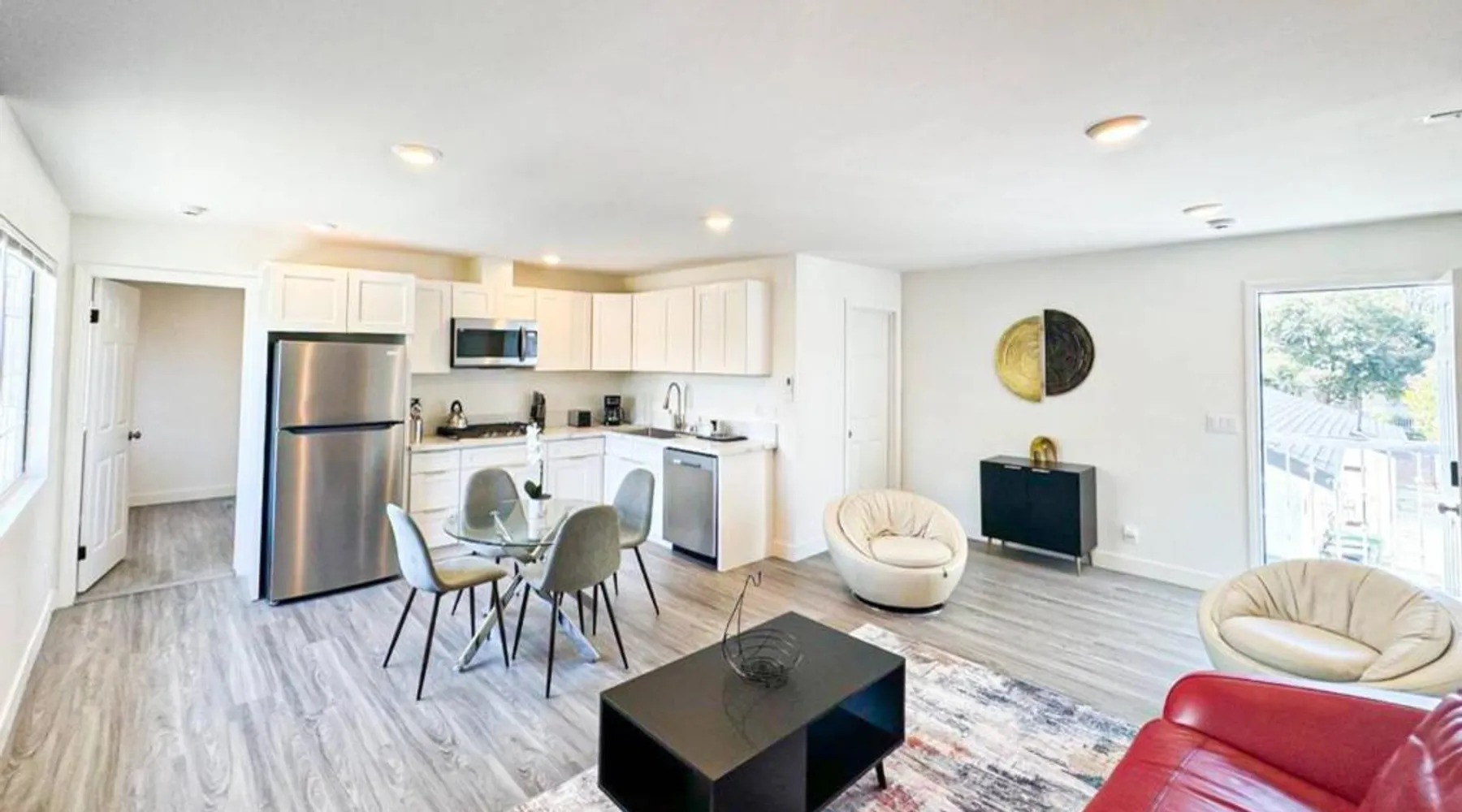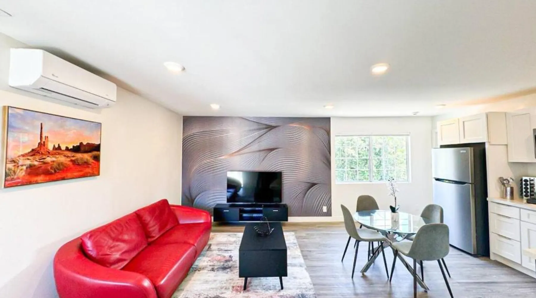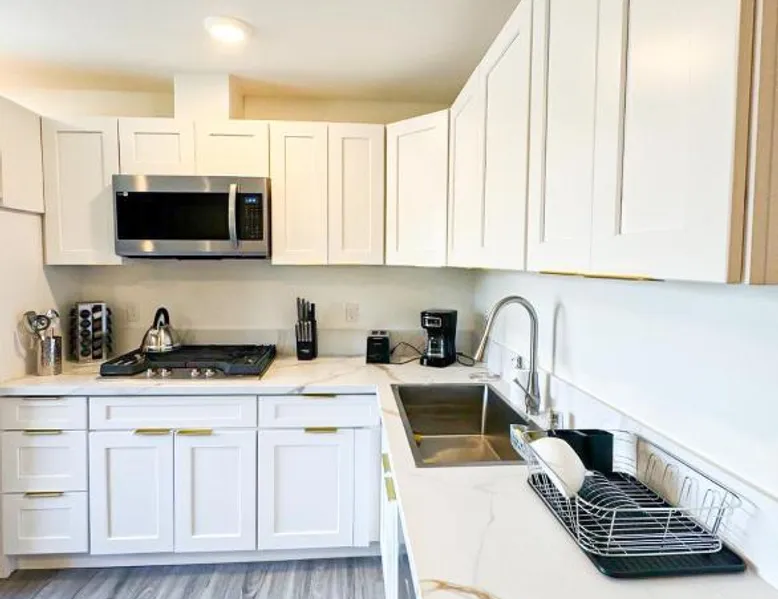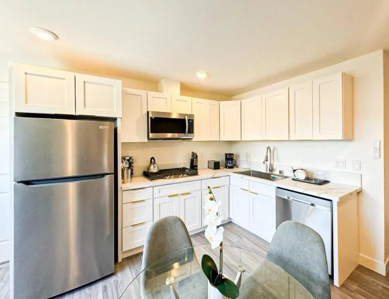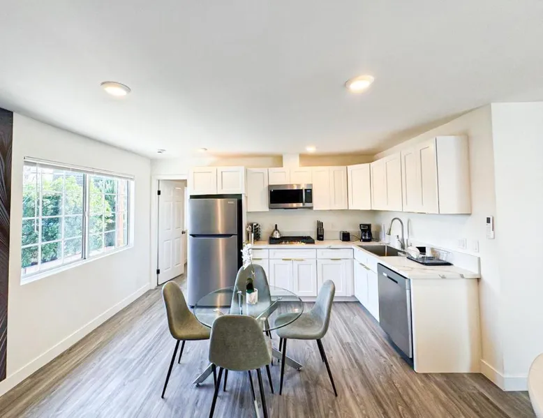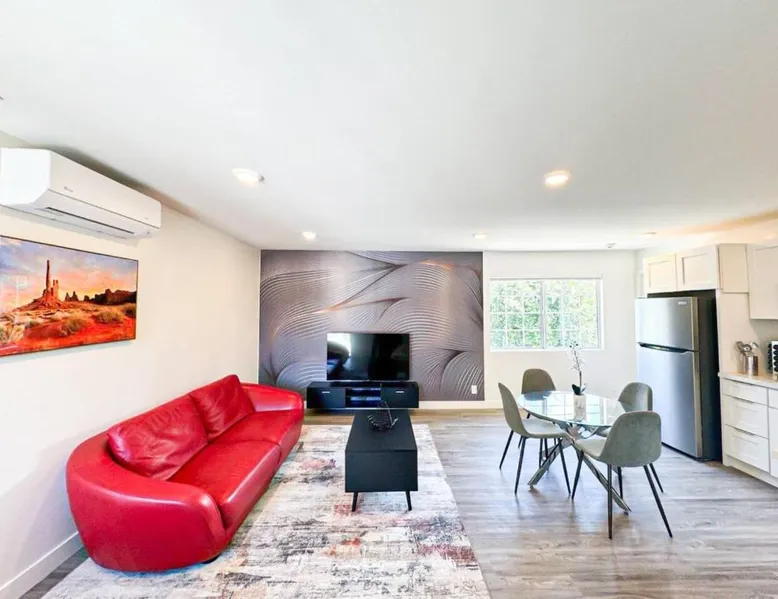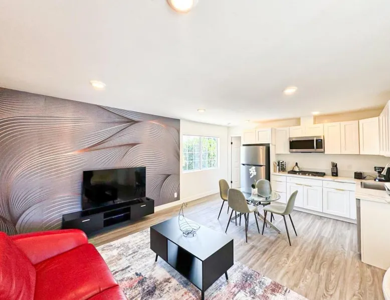 Modern Comforts: Sleek and Stylish - Modern 1BR Retreat - WO3 - UC in Los Angeles offers free WiFi, air-conditioning, and a fully equipped kitchen with a refrigerator, microwave, dishwasher, and stovetop. The living room features a sofa, TV, and dining area. Convenient Facilities: The holiday home includes family rooms, a dining table, and a seating area. Additional amenities include a hairdryer, free toiletries, and a private entrance. Prime Location: Located 5.6 mi from Hollywood Burbank Airport, the property is an 8-minute walk from Universal Studios Hollywood. Nearby attractions include Dolby Theater (2.9 mi) and Griffith Observatory (6.8 mi). A car park is available in the surroundings. Featuring a private entrance, this air-conditioned holiday home consists of 1 living room, 1 separate bedroom and 1 bathroom with a shower and a hairdryer. In the fully equipped kitchen, guests will find a stovetop, a refrigerator, a dishwasher and kitchenware. The holiday home features parquet floors, a seating area with a flat-screen TV, a tea and coffee maker, a dining area, as well as a wardrobe. The unit offers 1 bed.