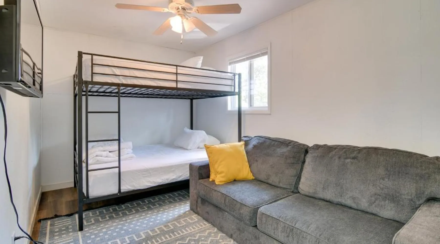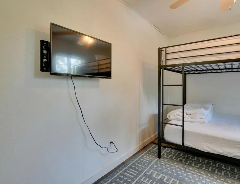 Comfortable Living: Table Rock Lake Condo Community Dock and Pool in Kimberling City offers a two-bedroom, two-bathroom apartment with a living room. The property includes air-conditioning, a fully equipped kitchen, and free WiFi. Leisure Facilities: Guests can enjoy an outdoor swimming pool and a barbecue area. The apartment features a dining table, refrigerator, microwave, oven, stovetop, toaster, and coffee machine. Free toiletries and a hairdryer are also provided. Local Attractions: Silver Dollar City is 9.9 mi away, Mickey Gilley Theater 14 mi, Titanic Museum 14 mi, Andy Williams Moon River Theater 15 mi, Table Rock State Park 17 mi, Branson Landing 18 mi, and College Of The Ozarks 19 mi from the property. Boasting a private entrance, this air-conditioned apartment includes 1 living room, 2 separate bedrooms and 2 bathrooms with a bath and a shower. Guests will find a stovetop, a refrigerator, kitchenware and an oven in the fully equipped kitchen. The apartment also features a barbecue. This apartment has a coffee machine, heating and a flat-screen TV. The unit has 4 beds.