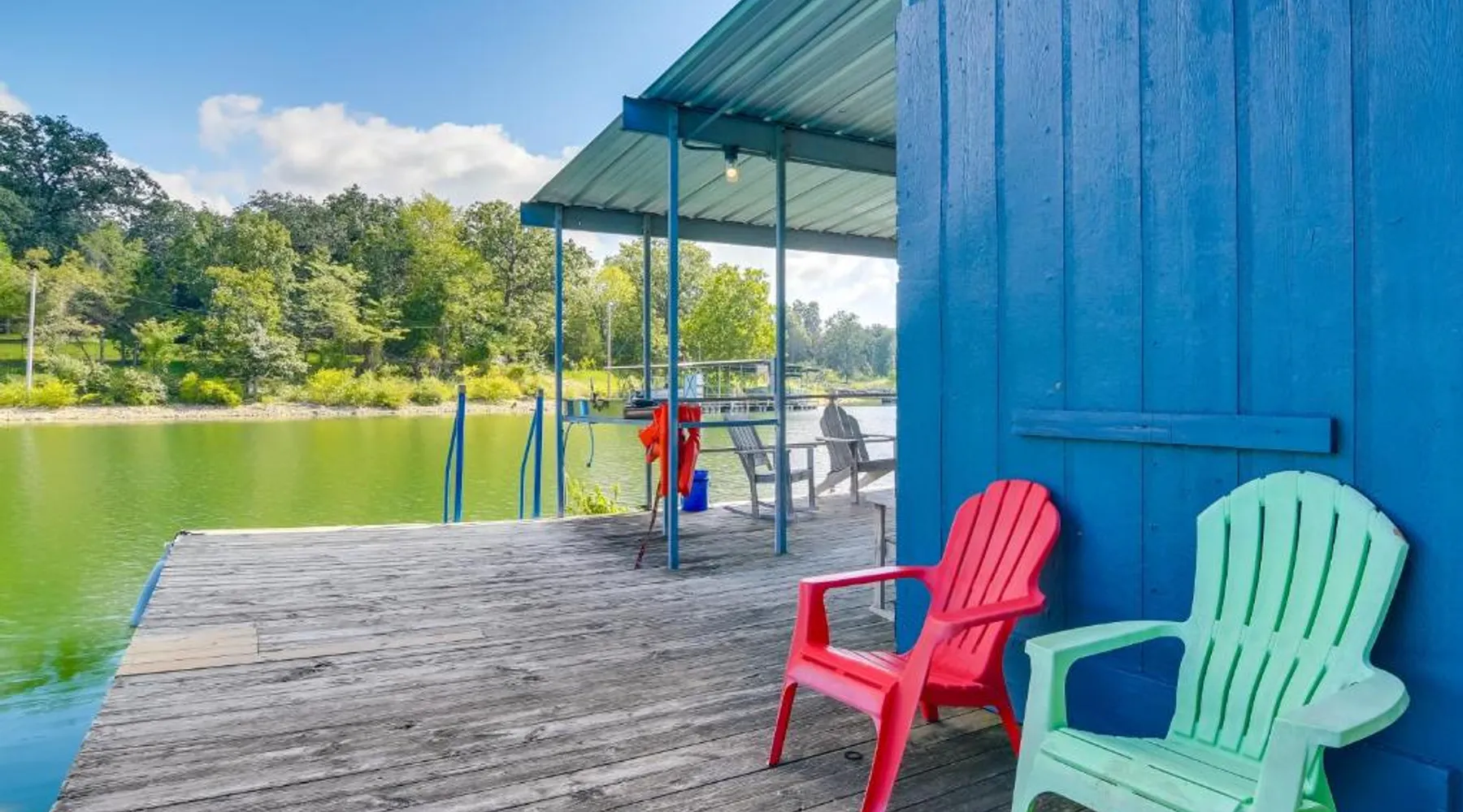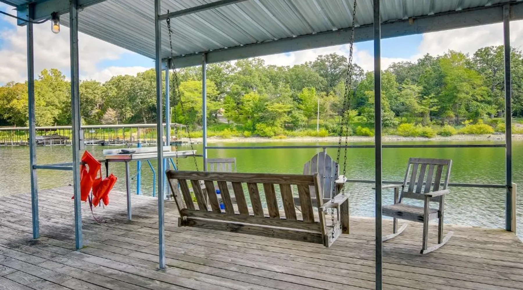 Comfortable Living: Pool and Dock Access Apt on Table Rock Lake in Kimberling City offers a one-bedroom apartment with a living room. The property includes a fully equipped kitchen, air-conditioning, and a private entrance. Outdoor Amenities: Guests can enjoy an outdoor swimming pool and free WiFi. The apartment features a dining area with a table and chairs, perfect for relaxing by the lake. Convenient Location: Located 9.9 mi from Silver Dollar City and 14 mi from Mickey Gilley Theater, the apartment provides easy access to local attractions. Table Rock State Park is 17 mi away, and Branson Landing is 18 mi from the property. Featuring a private entrance, this air-conditioned apartment is consisted of of 1 living room, 1 separate bedroom and 1 bathroom with a bath and a hairdryer. Guests will find a stovetop, a refrigerator, kitchenware and an oven in the fully equipped kitchen. The apartment also has a barbecue. This apartment features a tea and coffee maker, heating, a flat-screen TV and lake views. The unit offers 3 beds.