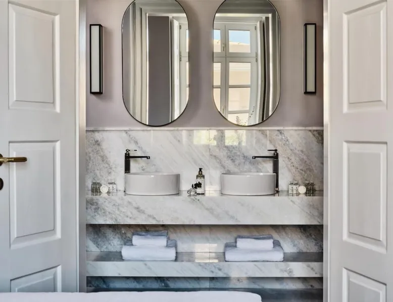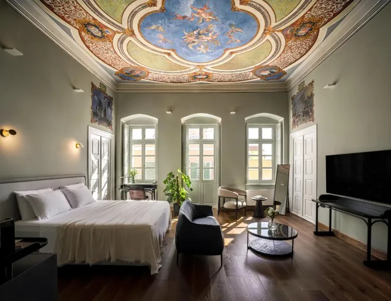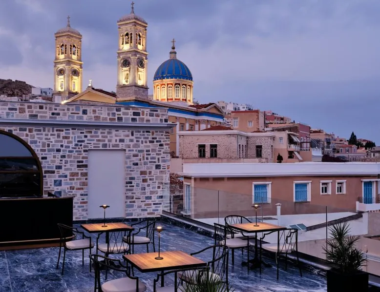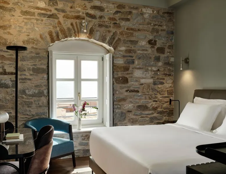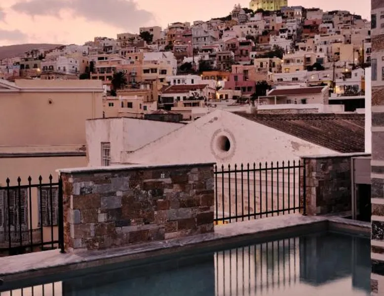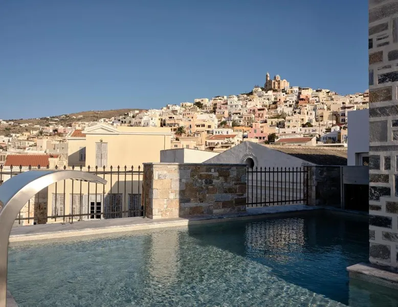Elegant Accommodations: Argini Syros in Ermoupoli offers a 5-star hotel experience with a sun terrace, indoor swimming pool, restaurant, bar, and free WiFi. Private check-in and check-out services, a lounge, and a 24-hour front desk ensure comfort and convenience. Dining and Amenities: Guests can enjoy Mediterranean and local cuisines at the modern, romantic restaurant, with vegetarian, vegan, and gluten-free options. Breakfast includes local specialties, fresh pastries, and a variety of beverages. Additional amenities include air-conditioning, private bathrooms, and free toiletries. Prime Location: Located 2.5 mi from Syros Island National Airport, the hotel is a short walk from Asteria Beach and Saint Nicholas Church. Nearby attractions include Miaouli Square and Neorion Shipyards, providing easy access to local landmarks. This air-conditioned double room is consisted of of a flat-screen TV with streaming services, a private bathroom as well as a balcony with city views. The unit has 1 bed.