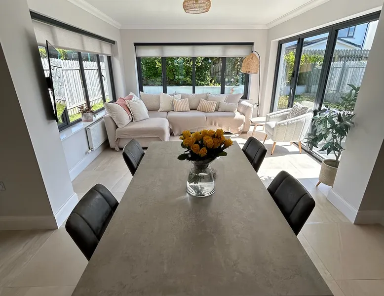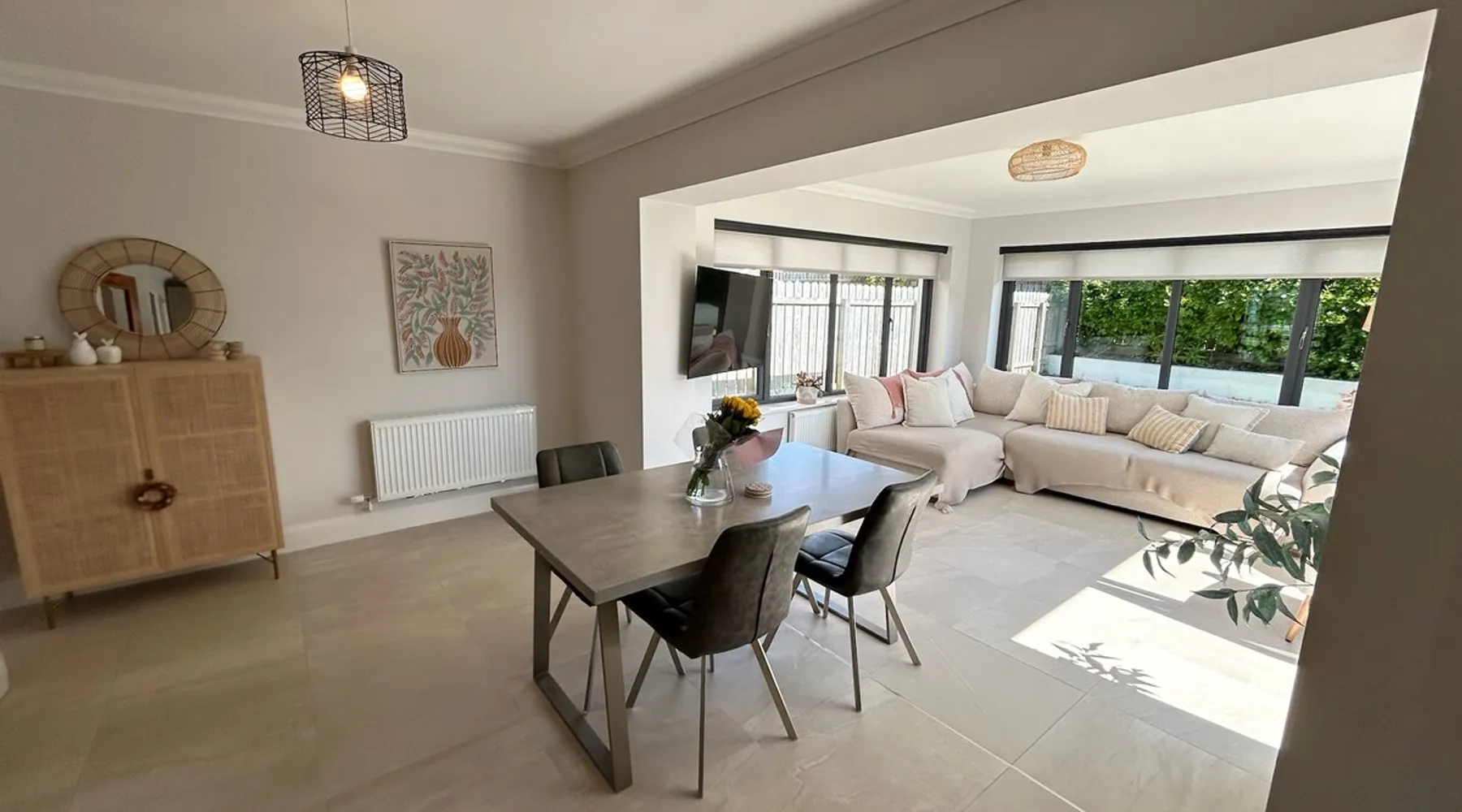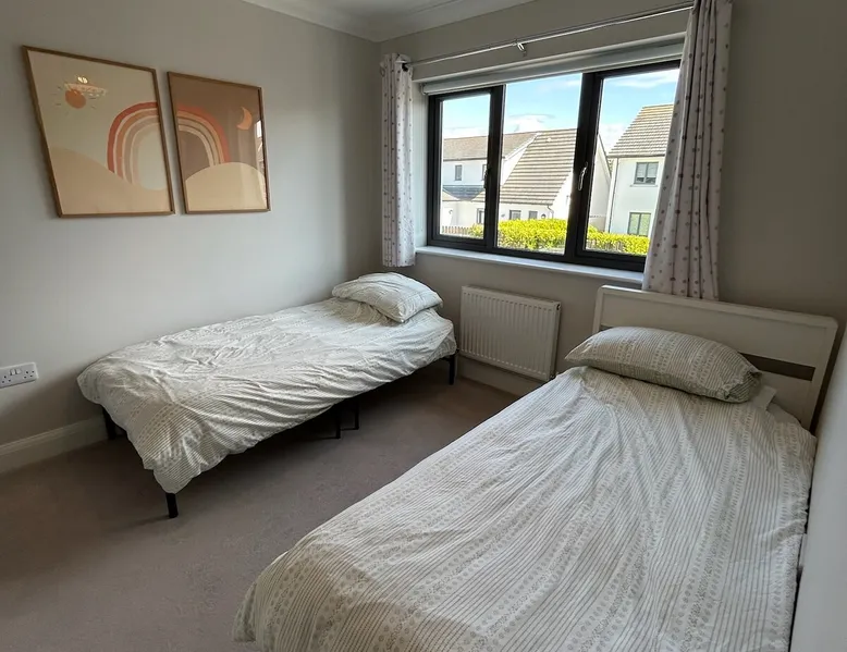Fresh three bedroom home with parking, sunny garden, close to local amenities, bus route to Douglas and 10 min walk to the beach. 3 bedrooms, plus additional single bed can be put in either bedroom. Bed setup depending on guest preferences, 1 Double, 1 King, 2 singles. Off road safe parking for two cars / space for up to 4 bikes. Remote working available, dual monitors, high speed internet. Official TT homestay approved accommodation property IM01273. Minimum 7 night stay during TT week. Registration Details IM01273