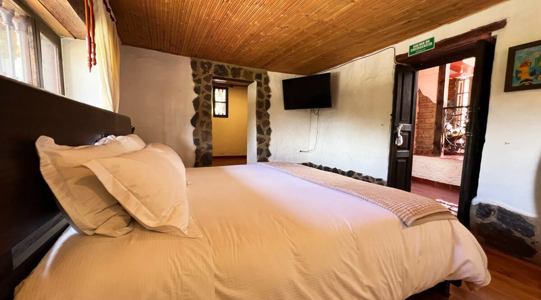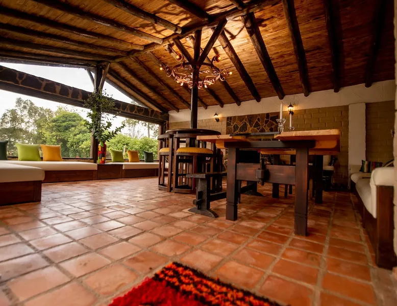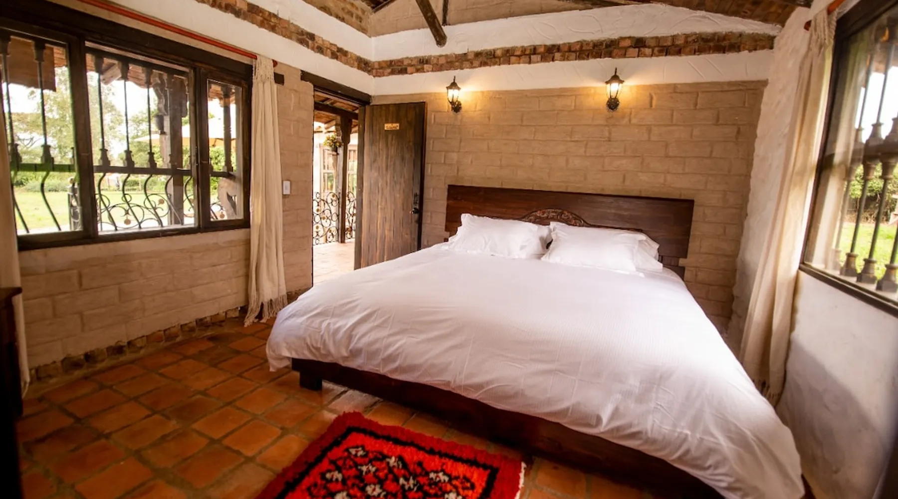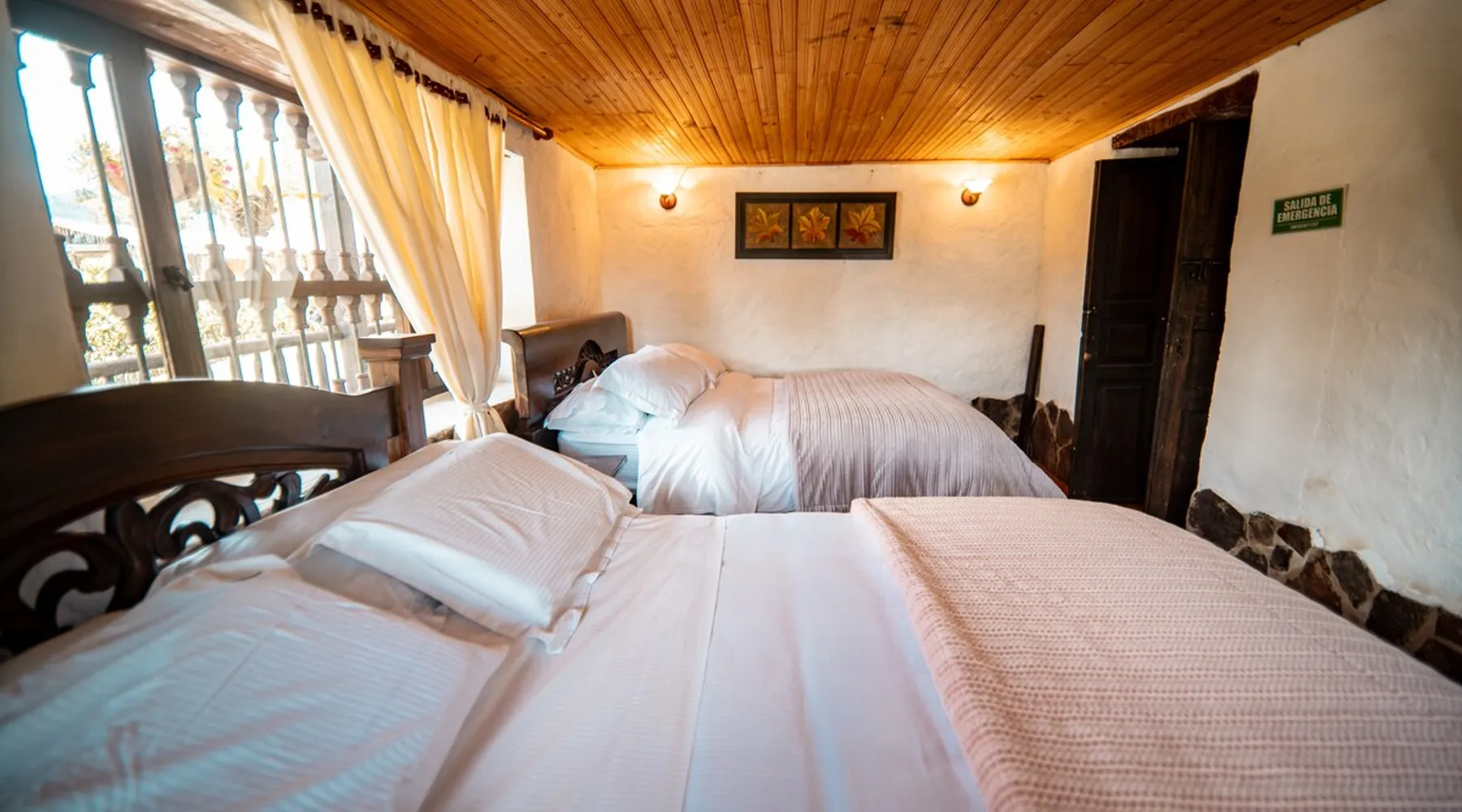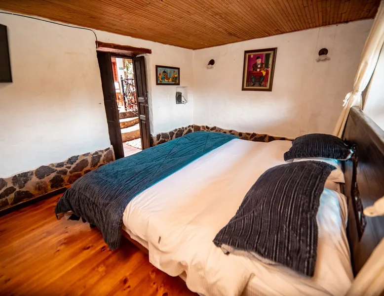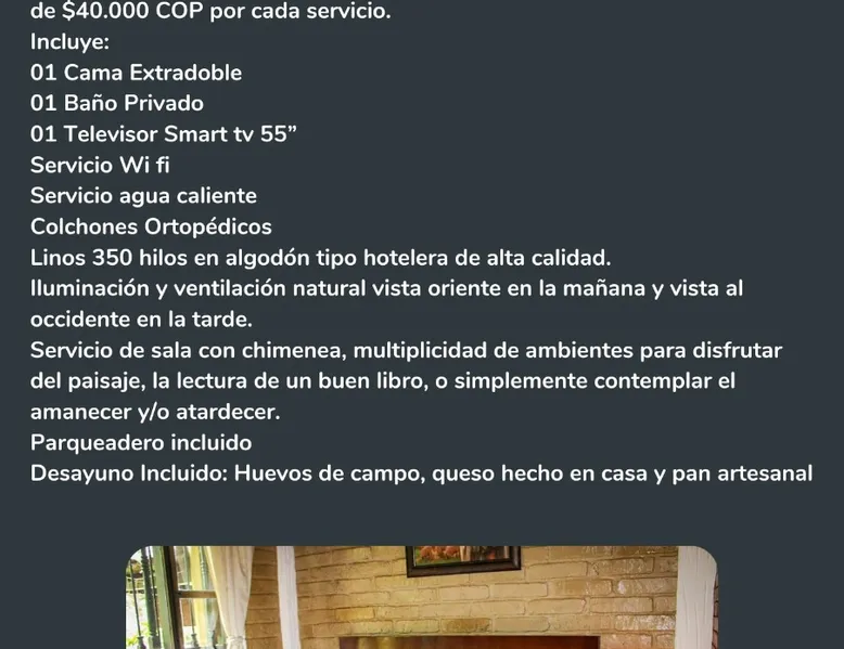 Experience with your loved ones in this wonderful and peaceful place, surrounded by the most beautiful natural landscapes and comfort where you will find everything you need to disconnect and connect to new experiences, where the sound of nature is part of a perfect symphony between birdsong, the whistling of the wind that hits the branches of the trees and the sound of water on the Joshua trail, while observing a beautiful sunset.... The space This is a Estate that has 2 rustic colonial cabins, surrounded by beautiful meadows and gardens, natural water fountains, leafy trees, fruit trees and organic orchard, you will also find ducks, chickens, cows, sheep and a wide variety of free birds, we have available and independent rooms with a private bathroom, hot water and an exquisite decoration and comfort, rustic wooden beds of Punta Larga, our beds are dressed in the highest quality linens of Brissa (Hotel line) of 350 threads, the rooms have views to the east (where the sun rises) and the west (where the sun sets), so you can appreciate the most beautiful landscapes in the morning and in the afternoon, the rooms are very ventilated, the sector is known according to the Muisca culture as "The Valley of the Gods", for its unparalleled natural beauty and a favorable area for stellar visualization, each room has 34-inch TV, WIFI, the property offers sauna service, jacuzzi and relaxing massages, they also find an area for family and social gatherings around a fireplace, our guests can also enjoy a BBQ area, to cook their favorite dishes on the grill and/or wood oven. Guest access The property is available to our smells, except for the house VICTORIA, (first cabin), where the hosts live. Other things to note The sector is very conducive for people who enjoy hiking, walking and cycling, since the valley is very safe and the roads are in very good conditions. We are also in the center of the most emblematic places of Boyacá, such as (Punta Larga vineyard - Guatica Zoo - Templo de Sol - Pantano de vargas - Pueblito Boyacense - Termales de paipa e Iza - Laguna de Tota - Municipios de Nobsa - Monguí - Tibasosa- Corrales, Iza - Sogamoso - Duitama among others). Registration Details 127386