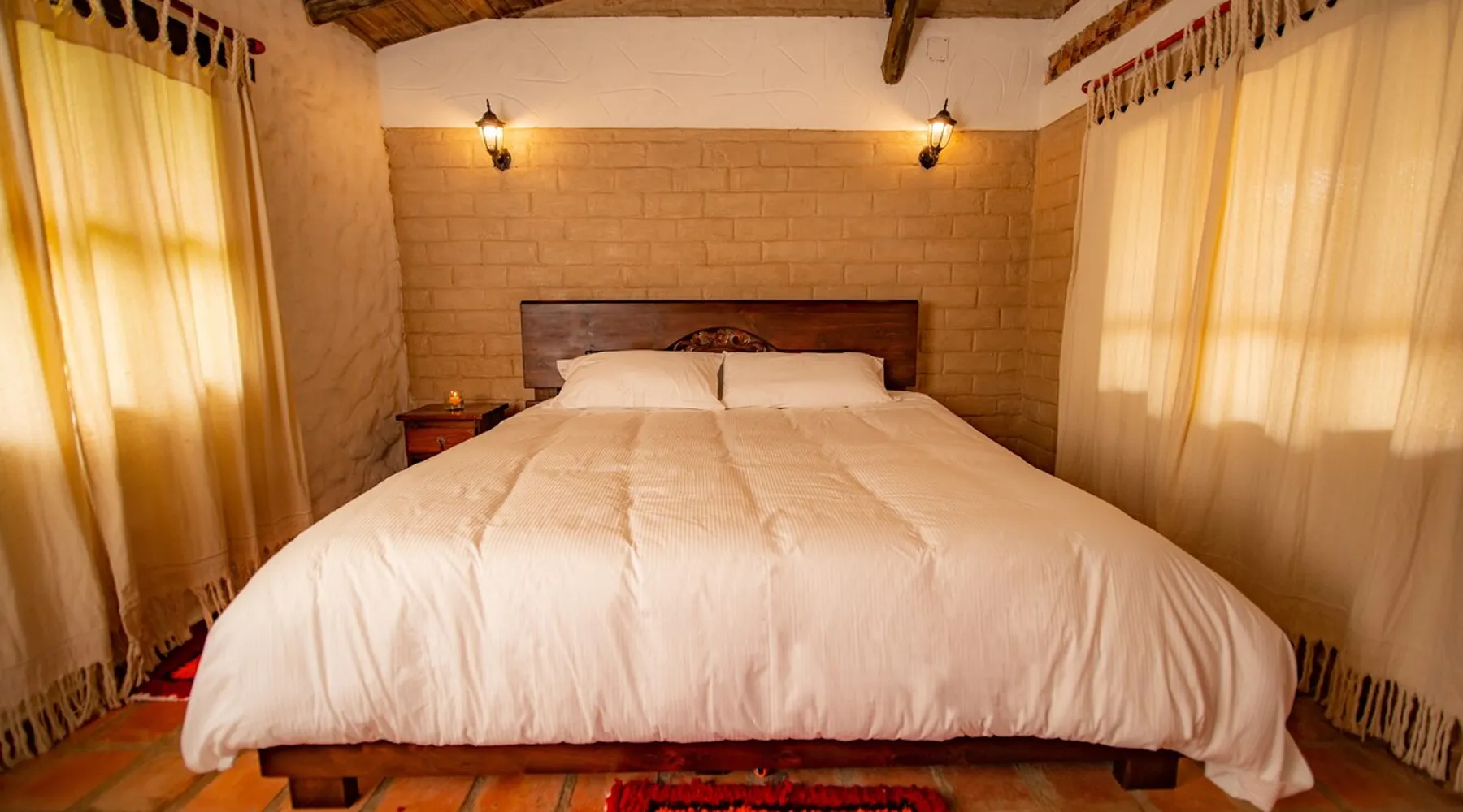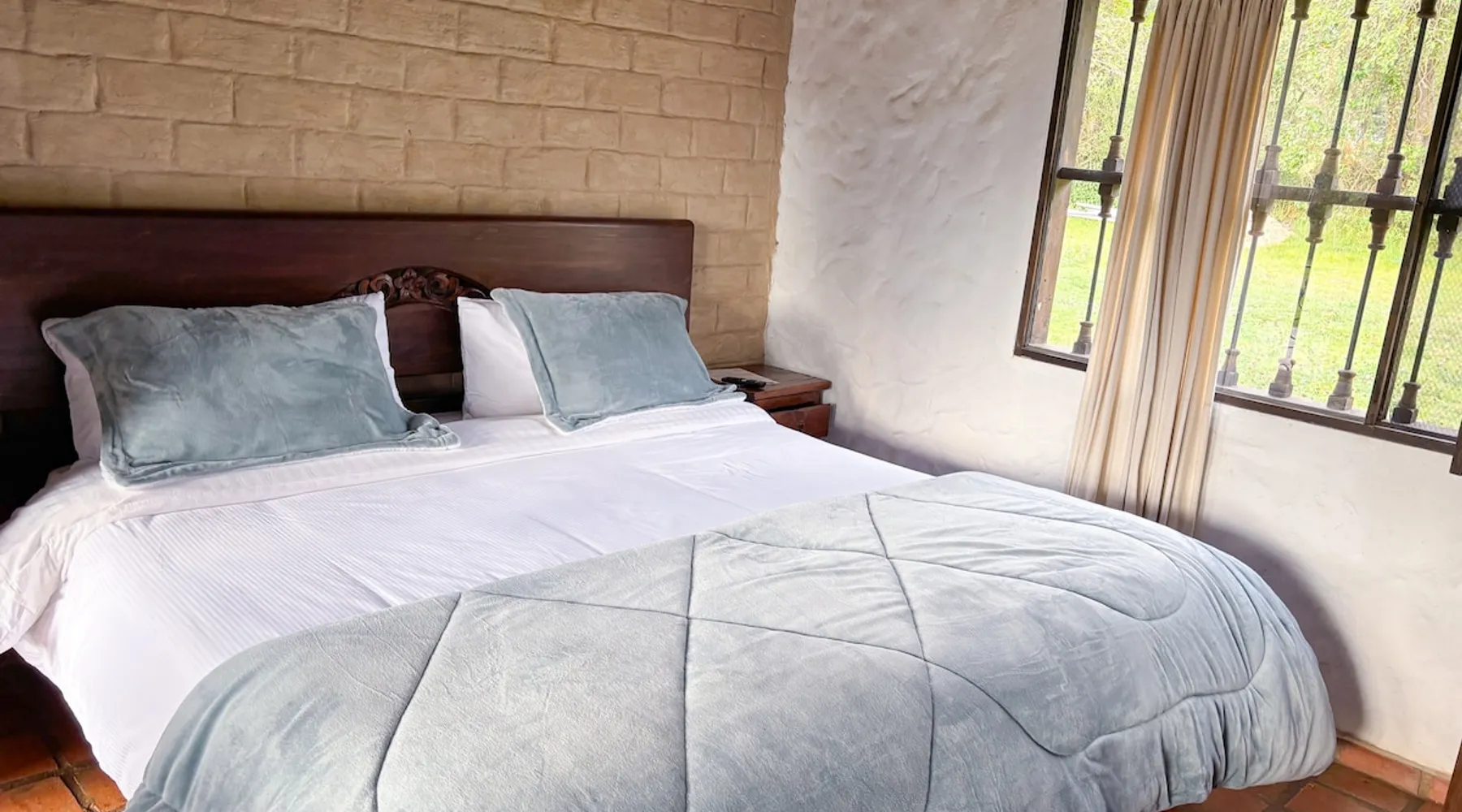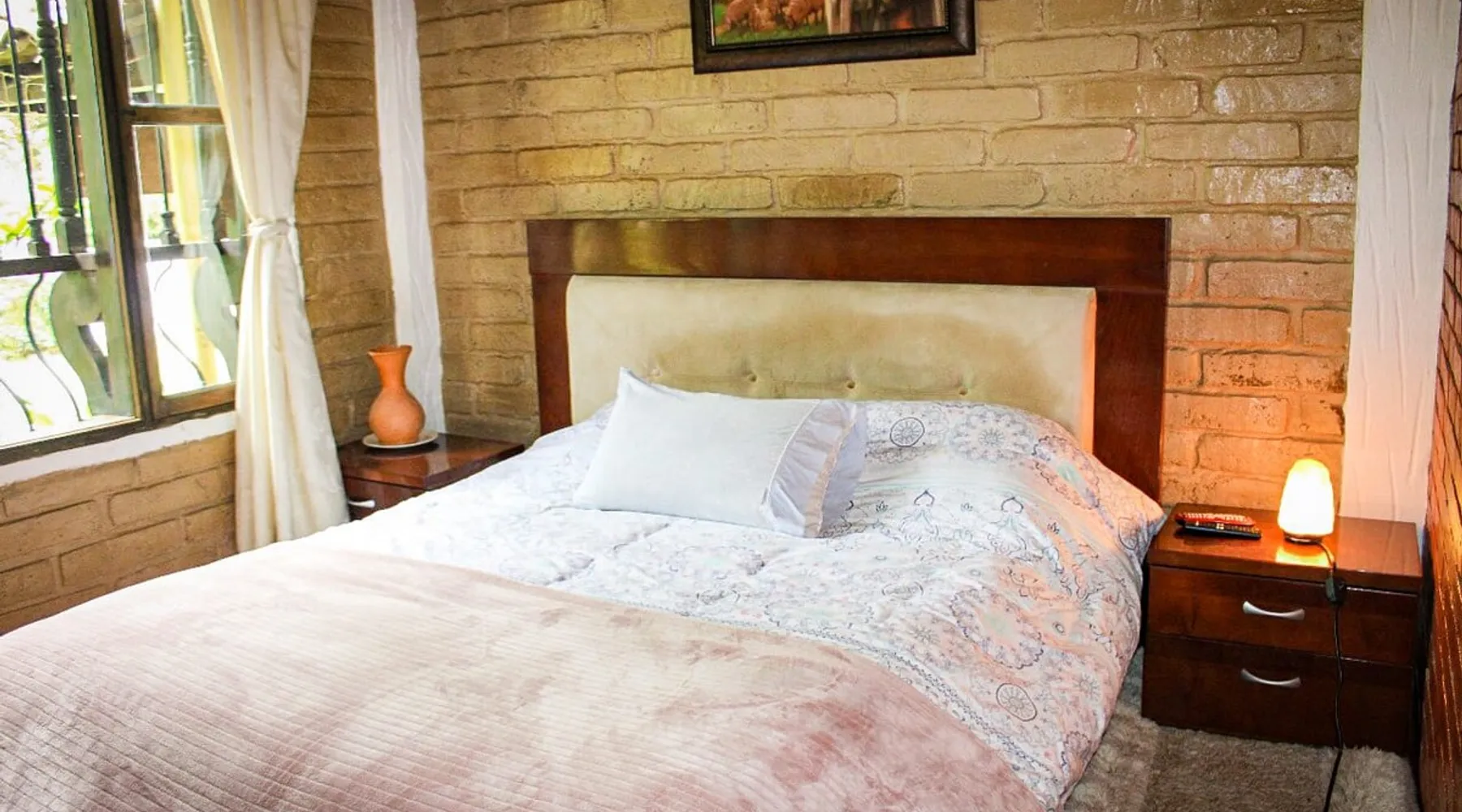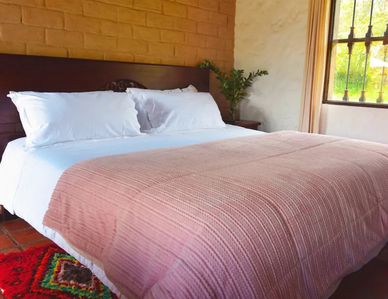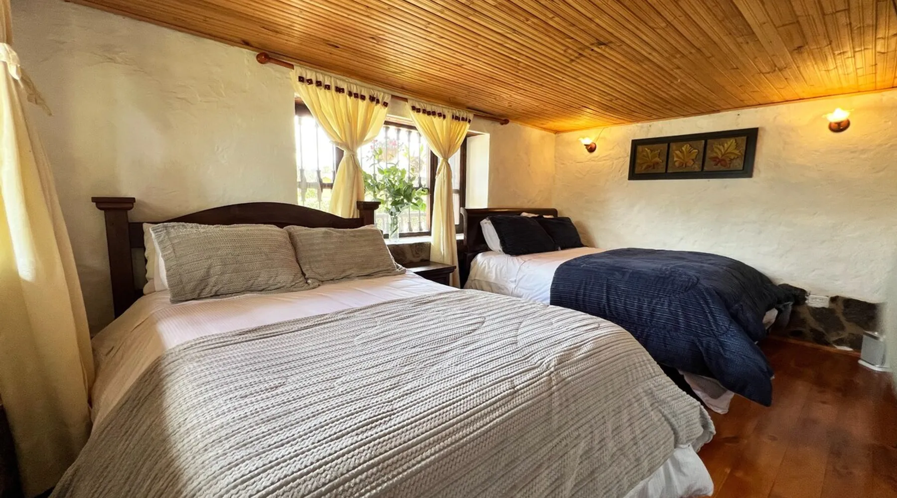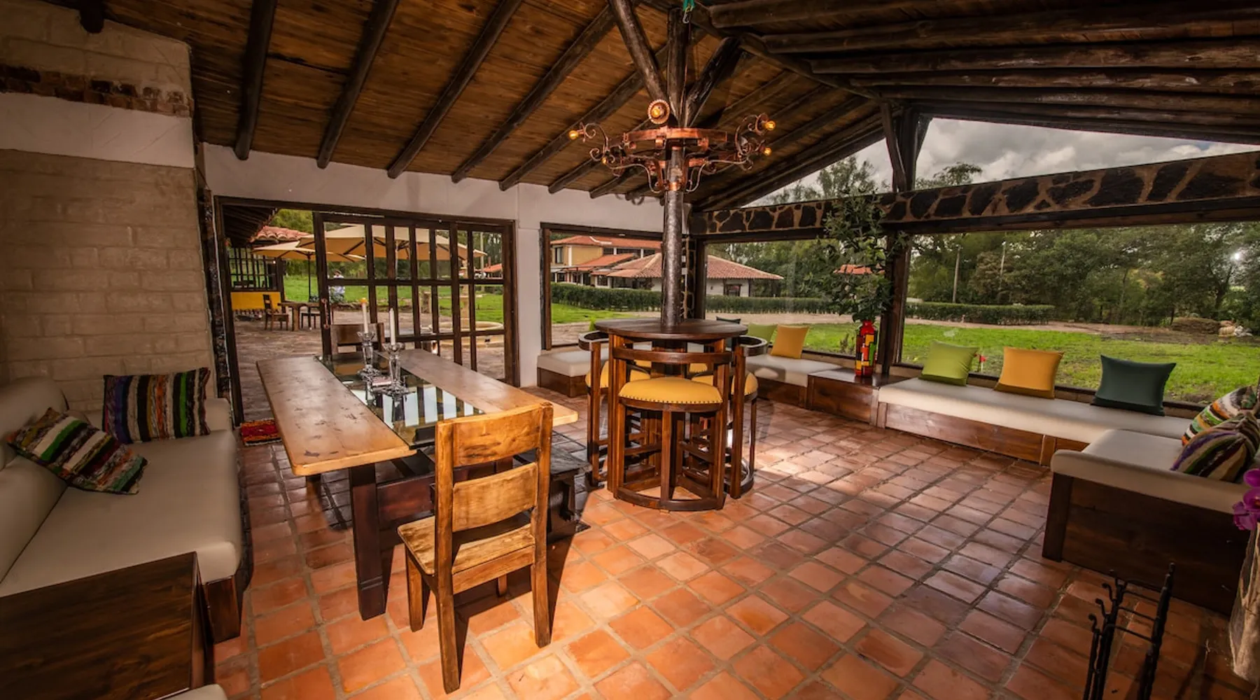 Experience with your loved ones in this wonderful and peaceful place, surrounded by the most beautiful natural landscapes and comfort where you will find everything you need to disconnect and connect to new experiences, where the sound of nature is part of a perfect symphony between birdsong, the whistling of the wind that hits the branches of the trees and the sound of water on the Joshua trail, while observing a beautiful sunset.... The space This is a Estate that has 2 rustic colonial cabins, surrounded by beautiful meadows and gardens, natural water fountains, leafy trees, fruit trees and organic orchard, you will also find ducks, chickens, cows, sheep and a wide variety of free birds, we have available and independent rooms with a private bathroom, hot water and an exquisite decoration and comfort, rustic wooden beds of Punta Larga, our beds are dressed in the highest quality linens of Brissa (Hotel line) of 350 threads, the rooms have views to the east (where the sun rises) and the west (where the sun sets), so you can appreciate the most beautiful landscapes in the morning and in the afternoon, the rooms are very ventilated, the sector is known according to the Muisca culture as "The Valley of the Gods", for its unparalleled natural beauty and a favorable area for stellar visualization, each room has 34-inch TV, WIFI, the property offers sauna service, jacuzzi and relaxing massages, they also find an area for family and social gatherings around a fireplace, our guests can also enjoy a BBQ area, to cook their favorite dishes on the grill and/or wood oven. Guest access The property is available to our smells, except for the house VICTORIA, (first cabin), where the hosts live. Other things to note The sector is very conducive for people who enjoy hiking, walking and cycling, since the valley is very safe and the roads are in very good conditions. We are also in the center of the most emblematic places of Boyacá, such as (Punta Larga vineyard - Guatica Zoo - Templo de Sol - Pantano de vargas - Pueblito Boyacense - Termales de paipa e Iza - Laguna de Tota - Municipios de Nobsa - Monguí - Tibasosa- Corrales, Iza - Sogamoso - Duitama among others). Registration Details 127386