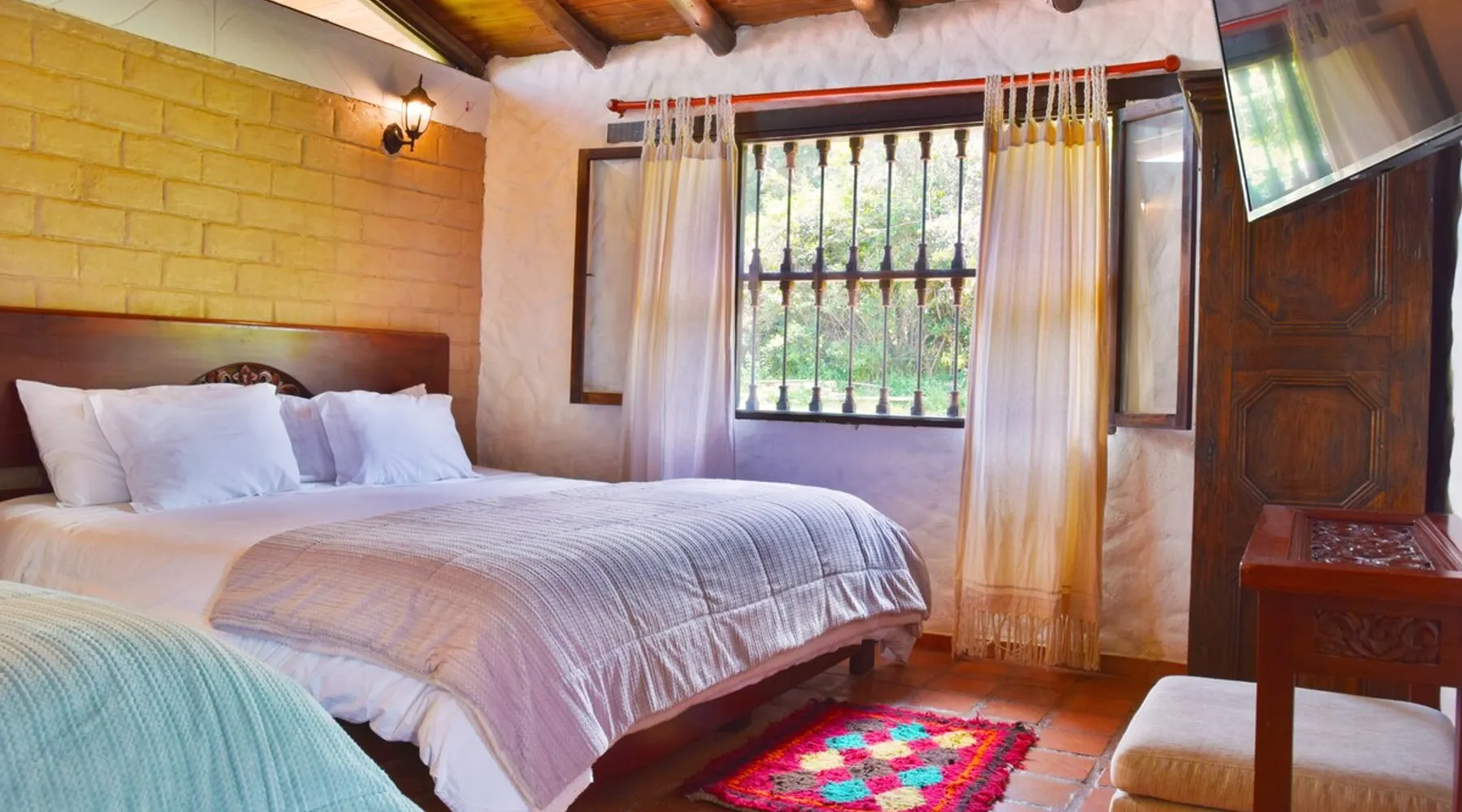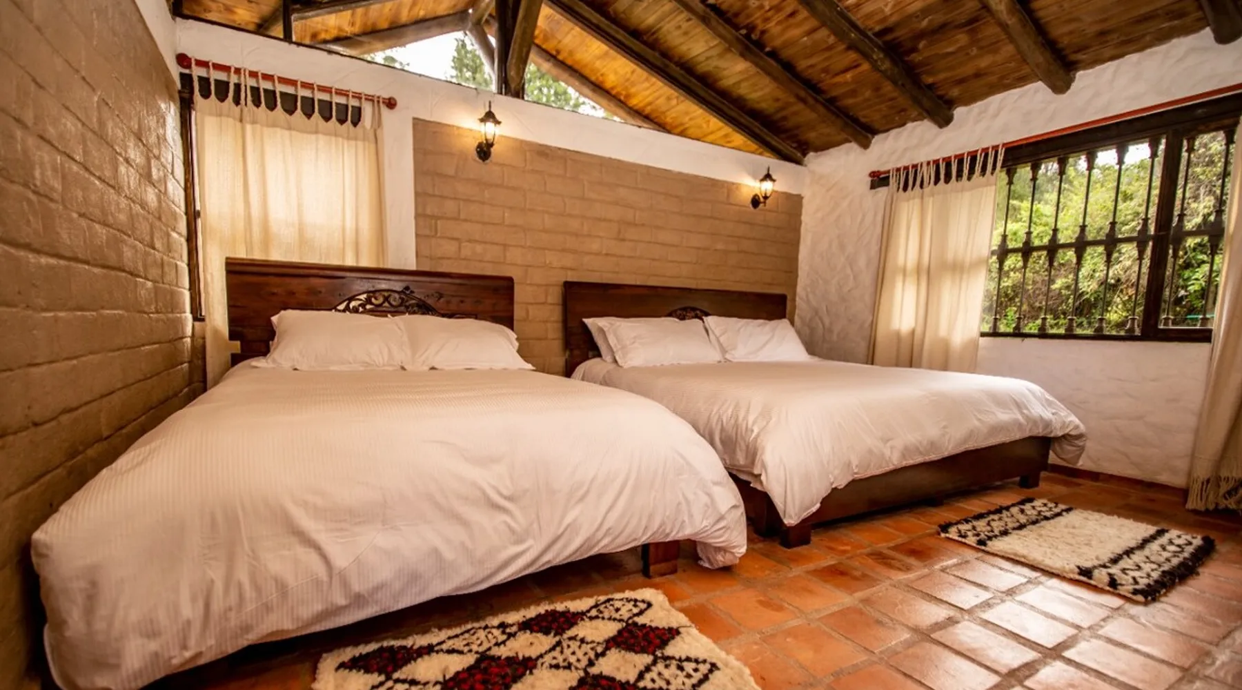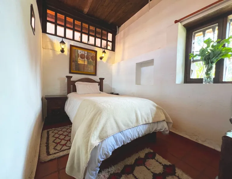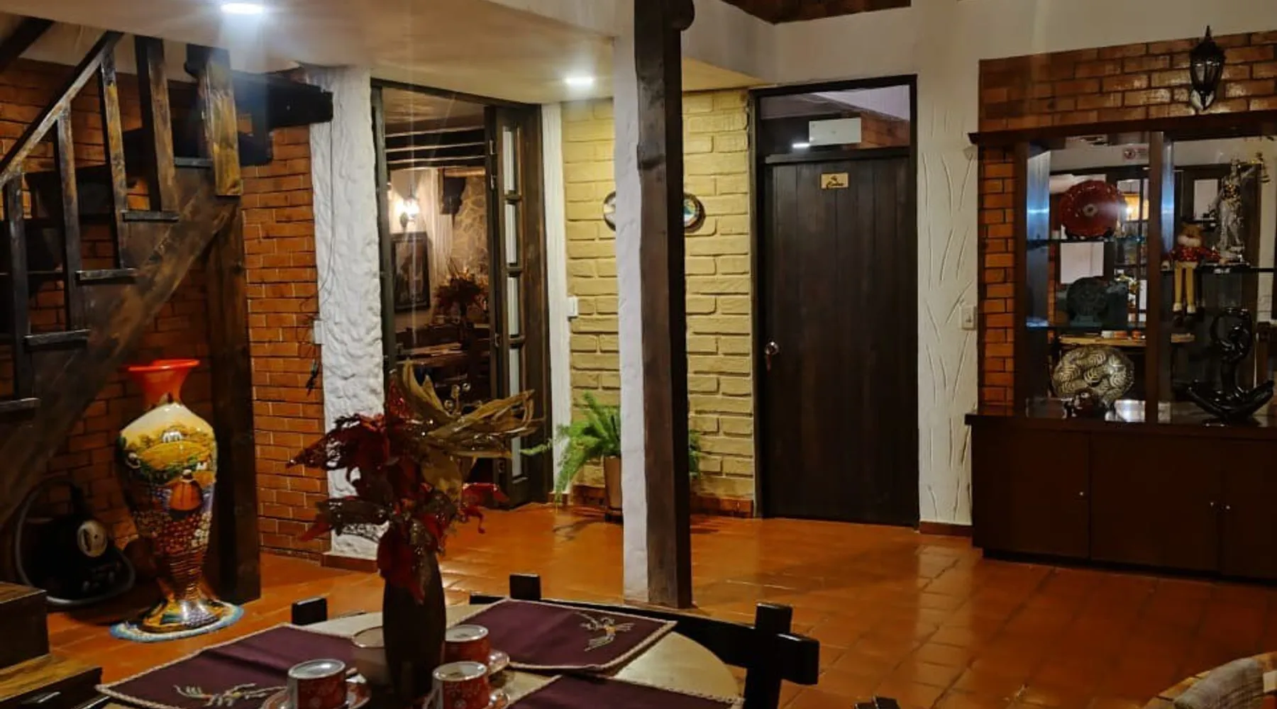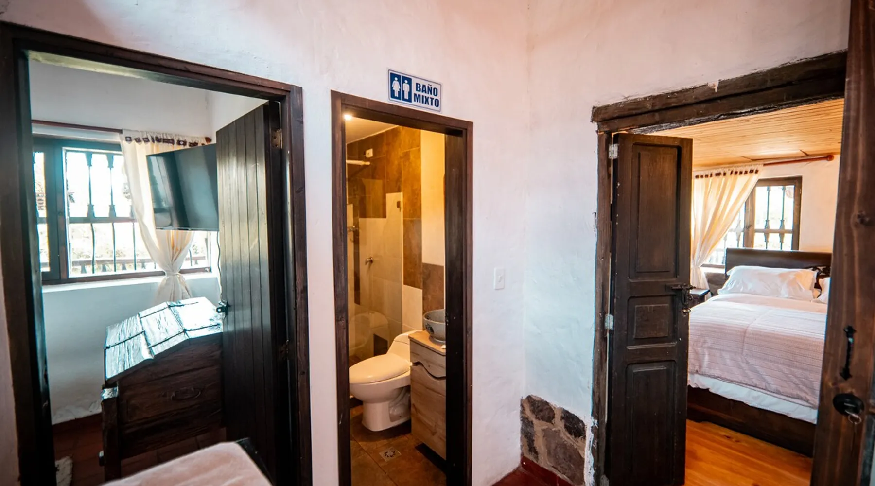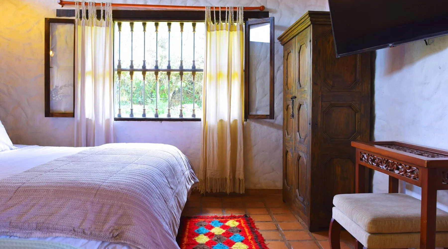 Experience with your loved ones in this wonderful and peaceful place, surrounded by the most beautiful natural landscapes and comfort where you will find everything you need to disconnect and connect to new experiences, where the sound of nature is part of a perfect symphony between birdsong, the whistling of the wind that hits the branches of the trees and the sound of water on the Joshua trail, while observing a beautiful sunset.... The space This is a Estate that has 2 rustic colonial cabins, surrounded by beautiful meadows and gardens, natural water fountains, leafy trees, fruit trees and organic orchard, you will also find ducks, chickens, cows, sheep and a wide variety of free birds, we have available and independent rooms with a private bathroom, hot water and an exquisite decoration and comfort, rustic wooden beds of Punta Larga, our beds are dressed in the highest quality linens of Brissa (Hotel line) of 350 threads, the rooms have views to the east (where the sun rises) and the west (where the sun sets), so you can appreciate the most beautiful landscapes in the morning and in the afternoon, the rooms are very ventilated, the sector is known according to the Muisca culture as "The Valley of the Gods", for its unparalleled natural beauty and a favorable area for stellar visualization, each room has 34-inch TV, WIFI, the property offers sauna service, jacuzzi and relaxing massages, they also find an area for family and social gatherings around a fireplace, our guests can also enjoy a BBQ area, to cook their favorite dishes on the grill and/or wood oven. Guest access The property is available to our smells, except for the house VICTORIA, (first cabin), where the hosts live. Other things to note The sector is very conducive for people who enjoy hiking, walking and cycling, since the valley is very safe and the roads are in very good conditions. We are also in the center of the most emblematic places of Boyacá, such as (Punta Larga vineyard - Guatica Zoo - Templo de Sol - Pantano de vargas - Pueblito Boyacense - Termales de paipa e Iza - Laguna de Tota - Municipios de Nobsa - Monguí - Tibasosa- Corrales, Iza - Sogamoso - Duitama among others). Registration Details 127386