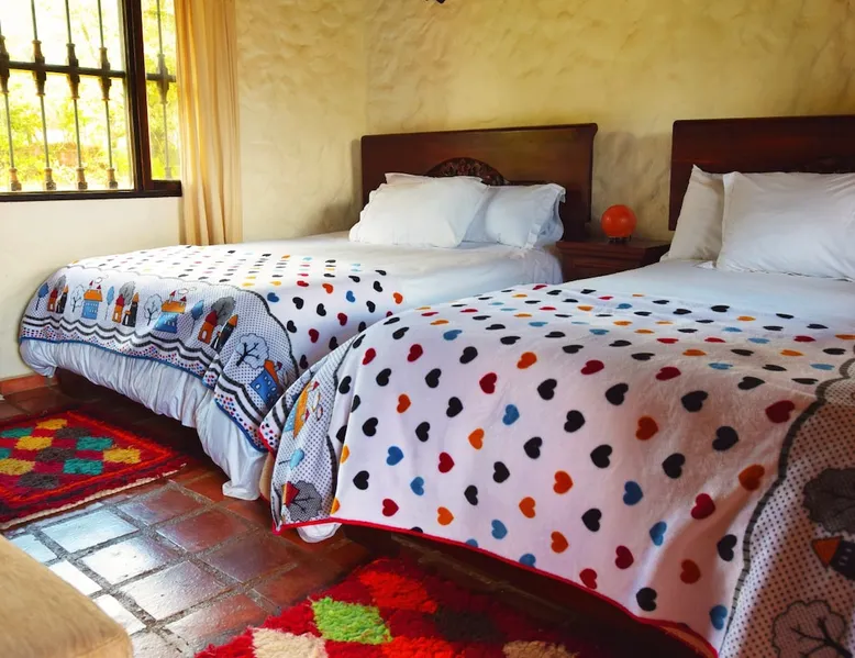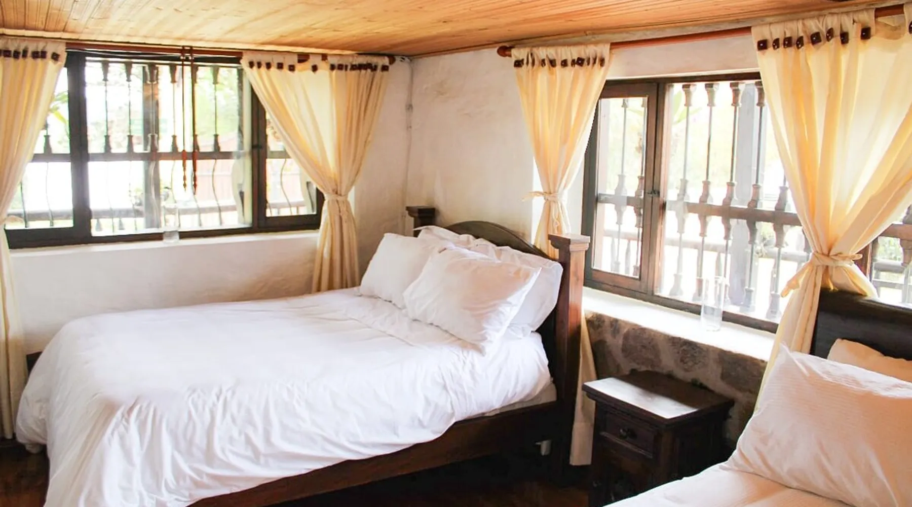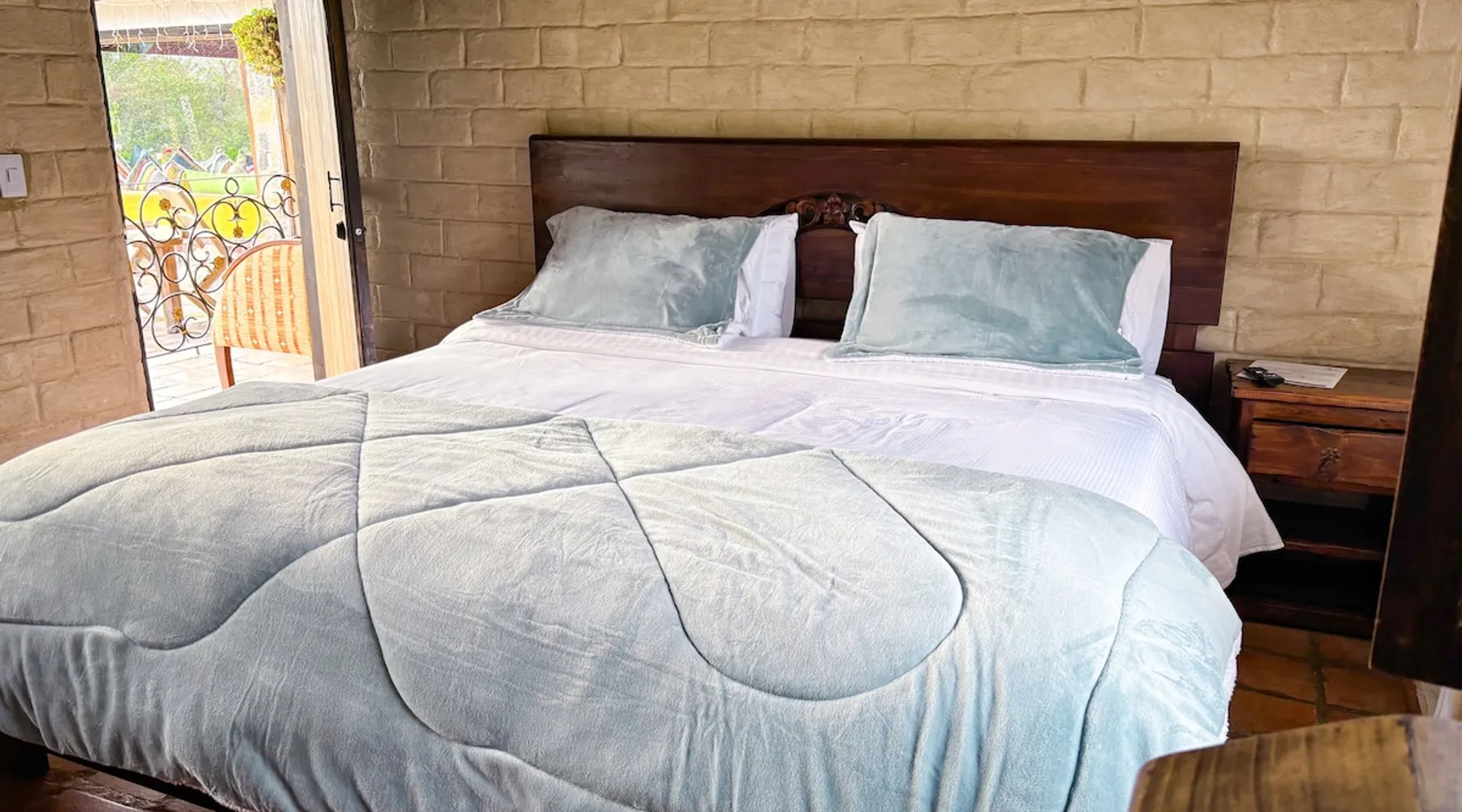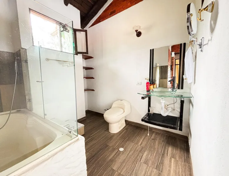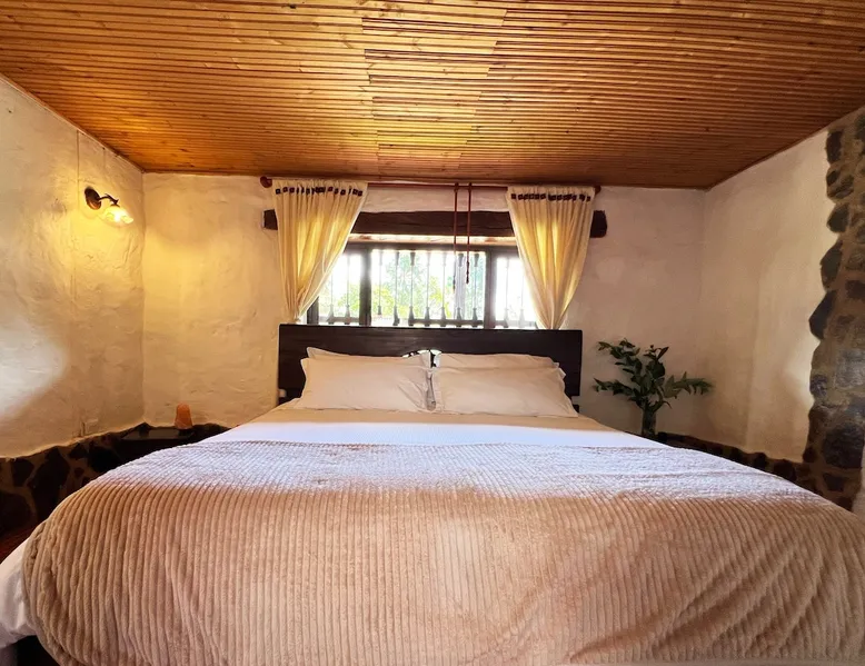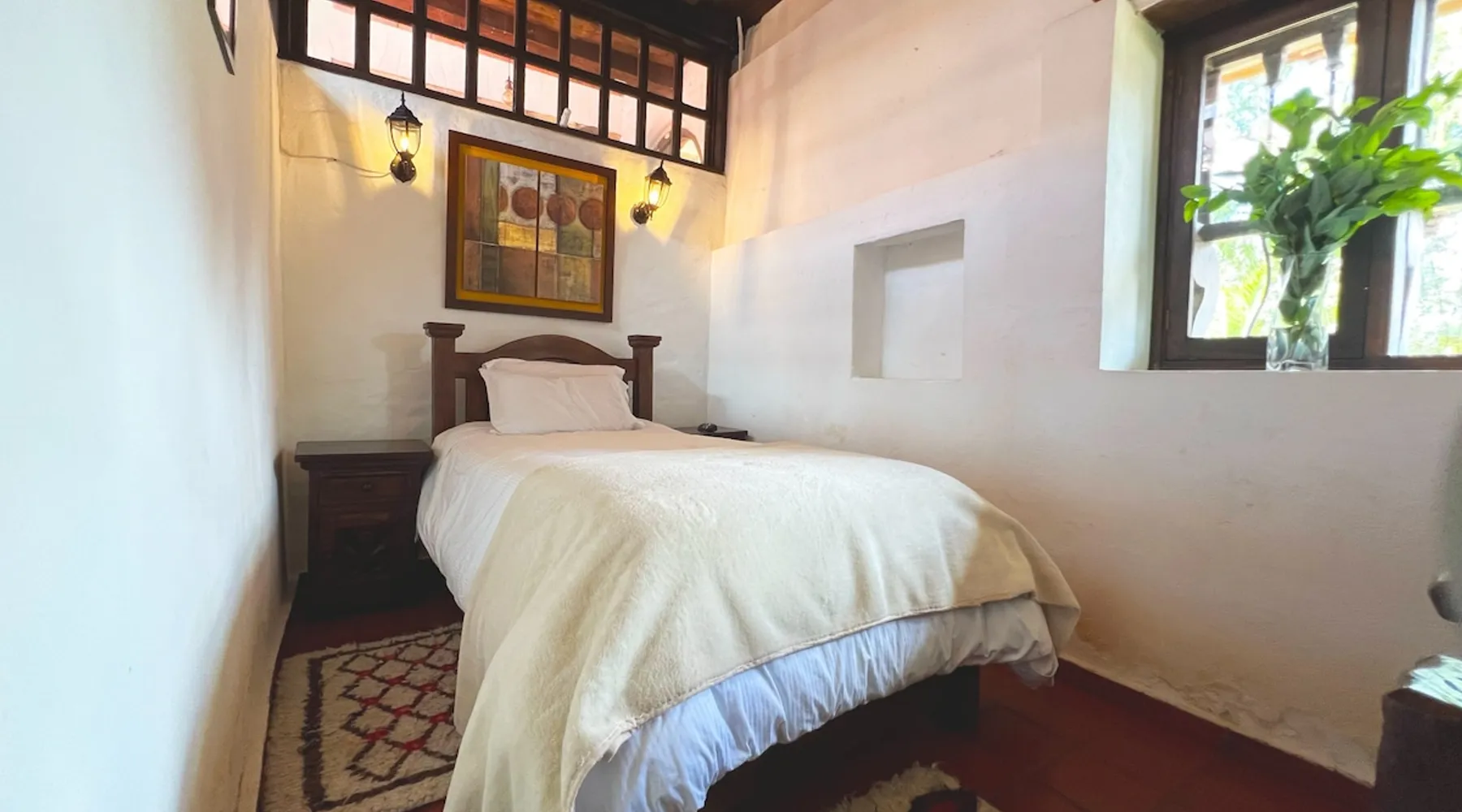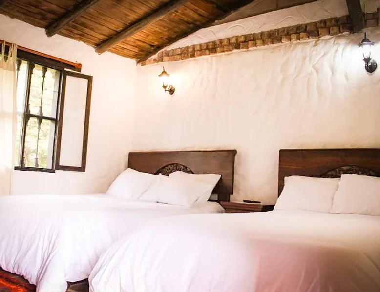Experience with your loved ones in this wonderful and peaceful place, surrounded by the most beautiful natural landscapes and comfort where you will find everything you need to disconnect and connect to new experiences, where the sound of nature is part of a perfect symphony between birdsong, the whistling of the wind that hits the branches of the trees and the sound of water on the Joshua trail, while observing a beautiful sunset.... The space This is a Estate that has 2 rustic colonial cabins, surrounded by beautiful meadows and gardens, natural water fountains, leafy trees, fruit trees and organic orchard, you will also find ducks, chickens, cows, sheep and a wide variety of free birds, we have available and independent rooms with a private bathroom, hot water and an exquisite decoration and comfort, rustic wooden beds of Punta Larga, our beds are dressed in the highest quality linens of Brissa (Hotel line) of 350 threads, the rooms have views to the east (where the sun rises) and the west (where the sun sets), so you can appreciate the most beautiful landscapes in the morning and in the afternoon, the rooms are very ventilated, the sector is known according to the Muisca culture as "The Valley of the Gods", for its unparalleled natural beauty and a favorable area for stellar visualization, each room has 34-inch TV, WIFI, the property offers sauna service, jacuzzi and relaxing massages, they also find an area for family and social gatherings around a fireplace, our guests can also enjoy a BBQ area, to cook their favorite dishes on the grill and/or wood oven. Guest access The property is available to our smells, except for the house VICTORIA, (first cabin), where the hosts live. Other things to note The sector is very conducive for people who enjoy hiking, walking and cycling, since the valley is very safe and the roads are in very good conditions. We are also in the center of the most emblematic places of Boyacá, such as (Punta Larga vineyard - Guatica Zoo - Templo de Sol - Pantano de vargas - Pueblito Boyacense - Termales de paipa e Iza - Laguna de Tota - Municipios de Nobsa - Monguí - Tibasosa- Corrales, Iza - Sogamoso - Duitama among others). Registration Details 127386