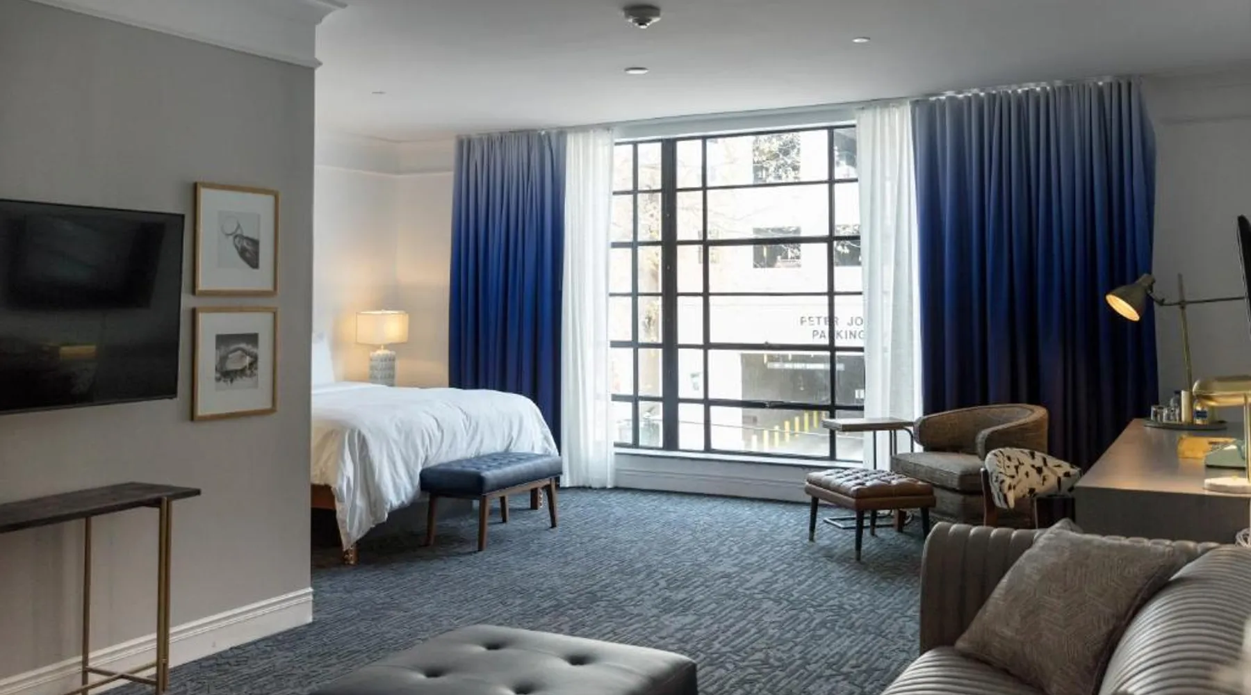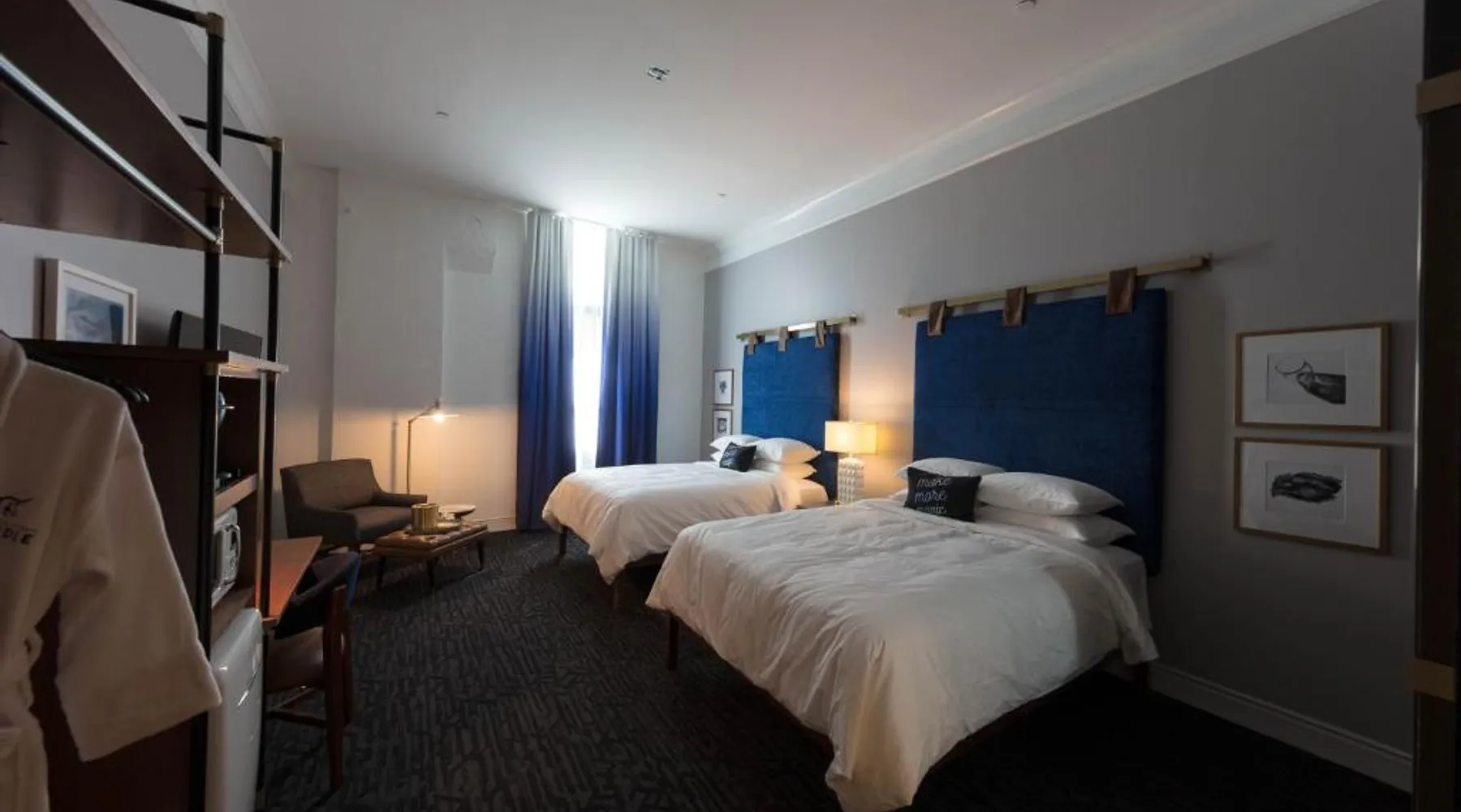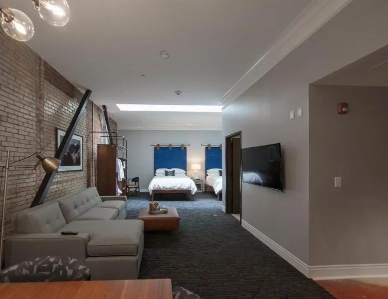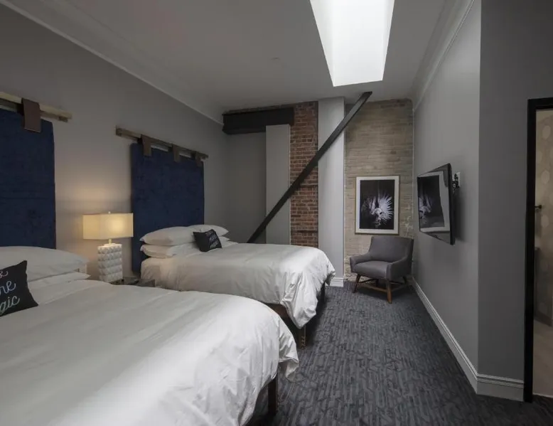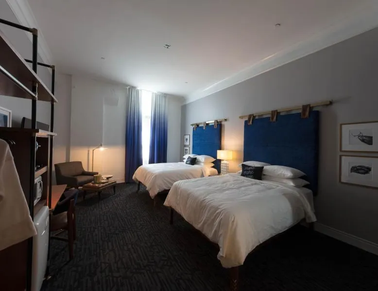 Comfortable Accommodations: Hotel Trundle in Columbia offers air-conditioned rooms with private bathrooms, bathrobes, and free WiFi. Each room includes a tea and coffee maker, refrigerator, and TV. Exceptional Facilities: Guests can enjoy a fitness center, bar, and outdoor seating area. Additional amenities include a lounge, elevator, 24-hour front desk, housekeeping service, and electric vehicle charging station. Prime Location: Located 8.1 mi from Columbia Metropolitan Airport, the hotel is near Columbia Museum of Art (2-minute walk), Robert Mills House and Gardens (2297 feet), and South Carolina State House (less than 0.6 mi). Guest Satisfaction: Highly rated for its attentive staff, excellent breakfast, and convenient location. The spacious double room provides air conditioning, a tea and coffee maker, as well as a private bathroom featuring a walk-in shower and a hairdryer. The double room features a wardrobe, a safe deposit box, a carpeted floor, heating and a flat-screen TV with streaming services. The unit offers 2 beds.