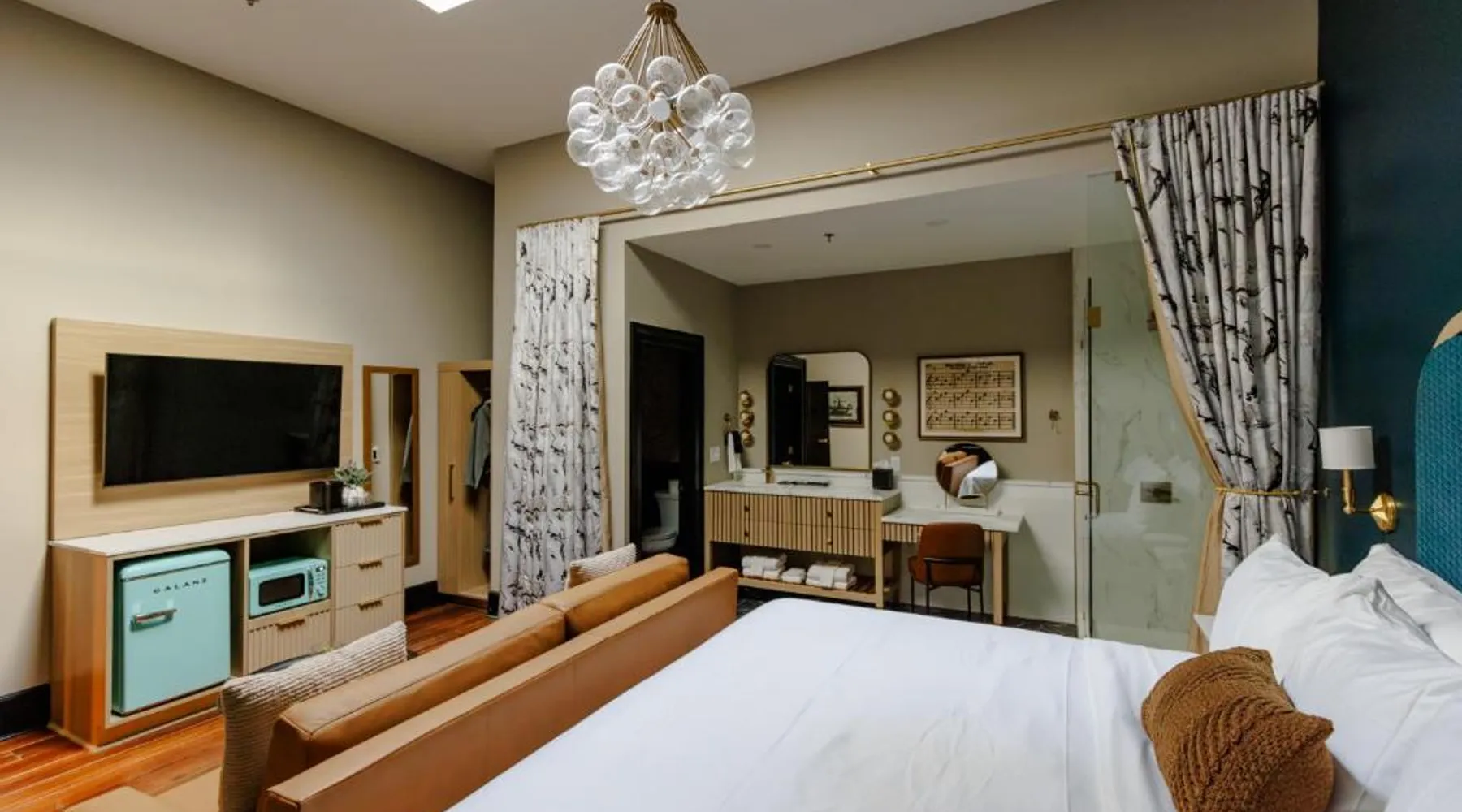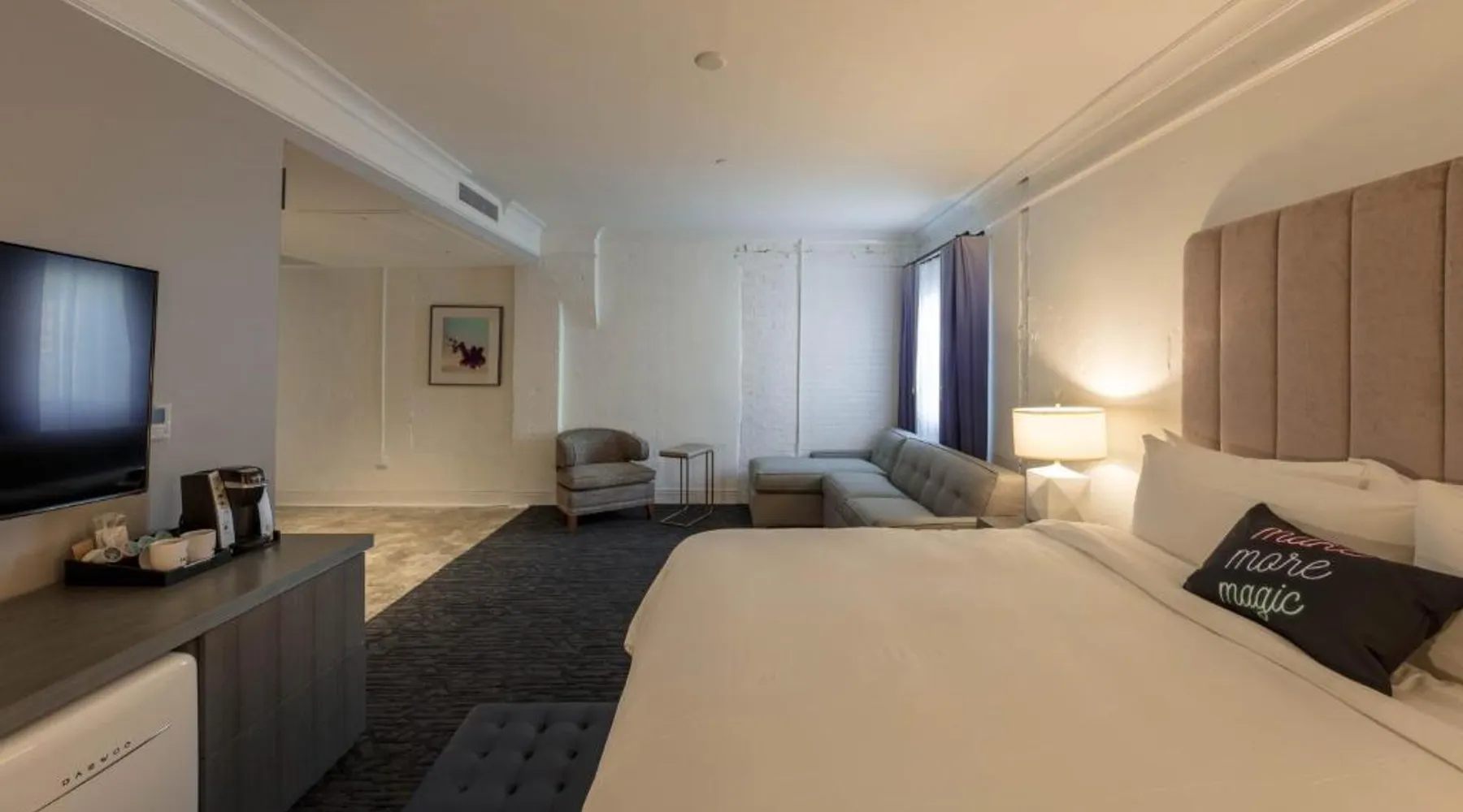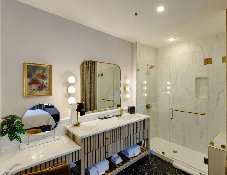 Comfortable Accommodations: Hotel Trundle in Columbia offers air-conditioned rooms with private bathrooms, bathrobes, and free WiFi. Each room includes a tea and coffee maker, refrigerator, and TV. Exceptional Facilities: Guests can enjoy a fitness center, bar, and outdoor seating area. Additional amenities include a lounge, elevator, 24-hour front desk, housekeeping service, and electric vehicle charging station. Prime Location: Located 8.1 mi from Columbia Metropolitan Airport, the hotel is near Columbia Museum of Art (2-minute walk), Robert Mills House and Gardens (2297 feet), and South Carolina State House (less than 0.6 mi). Guest Satisfaction: Highly rated for its attentive staff, excellent breakfast, and convenient location. The spacious double room provides air conditioning, a tea and coffee maker, as well as a private bathroom featuring a walk-in shower and a hairdryer. The double room features a wardrobe, a safe deposit box, a carpeted floor, heating and a flat-screen TV with streaming services. The unit offers 2 beds.