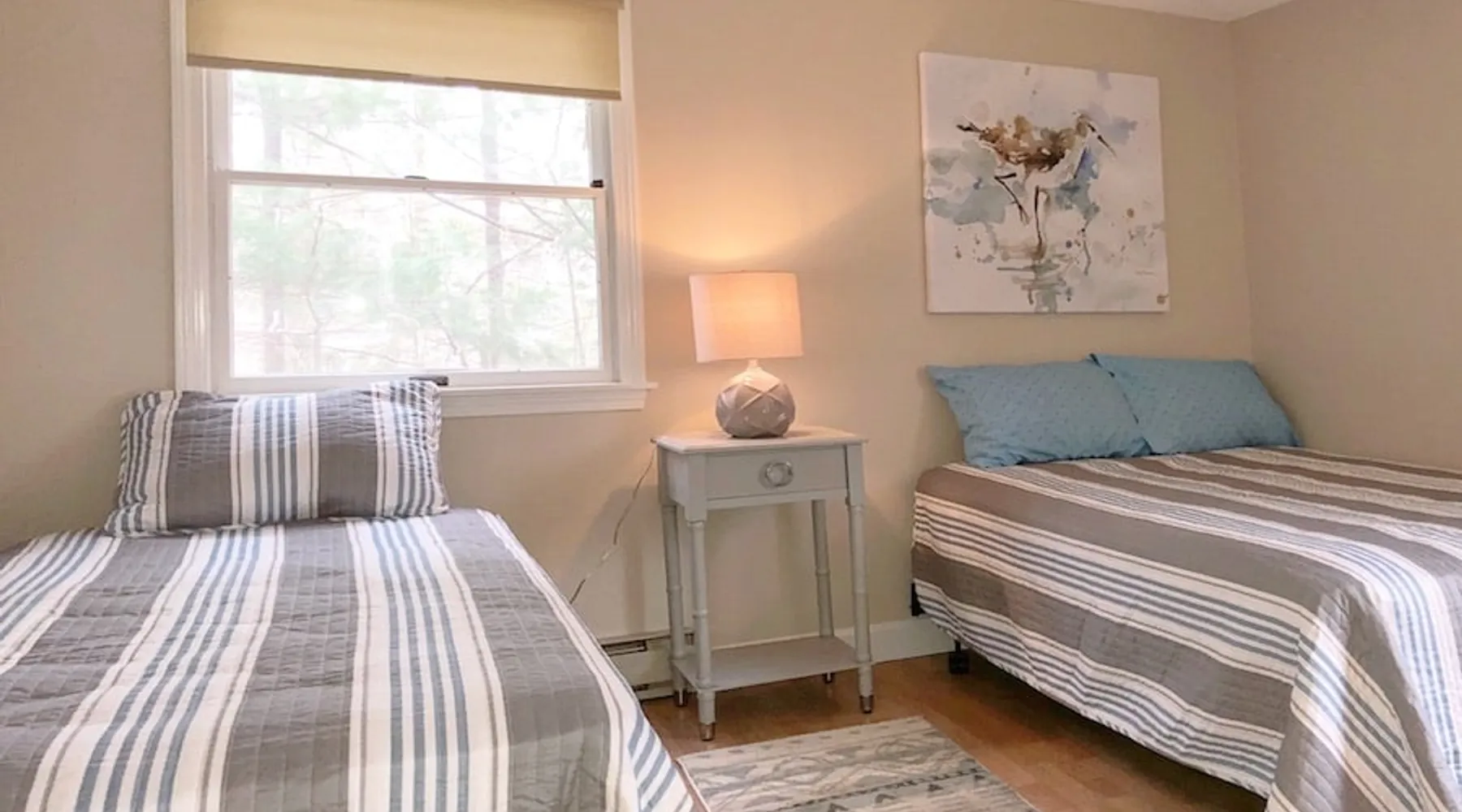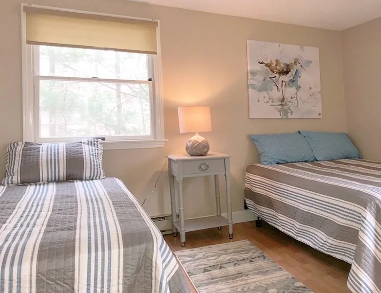 A cute comfortable 4 bedroom Cape-style home in the desirable Carleton Shores neighborhood. Carleton Shores is known for its lovely homes, dog-friendly association beach, and walkable quiet streets. A Beach Association Pass is provided at no extra charge! Come and enjoy this peaceful retreat in East Sandwich. The space A cute 4-bedroom cape-style home with central AC in the desirable Carleton Shores neighborhood, with use of private association beach included. This home is tucked away on a large private lot with a porch for grilling and relaxing. Step inside to find a comfortable living room and a spacious kitchen/dining area that leads to the outdoor living area. First floor has two bedrooms and the upstairs has been finished to include two more bedrooms and a second full bath. Bedroom 1- Full and Twin (1st Floor) Bedroom 2- Queen and Twin (1st Floor) Bedroom 3- King (2nd Floor) Bedroom 4- 2 Twins (2nd Floor) Other things to note Sheets and towels are not included and may be brought or rented locally. Look up Dune Tootin linen rentals for pricing.