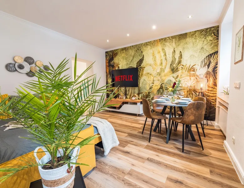 We – Dirk & Maren – cordially invite you to experience our stylish apartment in the heart of Krefeld. 🌟 Modern 2-room apartment in the Nature Art Dream style – contemporary comfort meets natural flair. Ideal for up to 4 people. 🌟 Close to the center – perfect for couples, families, small groups, business travelers or visitors to the Yayla Arena & Limbus Escape Center. 🌟 An ideal starting point for shopping, relaxing or for excursions to Düsseldorf, Cologne or Oberhausen. The space ✨We've thought of everything to make you feel completely comfortable😊 ✍️ What you can expect from us – lovingly furnished & with an eye for detail: ✪ Entrance area – welcoming & organized: ✓ WiFi - Stand ✓ Coat hooks ✓ Umbrellas ✪ Bedrooms – restful sleep guaranteed: ✓ King-size bed (180×200 cm) with pocket spring mattresses ✓ Soft cotton bed linen ✓ Nightstands with stylish lamps ✓ Electric shutters for darkening ✓ Shelf, clothes rail & hanger ✓ Travel cot with mattress (upon request) ✓ Wall mirror ✓ LED fairy lights & candles for a feel-good atmosphere Battery ✓ vacuum cleaner ✪ Living room – relax & enjoy: ✓ Sofa bed with gel topper (for up to 2 guests) ✓ Electric shutters ✓ 55-inch 4K smart TV with Netflix & Waipu TV Premium ✓ Books & board games ✪ Kitchen – fully equipped & ready for your cooking skills: Cooking & baking: ✓ Induction hob & convection oven ✓ Pans, pots, kitchen utensils, baking accessories ✓ Spices, oil & vinegar ✓ Microwave & blender Coffee & tea: ✓ Coffeemaker & Tassimo capsule machine ✓ Coffee powder, pods & various teas ✓ Kettle & Toaster Other amenities: ✓ Refrigerator-freezer ✓ Dishwasher incl. tabs ✓ Extensive tableware & glasses ✓ Breakfast board, cutting board ✓ Dishcloths, kitchen roll, waste separation ✓ First aid kit & fire blanket ✪ Dining area – enjoy together: ✓ Dining table with 4 seats ✪ Bathroom – fresh & well-maintained: ✓ Rain shower & toilet (including paper) ✓ Shower gel, shampoo, conditioner, hand soap ✓ Towels in various sizes ✓ Mirrors & Makeup Mirrors ✓ Cosmetic wipes & Q-tips ✓ Washing machine with gel pads ✓ Iron, ironing board & laundry rack ✪ Outdoor area – practical & close: ✓ Free parking directly on the street ✓ Large public parking lot nearby Garbage can✓ area ✪ General – smart & safe: ✓ Self check-in with digital lock ✓ Heating ✓ High-speed Wi-Fi (up to 74 Mbps) 🛜 ✓ Smoke & CO detectors ✓ Intermediate cleaning on request (for an extra charge) 💬 Any questions or requests? Whatever you need, we're just a message away. Simple, warm & always with a smile💛😊 📅Book now and secure your stay We look forward to seeing you🤗 have a nice stay💞 Guest access 🌟 The apartment is all yours during your stay – including all the amenities to feel comfortable😊 Other things to note 🧼 Spotlessly cleaned – for your feel-good stay 🌟 Professional final cleaning is already included in the total price – there are no additional costs for you. 🌟 You can expect a freshly made bed, fluffy towels and an apartment that has been thoroughly cleaned, disinfected and lovingly prepared for you. 🌟 Cleanliness you can count on - so your stay starts relaxed and carefree. There are many things to discover in Krefeld: 🌟 Explore the picturesque city forest for relaxing walks and cycling. Visit the German Textile Museum or the Kaiser Wilhelm Museum for impressive art and history. 🌟 Enjoy the nature in the Botanical Garden or relax on Lake Elfrather. Downtown offers charming cafes, boutiques, and historic buildings for a great shopping and culture experience. 🌟 The Yayla Arena is a highlight for sports and concert lovers, and the Limbus Escape Center makes for exciting adventures. 🌟 See Guidebooks for more recommendations in your Airbnb app Happy exploring😊