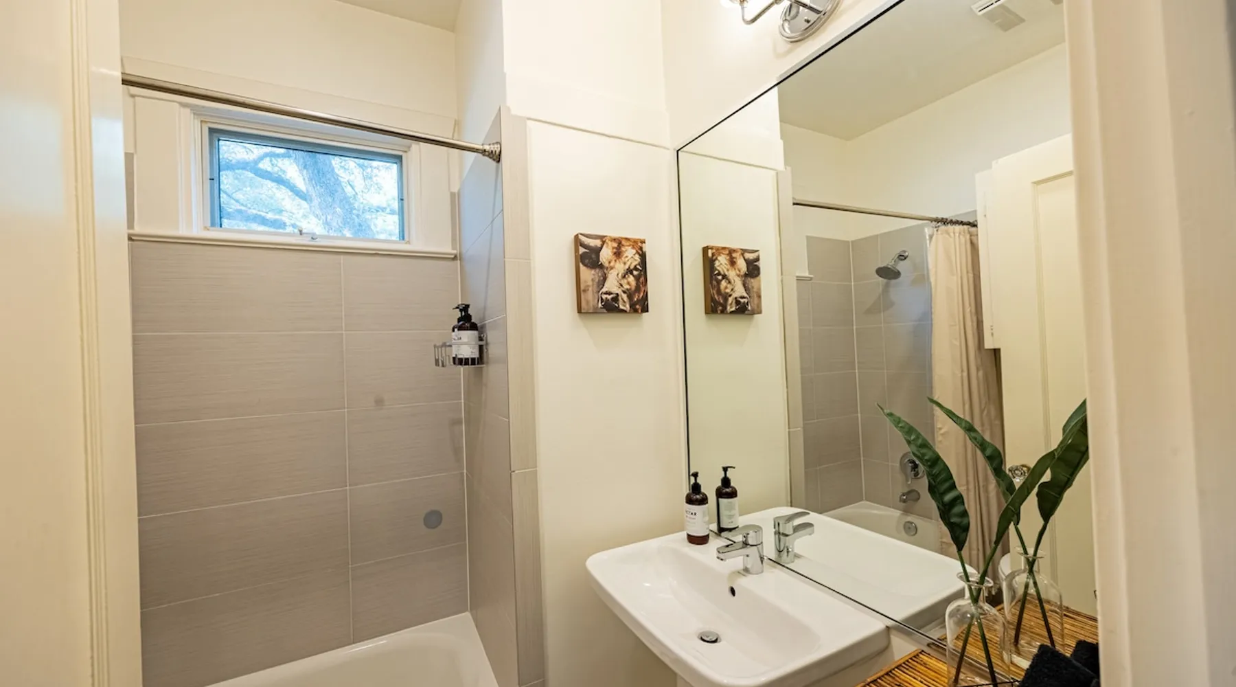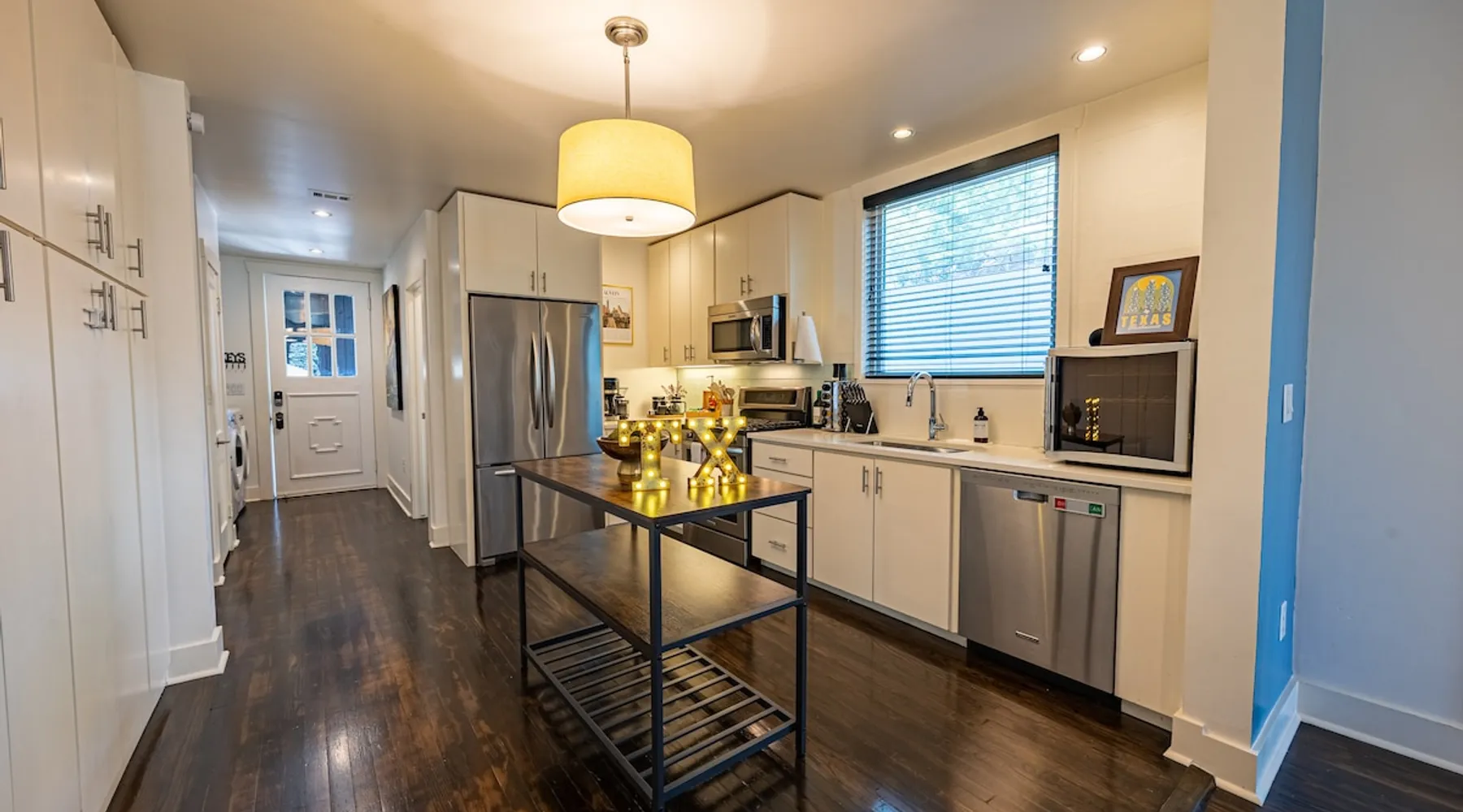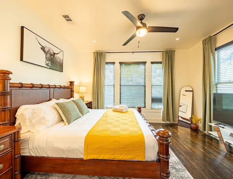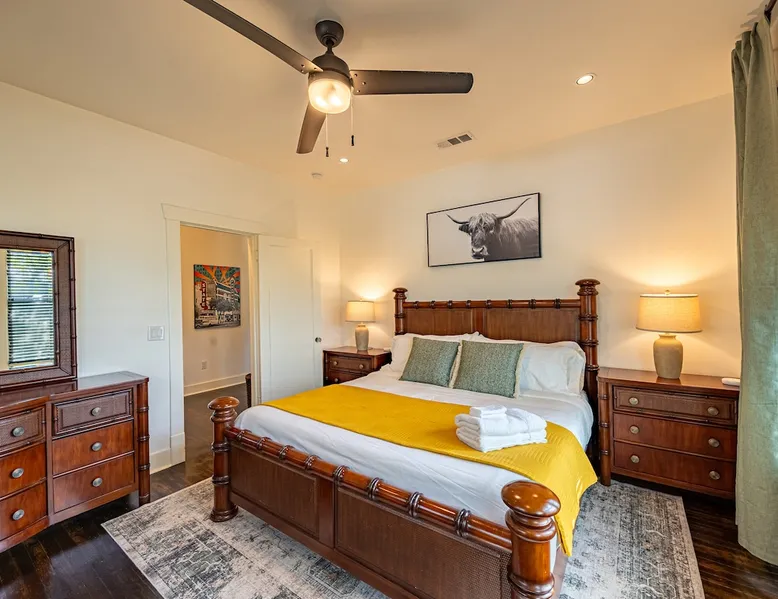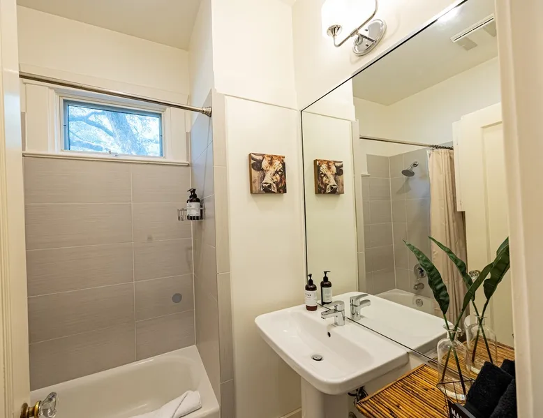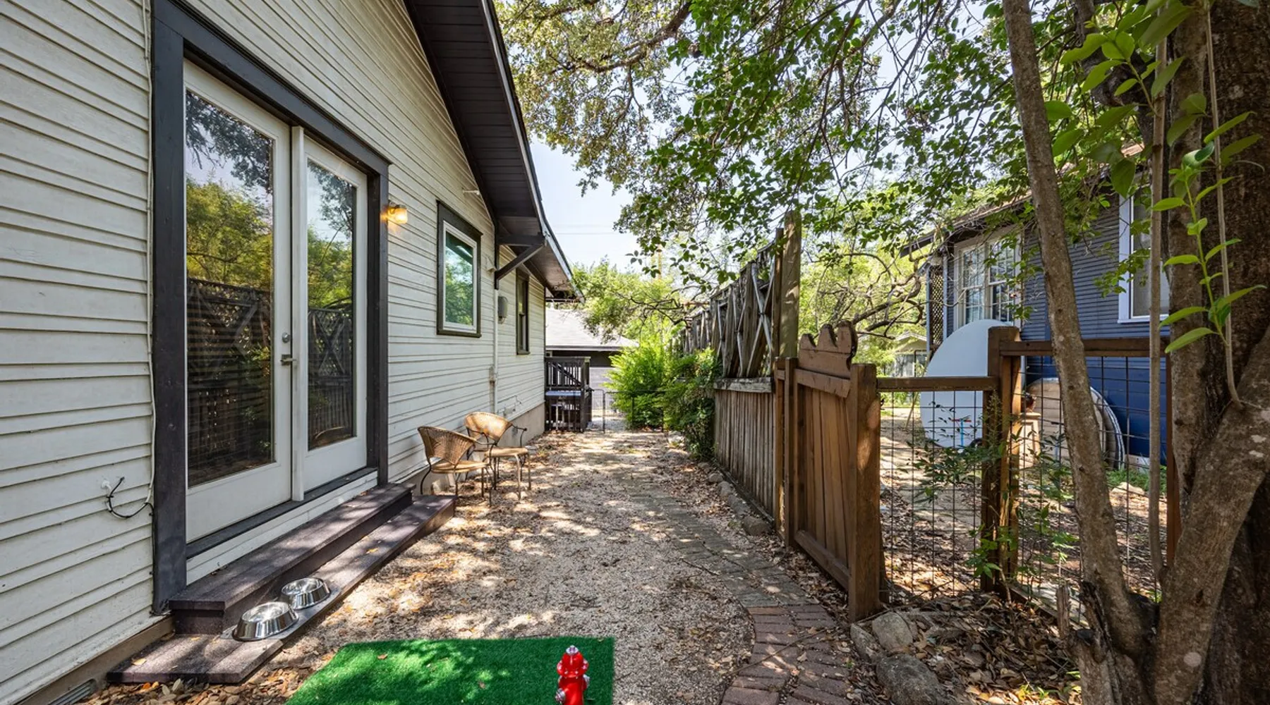Welcome to your home away from home! Our Travis Heights home is walking distance from South Congress & less than half a mile to downtown. Set up for long term stays but works great as a short term stays, too! Private off-street parking, full laundry, outdoor seating, grill, fenced area for your furry friend, and lots more! Featuring two full baths, 2 king beds, an office / futon room, and a well stocked kitchen - you'll settle in & never want to leave! The space KEY AMENITIES / DETAILS: ✓ Check-out process: Chore-Free Checkout® ✓ Check-in process: Keyless entry with code ✓ Check-in technology: Tech-enabled guest portal featuring swipe to unlock, digital guide, more! ✓ 3 Bedroom house ✓ 2 Full bathrooms ✓ Sleeps 5 in 2 kings & 1 futon ✓ Internet: High speed 300mbps service ✓ Parking: Private covered parking for 2 vehicles ✓ Laundry: HE large capacity washer/dryer ✓ Kitchen: Well stocked for cooking + separate dining area ✓ Work from home: Private desk in third bedroom ✓ Tech: Smart enabled speaker; 65" HDTV in living room, 2x 43" 4K smart TVs in bedrooms ✓ HVAC: Central Air conditioning & forced air heating ABOUT HOSTWISE STAYS: As one of the country's top-ranked professional hosts, we are obsessed with quality service & amenities. Like high end hotels (but better!), we have simple check out procedures, we only use professional cleaners, and we're available 24 / 7 / 365, no matter what. We know your time away from home is valuable - whether for work or for play, we are committed to providing our valued guests with a seamless lodging experience. We are local operators in every market - don't trust your stay to someone far away! CLEANING PROCEDURES: Now more than ever it is important to stay in a professionally cleaned space. We don't outsource our cleaning - our cleaners are professionally trained with a passion for what they do! DETAILED FEATURES: ➤ 3 BR / 2BA ~1,400sq ft. single family, single story home with private entrance ➤ Sleeps 5 - Two 12" king "just right" memory foam mattresses, one futon ➤ Parking: Off-street, covered parking for up to two vehicles ➤ Workspace: One desk in the futon room - great for those work from home days ➤ Outdoor Space: Features a fully fenced in area for your furry friend + outdoor dining tab & grill ➤ Bathroom: Two full baths - one walk in shower off one bedroom, the other with a shower + tub off the second bedroom ➣ Also includes blow dryer, linens, premium toiletries, etc. ➤ Technology + Security: External camera + non-recording decibel meter, for party prevention ➣ Smart lock with random code generation + digital guest portal (optional) ➣ Smart speaker enabled - with your voice, play music, ask about the weather, etc. ➤ Entertainment: 65" smart TV in living room, 43" smart TVs in both bedrooms ➣ Most apps are free to use and / or you are able to use your cable provider's login info for "paid" apps (ESPN, HBO, Showtime, Netflix, etc.). ➤ Internet: High speed 300mbps connection. Work from home with high speed! ➤ Kitchen: The kitchen is fully stocked for cooking, with Kitchenaid appliances, quality pots & pans, sharp knives, silicone utensils, toaster, microwave, dishwasher, glassware, plates, etc. ➤ Coffee & Tea: Cuisinart drip coffee maker, French press, burr grinder, tea kettle, and premium tea selection is provided ➤ Dining: Seating for 6 at the dining room table ➤ Laundry: High efficiency large capacity washer/dryer ➤ Air Conditioning / heating: central air & heat ➤ Pets: One up to 50lb dog permitted ➤ No Smoking indoors PROPERTY LAYOUT: If entering from the covered parking area, you'll unlock the door with your private code on our smart lock. On the right is the washer & dryer, and to the left is the small bedroom / desk area with a futon. A few steps ahead to your right is the first bedroom, complete with an ensuite bathroom, including walk in shower. Back to the hallway, you'll enter into our spacious, well stocked kitchen. Ahead is the dining area & living room. Off the dining room, the French doors can be opened up to the outdoor, fenced off patio, complete with grill & outdoor dining - perfect for those TX evenings! Off of the dining room you'll find the second bedroom, also with an attached bathroom - this one features a tub + shower combo. The second entrance can be accessed via the living room. Guest access You will have full access to our home & all of its amenities.