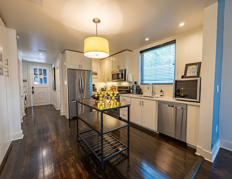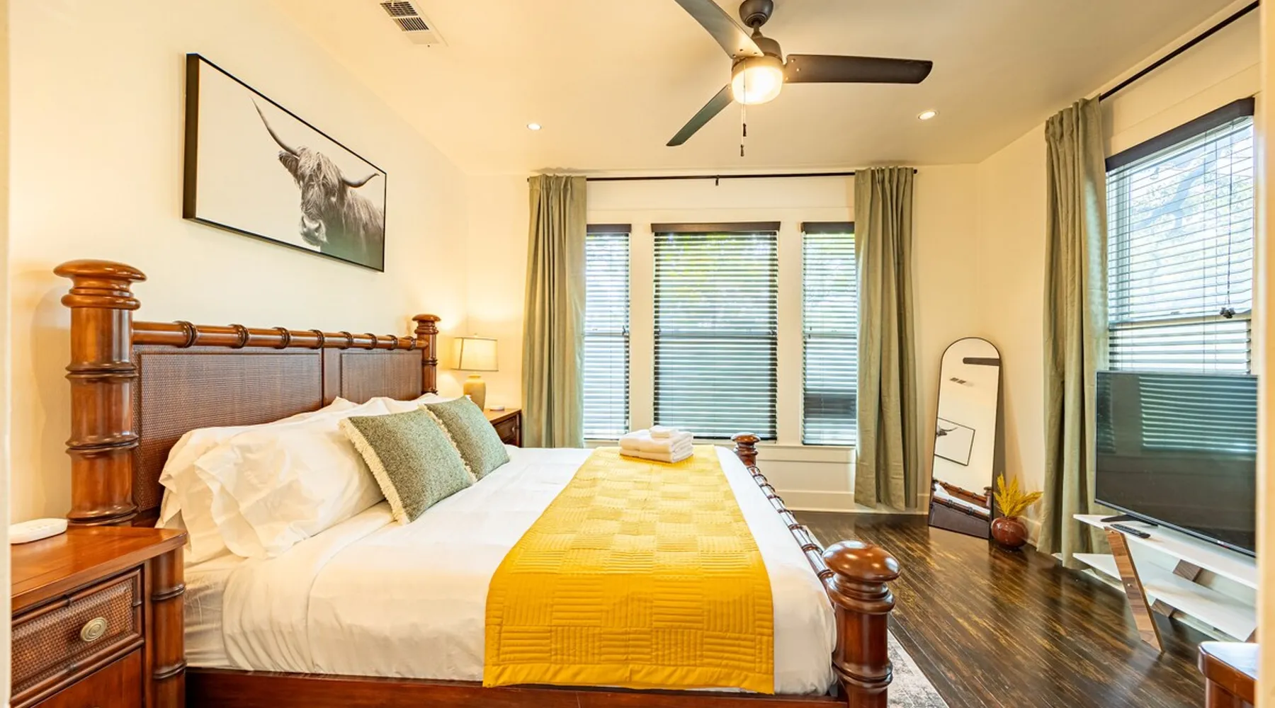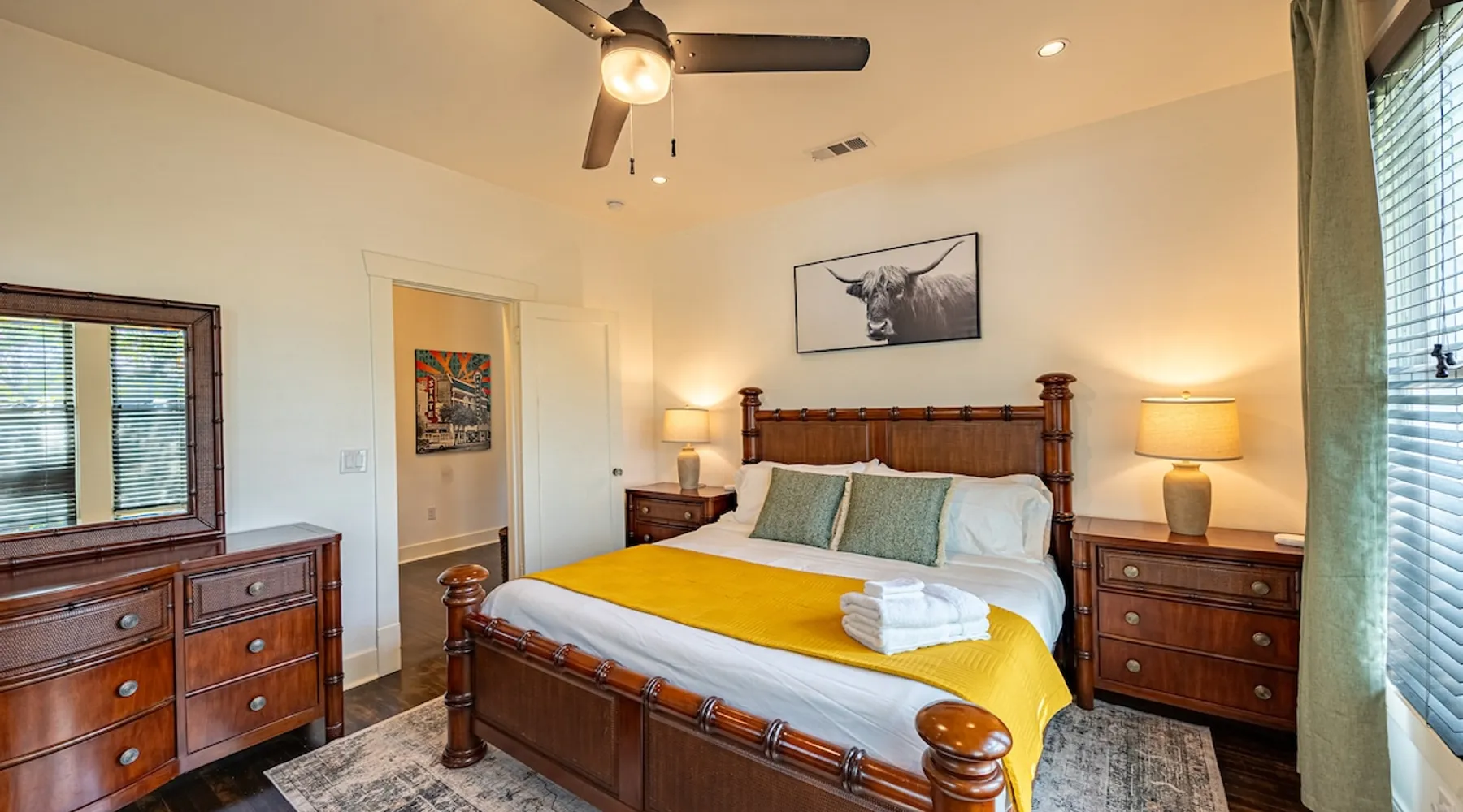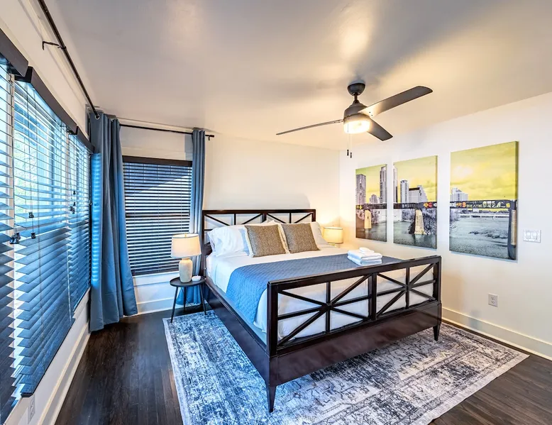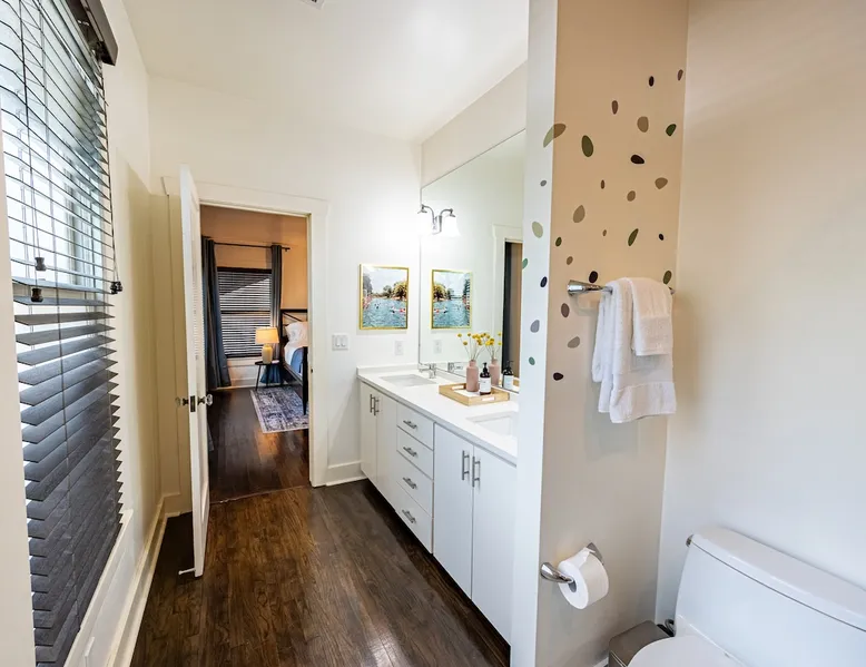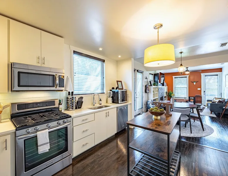 Welcome to your home away from home! Our Travis Heights home is walking distance from South Congress & less than half a mile to downtown. Set up for long term stays but works great as a short term stays, too! Private off-street parking, full laundry, outdoor seating, grill, fenced area for your furry friend, and lots more! Featuring two full baths, 2 king beds, an office / futon room, and a well stocked kitchen - you'll settle in & never want to leave! The space KEY AMENITIES / DETAILS: ✓ Check-out process: Chore-Free Checkout® ✓ Check-in process: Keyless entry with code ✓ Check-in technology: Tech-enabled guest portal featuring swipe to unlock, digital guide, more! ✓ 3 Bedroom house ✓ 2 Full bathrooms ✓ Sleeps 5 in 2 kings & 1 futon ✓ Internet: High speed 300mbps service ✓ Parking: Private covered parking for 2 vehicles ✓ Laundry: HE large capacity washer/dryer ✓ Kitchen: Well stocked for cooking + separate dining area ✓ Work from home: Private desk in third bedroom ✓ Tech: Smart enabled speaker; 65" HDTV in living room, 2x 43" 4K smart TVs in bedrooms ✓ HVAC: Central Air conditioning & forced air heating ABOUT HOSTWISE STAYS: As one of the country's top-ranked professional hosts, we are obsessed with quality service & amenities. Like high end hotels (but better!), we have simple check out procedures, we only use professional cleaners, and we're available 24 / 7 / 365, no matter what. We know your time away from home is valuable - whether for work or for play, we are committed to providing our valued guests with a seamless lodging experience. We are local operators in every market - don't trust your stay to someone far away! CLEANING PROCEDURES: Now more than ever it is important to stay in a professionally cleaned space. We don't outsource our cleaning - our cleaners are professionally trained with a passion for what they do! DETAILED FEATURES: ➤ 3 BR / 2BA ~1,400sq ft. single family, single story home with private entrance ➤ Sleeps 5 - Two 12" king "just right" memory foam mattresses, one futon ➤ Parking: Off-street, covered parking for up to two vehicles ➤ Workspace: One desk in the futon room - great for those work from home days ➤ Outdoor Space: Features a fully fenced in area for your furry friend + outdoor dining tab & grill ➤ Bathroom: Two full baths - one walk in shower off one bedroom, the other with a shower + tub off the second bedroom ➣ Also includes blow dryer, linens, premium toiletries, etc. ➤ Technology + Security: External camera + non-recording decibel meter, for party prevention ➣ Smart lock with random code generation + digital guest portal (optional) ➣ Smart speaker enabled - with your voice, play music, ask about the weather, etc. ➤ Entertainment: 65" smart TV in living room, 43" smart TVs in both bedrooms ➣ Most apps are free to use and / or you are able to use your cable provider's login info for "paid" apps (ESPN, HBO, Showtime, Netflix, etc.). ➤ Internet: High speed 300mbps connection. Work from home with high speed! ➤ Kitchen: The kitchen is fully stocked for cooking, with Kitchenaid appliances, quality pots & pans, sharp knives, silicone utensils, toaster, microwave, dishwasher, glassware, plates, etc. ➤ Coffee & Tea: Cuisinart drip coffee maker, French press, burr grinder, tea kettle, and premium tea selection is provided ➤ Dining: Seating for 6 at the dining room table ➤ Laundry: High efficiency large capacity washer/dryer ➤ Air Conditioning / heating: central air & heat ➤ Pets: One up to 50lb dog permitted ➤ No Smoking indoors PROPERTY LAYOUT: If entering from the covered parking area, you'll unlock the door with your private code on our smart lock. On the right is the washer & dryer, and to the left is the small bedroom / desk area with a futon. A few steps ahead to your right is the first bedroom, complete with an ensuite bathroom, including walk in shower. Back to the hallway, you'll enter into our spacious, well stocked kitchen. Ahead is the dining area & living room. Off the dining room, the French doors can be opened up to the outdoor, fenced off patio, complete with grill & outdoor dining - perfect for those TX evenings! Off of the dining room you'll find the second bedroom, also with an attached bathroom - this one features a tub + shower combo. The second entrance can be accessed via the living room. Guest access You will have full access to our home & all of its amenities.