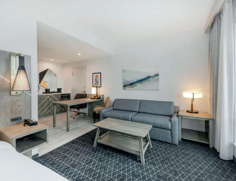 Comfortable Accommodations: Rooms feature air-conditioning, free WiFi, and modern amenities such as a tea and coffee maker, refrigerator, and TV. Interconnected rooms are available for added convenience. Dining Options: The family-friendly restaurant offers American and Italian cuisines with vegetarian, vegan, gluten-free, and dairy-free options. Breakfast includes champagne, local specialties, fresh pastries, and more. Leisure Facilities: Guests can enjoy a fitness center, indoor swimming pool, and outdoor seating area. Additional amenities include a lounge, business area, and child-friendly buffet. Prime Location: Located in Asheville city center, the hotel is 12 mi from Asheville Regional Airport. Nearby attractions include Harrah's Cherokee Center and Basilica of Saint Lawrence. Boating and hiking are available in the surroundings. The studio provides air conditioning, a tea and coffee maker, a seating area, a safe deposit box, as well as a TV with cable channels. The unit offers 2 beds.