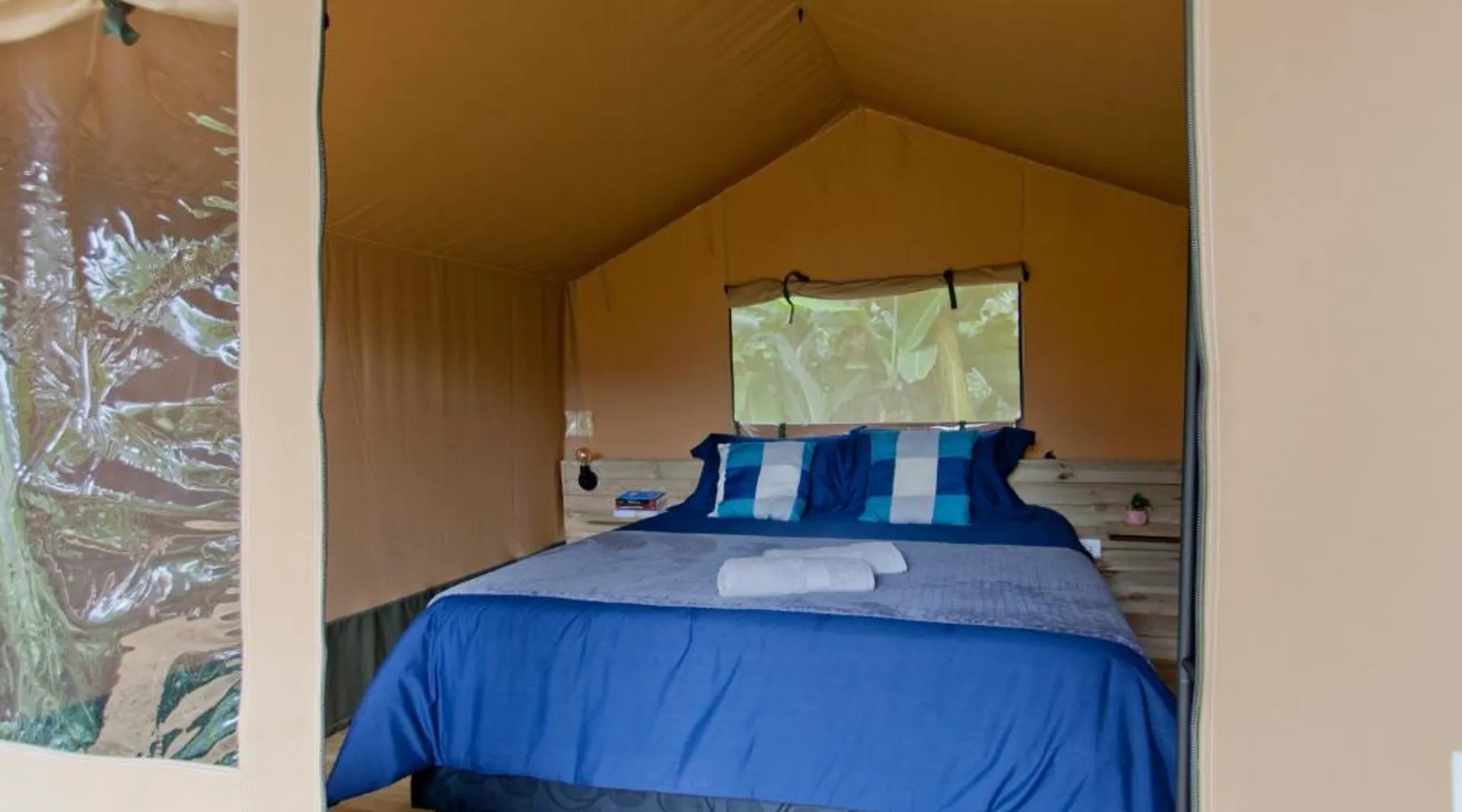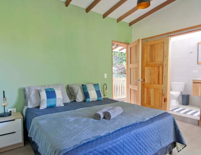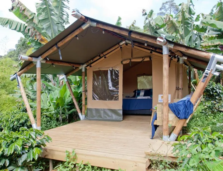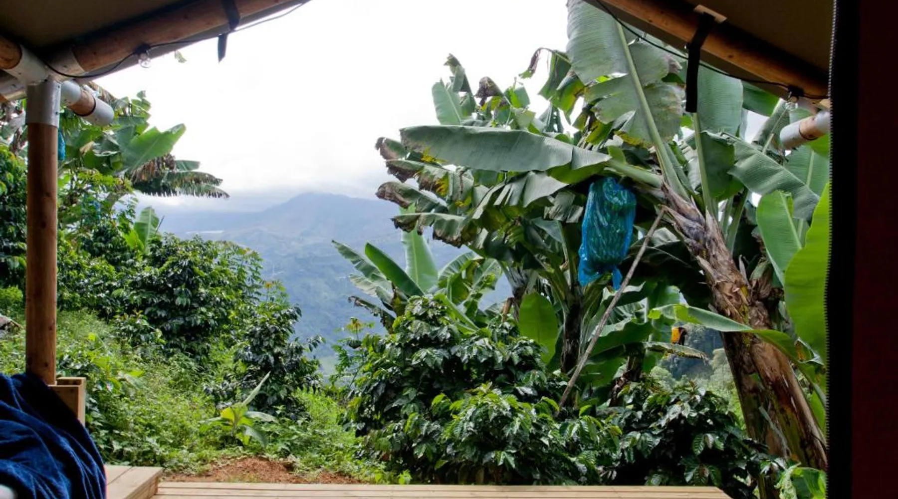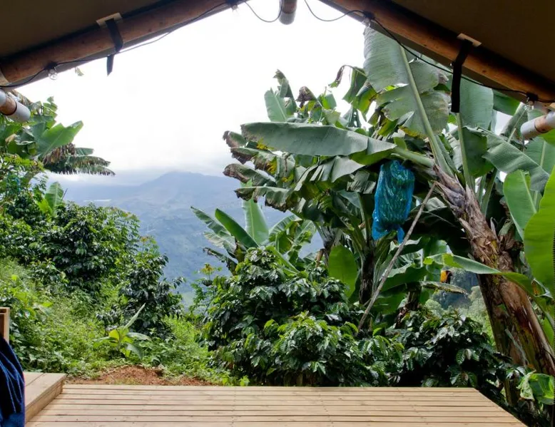 Elegant Accommodations: Glamping Jardín in Jardin offers a recently renovated luxury tent with a garden, terrace, and free WiFi. Guests enjoy mountain and garden views, ensuring a relaxing stay. Comfortable Amenities: The property features private check-in and check-out services, a lounge, shared kitchen, minimarket, coffee shop, outdoor seating area, picnic area, family rooms, bicycle parking, bike hire, tour desk, and luggage storage. Free on-site private parking is available. Delicious Breakfast: A continental, vegetarian, vegan, and gluten-free breakfast is served, including cheese and fruits. Guests appreciate the quality and variety of the breakfast offerings. Activities and Location: Activities such as hiking and cycling are popular. Olaya Herrera Airport is 78 mi away. Highly rated for its friendly host, suitability for nature trips, and breakfast provided by the property. The shared bathroom is equipped with a walk-in shower. Among the room amenities are a private entrance, a seating area, a sofa as well as a terrace and garden views.