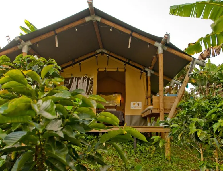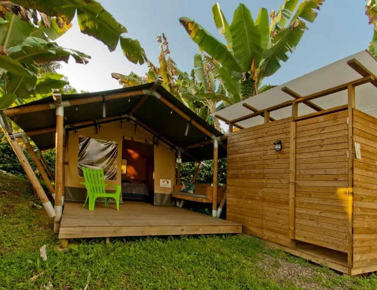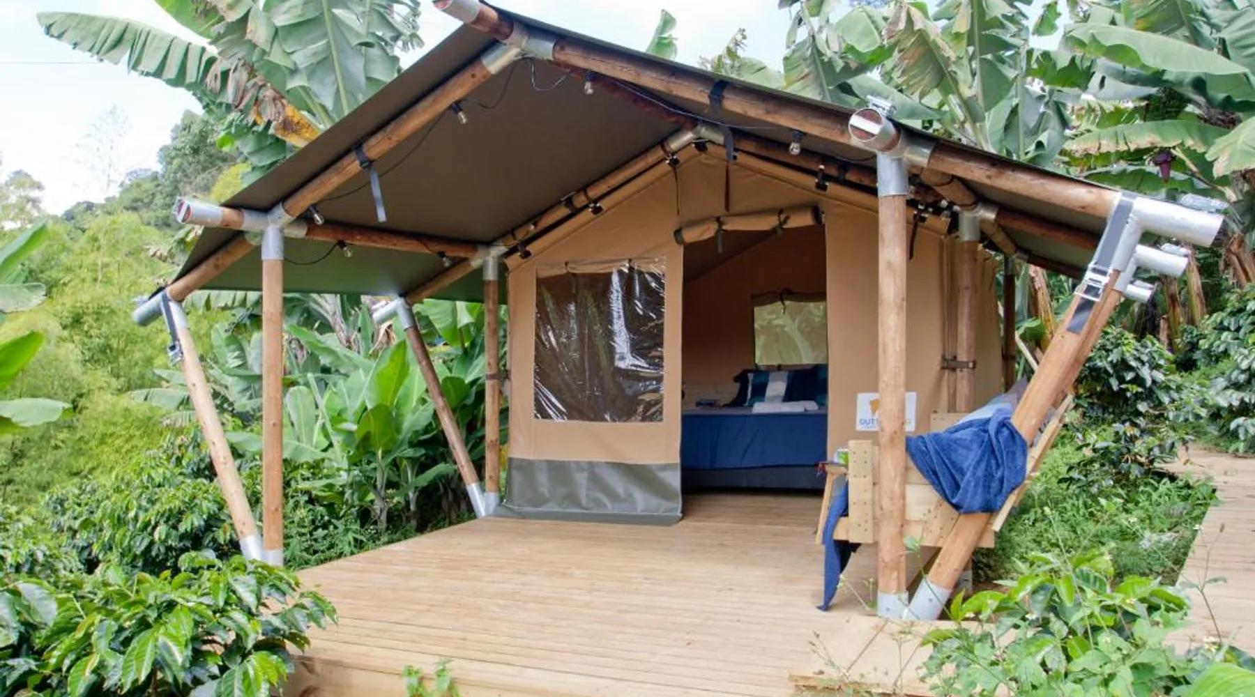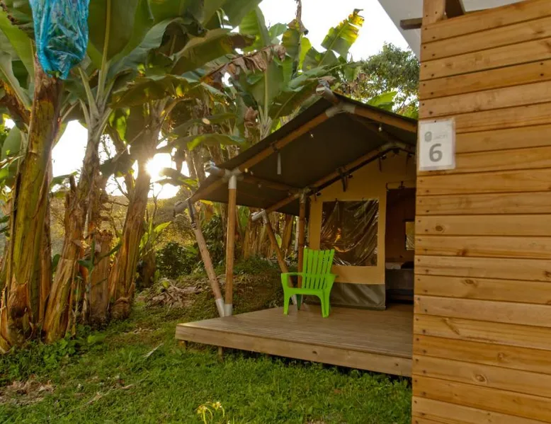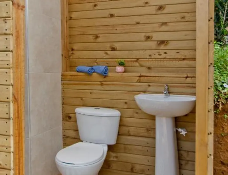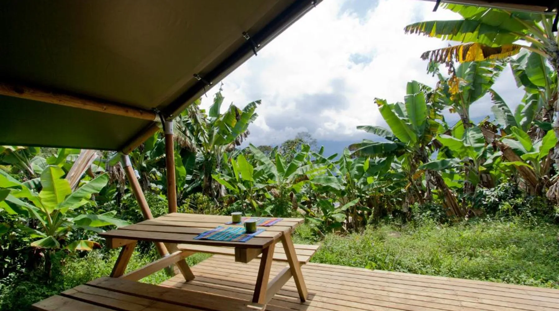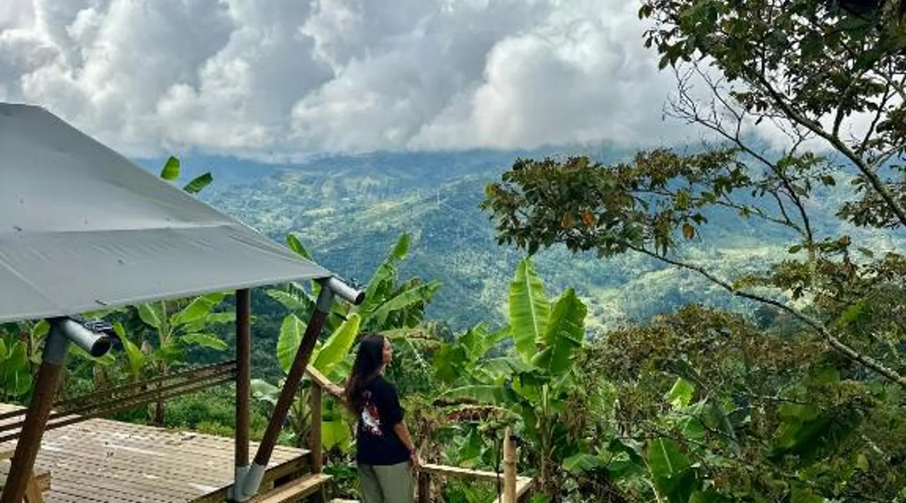 Elegant Accommodations: Glamping Jardín in Jardin offers a recently renovated luxury tent with a garden, terrace, and free WiFi. Guests enjoy mountain and garden views, ensuring a relaxing stay. Comfortable Amenities: The property features private check-in and check-out services, a lounge, shared kitchen, minimarket, coffee shop, outdoor seating area, picnic area, family rooms, bicycle parking, bike hire, tour desk, and luggage storage. Free on-site private parking is available. Delicious Breakfast: A continental, vegetarian, vegan, and gluten-free breakfast is served, including cheese and fruits. Guests appreciate the quality and variety of the breakfast offerings. Activities and Location: Activities such as hiking and cycling are popular. Olaya Herrera Airport is 78 mi away. Highly rated for its friendly host, suitability for nature trips, and breakfast provided by the property. The shared bathroom is equipped with a walk-in shower. Among the room amenities are a private entrance, a seating area, a sofa as well as a terrace and garden views.