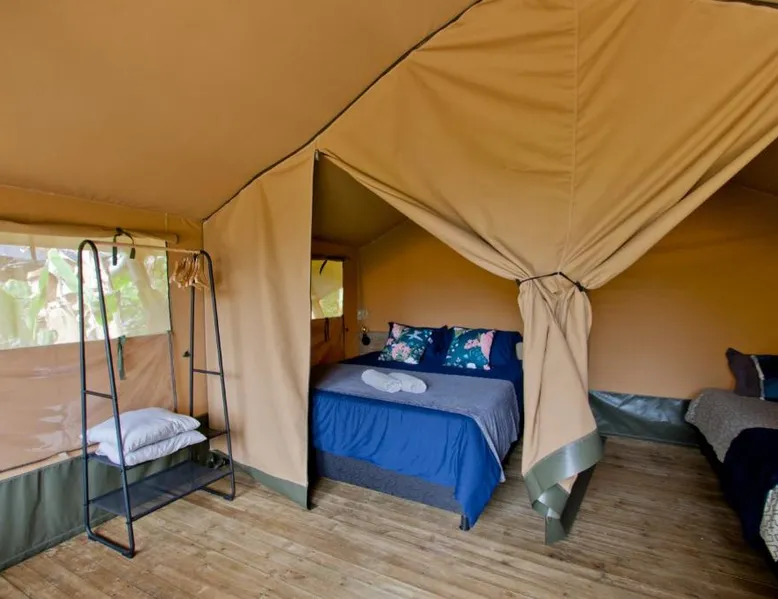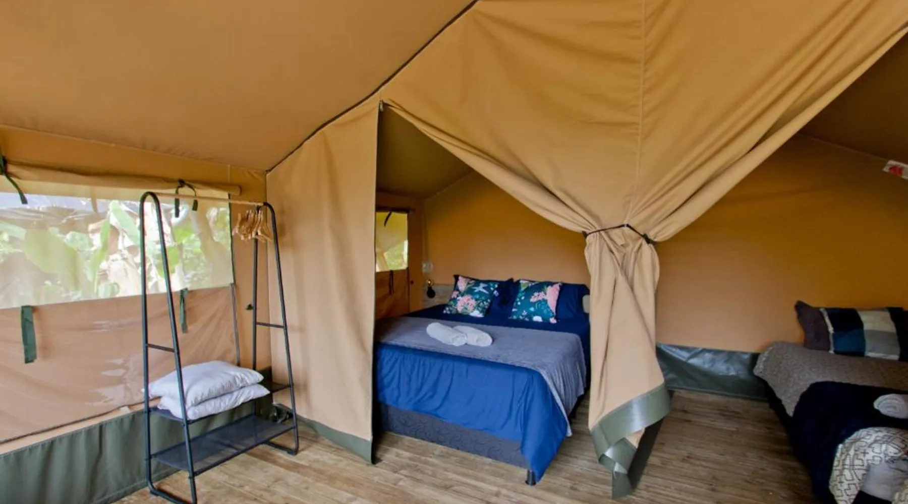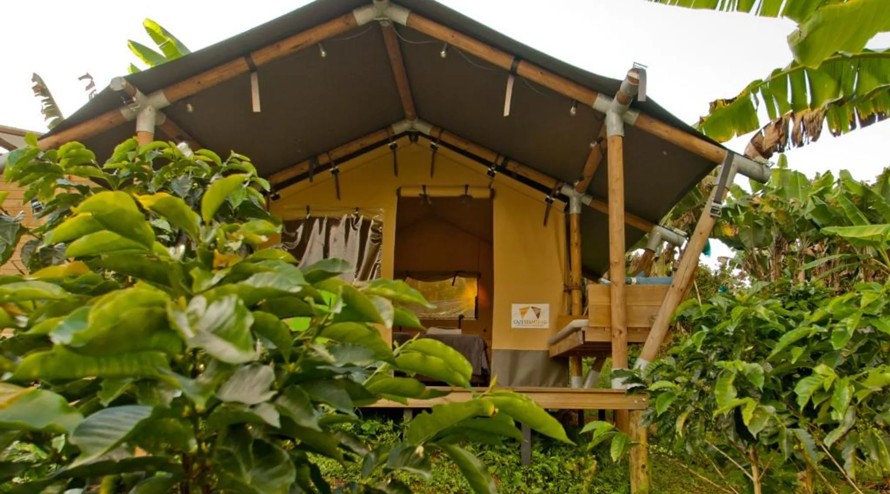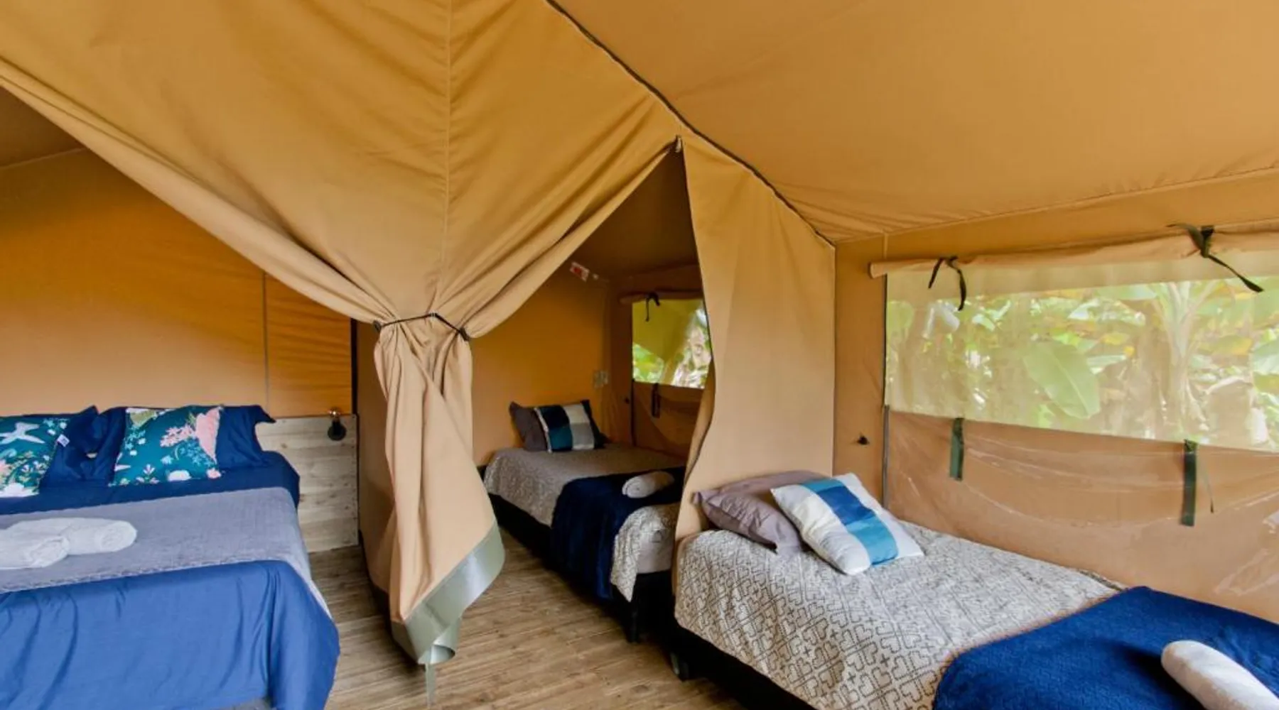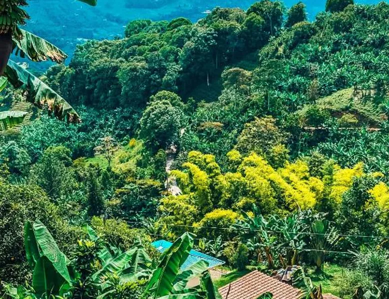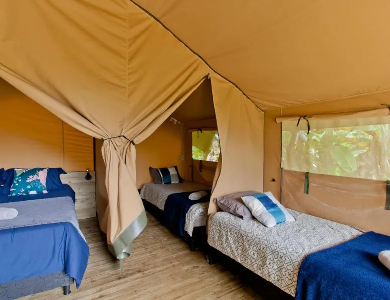Elegant Accommodations: Glamping Jardín in Jardin offers a recently renovated luxury tent with a garden, terrace, and free WiFi. Guests enjoy mountain and garden views, ensuring a relaxing stay. Comfortable Amenities: The property features private check-in and check-out services, a lounge, shared kitchen, minimarket, coffee shop, outdoor seating area, picnic area, family rooms, bicycle parking, bike hire, tour desk, and luggage storage. Free on-site private parking is available. Delicious Breakfast: A continental, vegetarian, vegan, and gluten-free breakfast is served, including cheese and fruits. Guests appreciate the quality and variety of the breakfast offerings. Activities and Location: Activities such as hiking and cycling are popular. Olaya Herrera Airport is 78 mi away. Highly rated for its friendly host, suitability for nature trips, and breakfast provided by the property. The shared bathroom is equipped with a walk-in shower. Among the room amenities are a private entrance, a seating area, a sofa as well as a terrace and garden views.