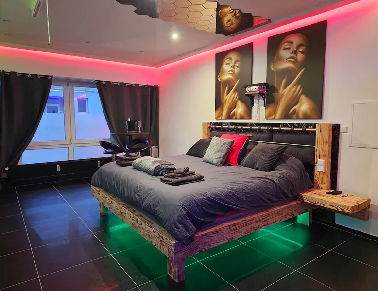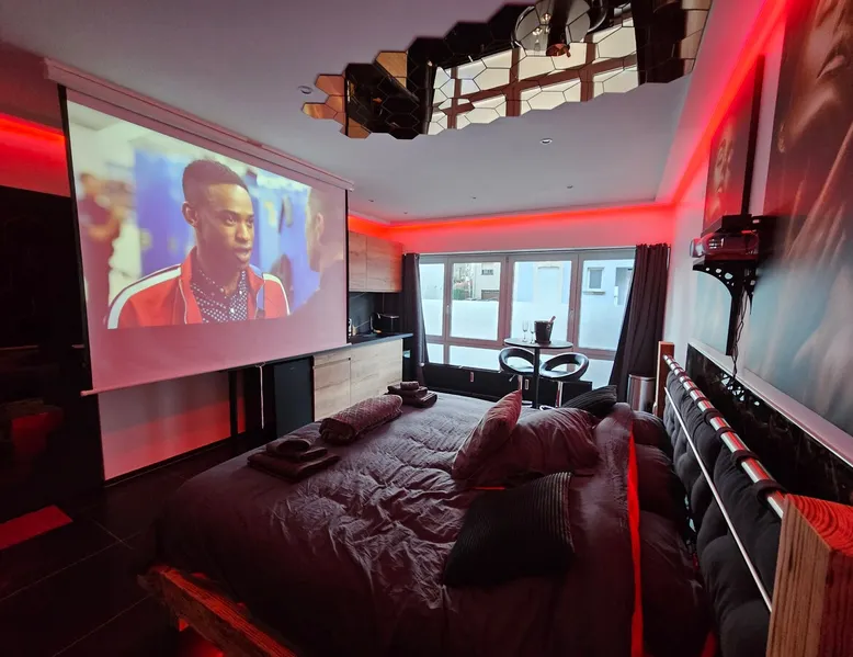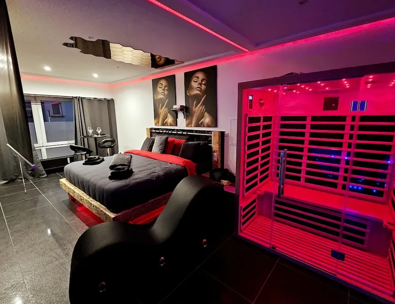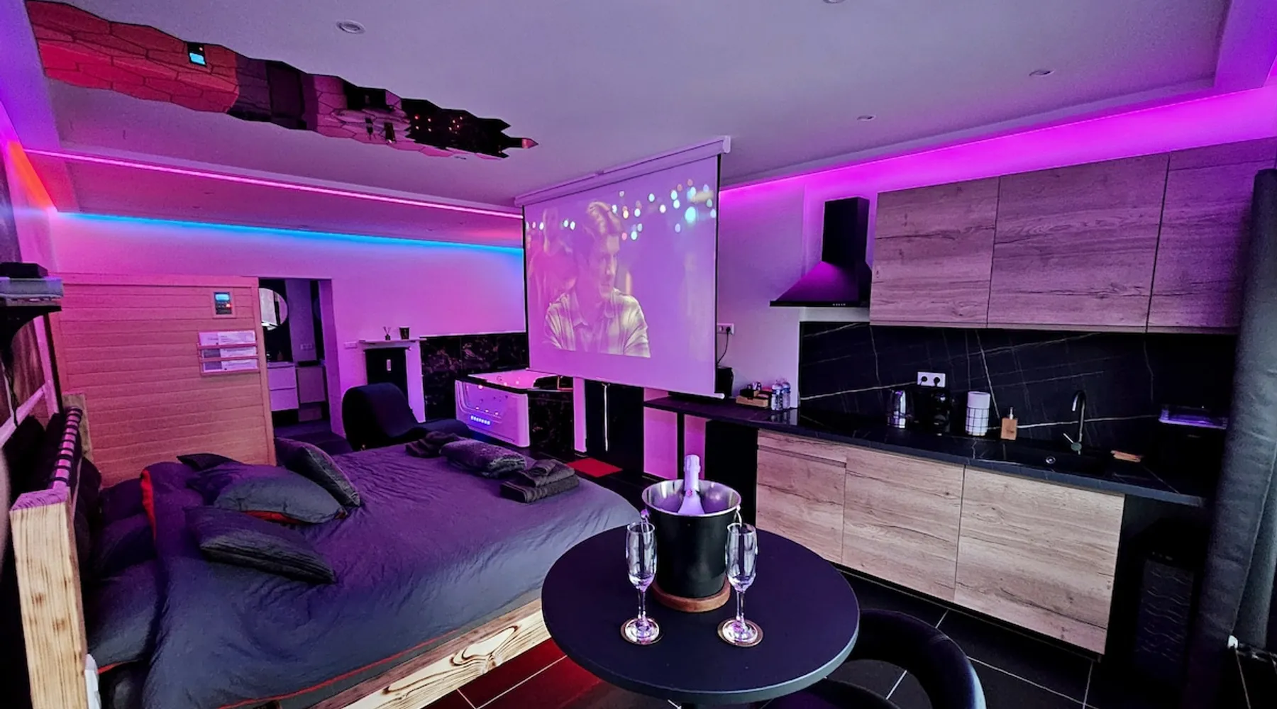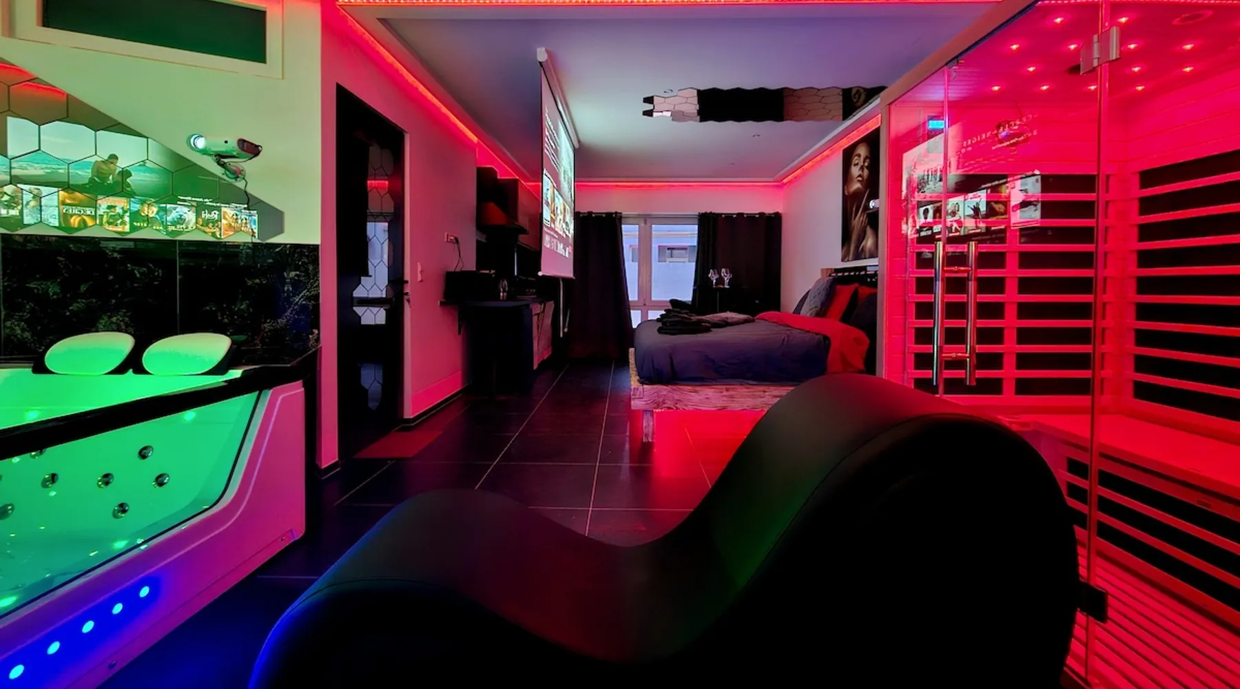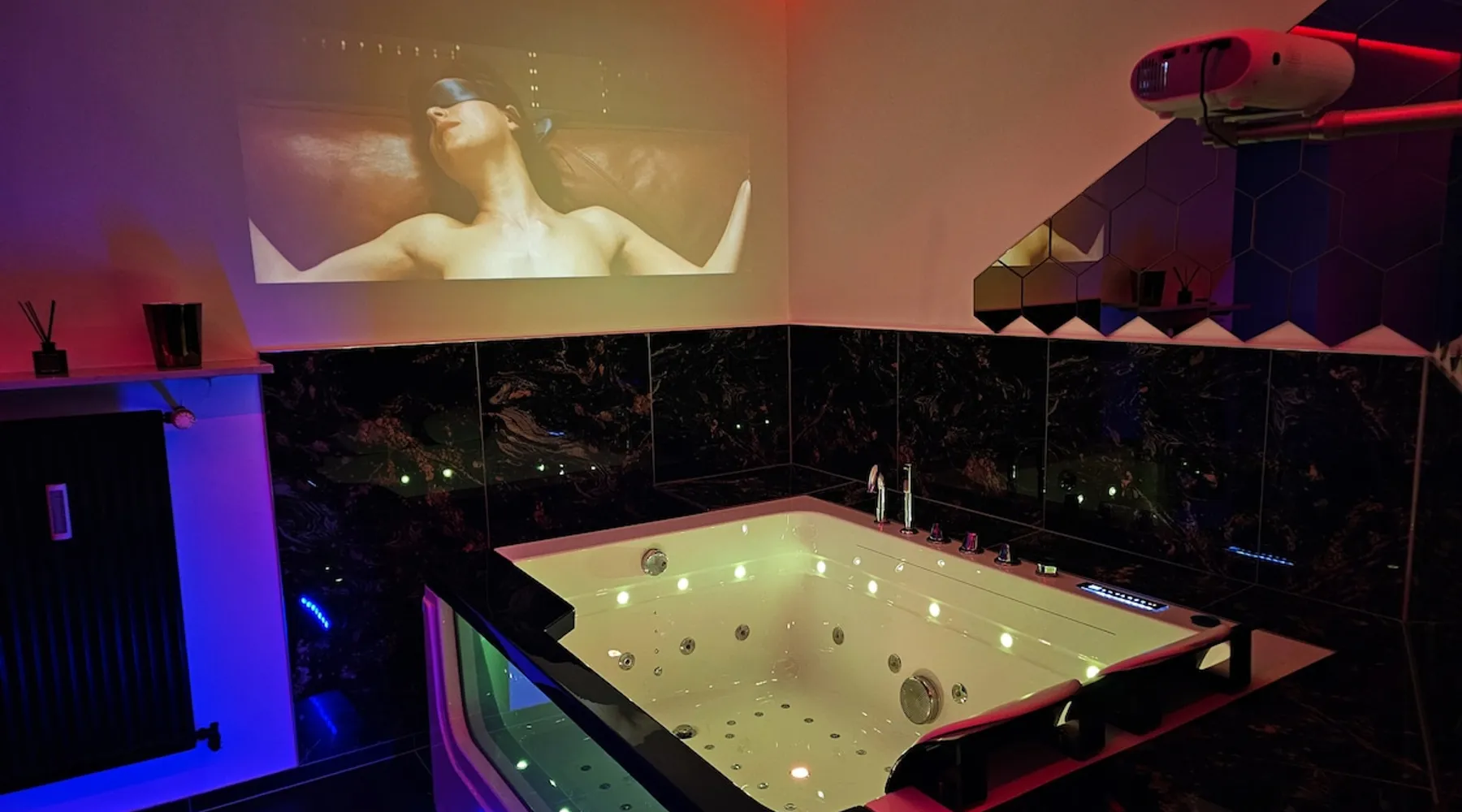 Come and meet up with your partner for an overnight getaway or a romantic weekend. Our Spa Suite offers all the comfort and equipment you need for a moment of relaxation. On the programme: large 2-seater glass Jacuzzi bath, infrared sauna, large shower, king-size bed 2m x 2m, 2 cinema screens, Tantra sofa, fully-equipped kitchen with fridge and ice maker. Discreet, self-contained arrival. Free on-street parking and amenities nearby. For 2 adults only. Reserve the Suite Spa, YOU'LL LOVE IT !!! The space Large 45 m2 suite with fully equipped kitchen and dining area for 2. Come and rest in the very large 2m x 2m bed with 2 comfort zones from which you can enjoy your favourite Netflix series and films. The relaxation area takes you into our magnificent 2-seater glass Jacuzzi bath for a chromotherapy massage session in front of your film. You can continue your journey in the infrared Sauna for a gradual rise in temperature. The Tantra Sofa will complete the experience. Finally, our huge Italian shower will bring you gently back to yourself. Would you like to enjoy this unique experience? All you have to do is book the Spa Suite or the Spa Appart, offering the same services for 4 people, with family or friends. You'll love it, as will the vast majority of our customers, judging by the comments. Sheets and towels as well as a welcome kit (coffee, tea, sugar, salt, pepper, soap, shower gel, shampoo, etc.) are available on site. Guest access The Suite Spa and its facilities are reserved for your exclusive use. Access to the suite is completely independent thanks to our secure key box. Once you have made your reservation, you will receive a confirmation message. On the day of your arrival, you will receive all the access details with the exact address and the key box code. all you have to do is enjoy. A welcome booklet in French and English is available on site. When you leave, simply lock up the Spa suite, return the keys to the key box and leave us a great Airbnb comment. Other things to note The large Jacuzzi bath, the Sauna and the Tantra sofa, as well as all the other facilities in the Suite Spa , are for your exclusive use during your stay. All these facilities are thoroughly cleaned. The Spa Suite can accommodate 2 adults only. parties and events are not permitted. security instructions on site. Come and enjoy this unique experience.
