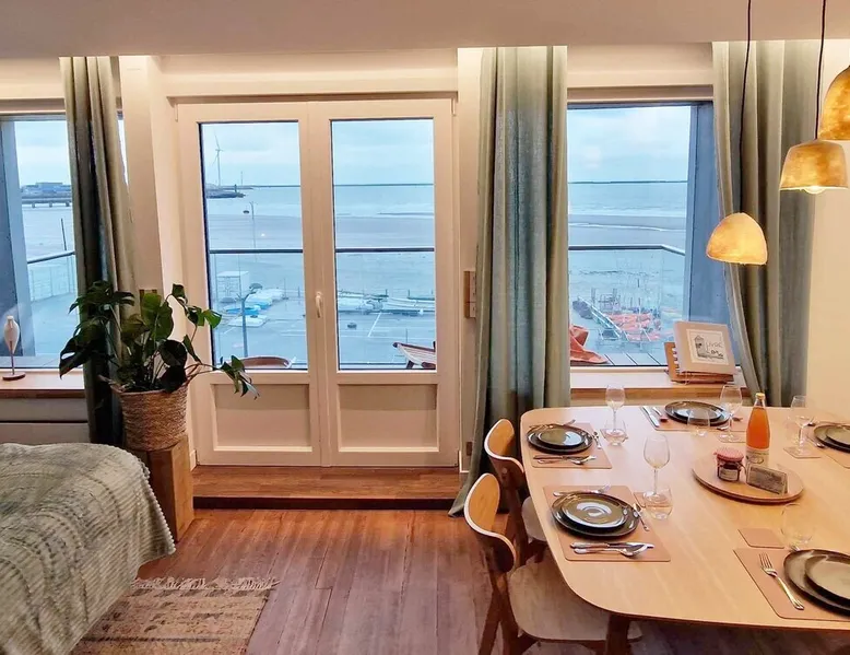 "Descente à la mer" is a vacation home in Boulogne-sur-Mer, just a stone's throw from the beach and 5 minutes from Europe's largest aquarium, Nausicaa. Sandrine and Frédéric welcome you all year round for a stay with family, friends or solo in one of their 3 apartments: - La Baraque de l 'Empereur: Floor 3 - La Beurière: Floor 2 - La Poudrière: Floor 1 and their studio : - Le Calvaire du marin: Ground floor The space Descente à la mer offers 3 apartments for up to 6 travelers. Floor 1: Apartment "La Poudrière Floor 2: Apartment "La Beurrière". Floor 3: Apartment "La Baraque de l 'Empereur." These 3 75 m2 apartments are laid out and equipped in the same way. They feature: A sea-view bedroom with a 160X200 cm bed and private bathroom + wc. -A bedroom on the terrace side, sleeping 140X200 cm, with private bathroom and toilet. -A fully equipped kitchen. -A living room with sofa bed for 2 people and a dining room with direct access to a 10 m2 balcony with sea view. We also offer -3 secure, covered garages (free service) -3 electric recharging points (paying service) 15€ per day for an electric car 8€ per day for a hybrid car. Payment for these options can be made at the time of booking via the airbnb resolution center. Please specify in comments Guest access Guests renting a flat will have access to the terrace, bike racks and one of the 3 private garages. (free service on reservation) The 3 garages have electric recharging points (chargeable service). Guests renting a studio will have access to the terrace and bike racks. Other things to note Beds made on arrival. The basement is a private access We ask our travellers to avoid exceeding the departure time of 10 am. Registration Details 5439-5441-5445-5443