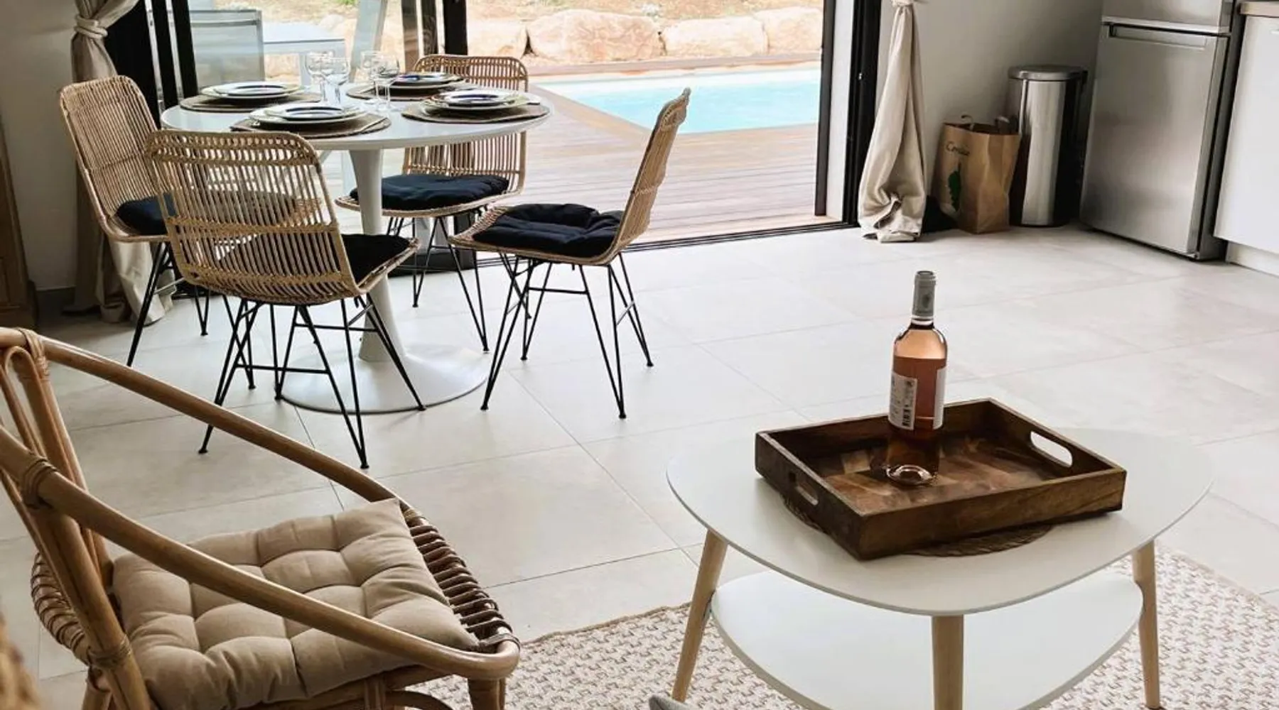 Elegant Accommodations: Villa Copains in Villata offers a spacious garden and an outdoor swimming pool. Free WiFi is available throughout the property. Modern Amenities: The villa features two bedrooms and two bathrooms, equipped with air-conditioning, a kitchenette, and a private pool. Guests can enjoy a barbecue area and a range of appliances including a coffee machine, refrigerator, dishwasher, and oven. Convenient Location: Located 22 mi from Figari-Sud Corse Airport, Villa Copains is close to Plage de Villata (1.9 mi), Porto Vecchio Port (9.3 mi), and other attractions such as the Former Chapel of the Trinity (27 mi) and Sperone Golf Course (28 mi). Activities and Surroundings: Guests can engage in boating and scuba diving in the surrounding area. The property is highly rated for its excellent facilities and comfortable accommodations. Guests will have a special experience as this holiday home provides a private pool. The air-conditioned holiday home features 2 bedrooms, 2 bathrooms with a hairdryer and a kitchenette. Guests will find a refrigerator, a dishwasher and an oven in the kitchenette. The holiday home also has a barbecue. This holiday home offers a coffee machine and a TV. The unit offers 4 beds.