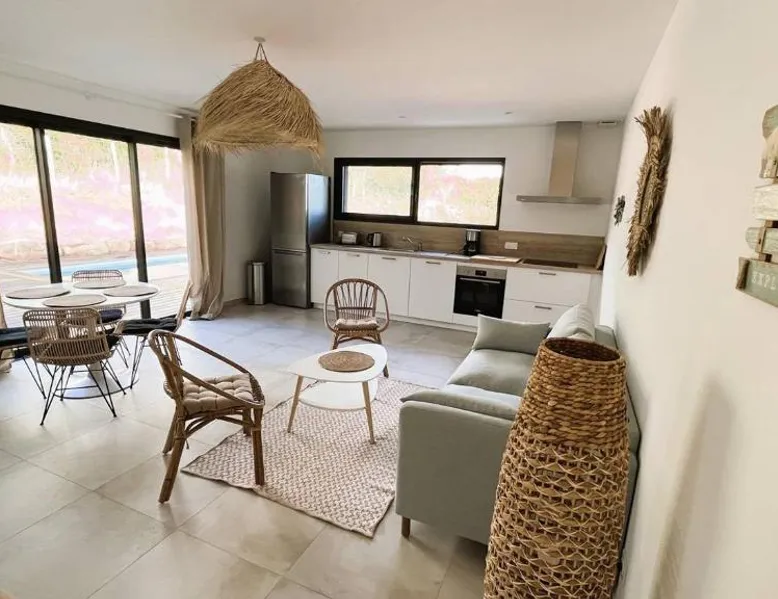 Villa Copains, 5 pers, piscine chauffée, 5 mn plage